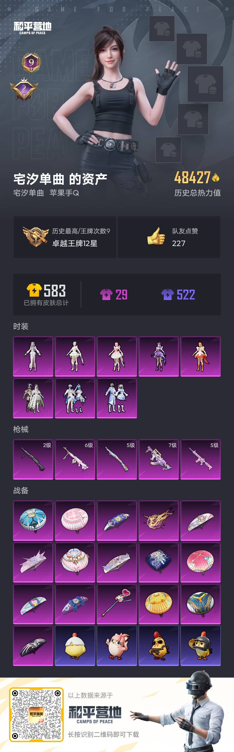 _2306867-苹果qq历史总热力值:48427粉装数量:8特效呛数量:5王牌印记:9历史最高段位:卓越王牌12星套装数量:107时装数量:392呛械数量:160战备数量:126装备数量:190时装:套装-冰霜白皇套装-未来歌姬套装-霁雪冰心角色-严莉莉角色-冷漠罗丽角色-千金淑猫角色-小蓝角色-美雪套装-ss20特训套装-ss21特训套装-ss22特训套装-ss23特训套装-ss24特训套装-ss25特训套装-ss26特训套装-ss27特训套装-ss28特训套装-ss29特训套装-ss31特训套装-ss32特训套装-ss33特训套装-ss34特训套装-ss35特训套装-云朵鹅套装-元气发射套装-光之冒险套装-冰川特警套装-冷焰舞者套装-大橘大利套装-天籁歌者套装-妙红点点套装-娇憨猪猪套装-巳巳如意套装-幻世战舞者套装-幻彩翩翩套装-幻影武者套装-幻羽潜行套装-幽夜迷踪套装-恋语绒绒套装-懵萌河马套装-战术大师套装-探宝勇士套装-星途旅人套装-智谋强哥套装-暖心熊熊套装-极速光影套装-柠萌假日套装-海岛探路者套装-海盐绵绵冰套装-湖蓝色名流套装-滨海厨神套装-热情海星套装-焰鹰斗篷套装-熠彩粉晶套装-燕燕于飞套装-牛气满满套装-猎梦纪元套装-猛禽套装-玉兔迎春套装-王牌教练套装-甜心亚梦套装-田园牧歌套装-白糯汤圆套装-白色伏地魔套装-破晓战魂套装-神气柴柴套装-空岛之星套装-竞技名士套装-粉日山川套装-粉红小猪套装-紫幽梦套装-纯真浪花套装-绮丽涂鸦套装-绯格组合套装-耀粉歌者套装-萌趣咩咩套装-萌黄之夏套装-蓝冰羽套装-薄荷星砂套装-虚音幻奏套装-蝶变套装-轻风白浪套装-酒红色名流套装-酸甜橘柚套装-长空猛禽套装-雪绒豹套装-霓虹街区套装-顶瓜瓜套装-鱼渊荷华套装-鹤鸣套装-麻辣教官套装-黄色伏地魔套装-黄色名流套装-黑色伏地魔套装-龙魂突击队套装-龟仙人玩偶服-卖崽青蛙角色-冰公主角色-怀庆长公主角色-情公主角色-林月如角色-湖雨初晴角色-瑰梦爱神角色-紫俏灵猫角色-英勇保护者角色-蝶吟花词角色-贝吉塔呛械:groza-巴啦啦小魔仙7级m416-电玩时刻5级ac-val-乌木金纹ac-val-天降萌叽ac-val-甜心亚梦akm-江南烟雨akm-破晓战魂akm-霓彩脉冲akm-龙的传人aug-异域银装aug-耀粉歌者famas-突变脉冲g36c-懵萌河马groza-彩虹符号groza-懵萌河马groza-田园牧歌m16a4-冰河战士m16a4-幻世战舞者m16a4-甜心亚梦m416-糯团青竹m416-红色方程式m416-蓝色火焰m762-云朵鹅m762-天降萌叽mk47-乌木金纹mk47-妙红点点mk47-洛神天依q-彩虹符号q-洛神天依q-纯真浪花scar-l-海盐豹豹scar-l-炫彩节奏scar-l-玉兔迎春scar-l-红色方程式蜜獾-天降萌叽蜜獾-娇憨猪猪蜜獾-精灵梦叶罗丽kar98k-巳巳如意5级amr-妙红点点awm-圣堂之誓awm-奇迹舞步awm-焰鹰斗篷awm-纯真浪花kar98k-洛神天依svd-云朵鹅莫辛纳甘-乌木金纹莫辛纳甘-懵萌河马mk20-h-狂鲨锋刃mini14-旋转彩虹mini14-涂山之恋mk14-乌木金纹mk14-冰河战士mk14-紫幽梦mk14-薄荷星砂sks-糯团青竹slr-娇憨猪猪slr-彩虹符号slr-霓彩脉冲vss-彩虹符号vss-田园牧歌aks-74u-鬼刀p90-巳巳如意p90-玩趣呆呆ump45-海盐豹豹ump45-蓝色火焰uzi-冰河战士uzi-天降萌叽uzi-娇憨猪猪uzi-炫彩糖果vect-创世·救赎vect-焰鹰斗篷vect-燕燕于飞vect-生命誓言vect-田园牧歌vect-突变脉冲汤姆逊-智耀战神汤姆逊-炫彩节奏汤姆逊-环太平洋汤姆逊-纯真浪花野牛-燕燕于飞aa12-g-星空武士aa12-g-纯真浪花dbs-巴啦啦小魔仙dbs-幻彩电音dbs-彩虹甜喵dbs-彩虹符号dbs-焰鹰斗篷dbs-甜心亚梦s12k-垂柳戏鸭s12k-娇憨猪猪s12k-幻世战舞者s12k-玩趣呆呆s12k-破晓战魂s12k-童趣迷兔s1897-炫彩节奏s1897-精灵梦叶罗丽s1897-糯团青竹s1897-紫幽梦s686-千金淑猫s686-巳巳如意s686-红色方程式spas-12-云朵鹅spas-12-燕燕于飞spas-12-田园牧歌dp-28-豹影疾电2级pkm-江南烟雨6级dp-28-焰鹰斗篷dp-28-甜心亚梦m249-妙红点点m249-彩虹符号mg3-乌木金纹mg3-妙红点点mg3-幻世战舞者mg3-暗夜行者mg3-第五大道pkm-懵萌河马pkm-紫幽梦p92-紫幽梦r45-幻彩电音tmp-9-江南烟雨沙墨之鹦-云朵鹅蝎式手呛-燕燕于飞大砍刀-云朵鹅大砍刀-黑金刀平底锅-光之冒险平底锅-妙红点点平底锅-娇憨猪猪平底锅-属我最6平底锅-懵萌河马平底锅-焰鹰斗篷平底锅-甜心亚梦平底锅-田园牧歌平底锅-空岛之星平底锅-精灵梦叶罗丽平底锅-紫幽梦平底锅-纯真浪花平底锅-许七安撬棍-巴啦啦小魔仙撬棍-幻世战舞者十子怒-异域银装十子怒-异瞳寒姬十子怒-燕燕于飞战术弩-江南烟雨破片手留单-呆爆全场破片手留单-太空嘟嘟破片手留单-巳巳如意破片手留单-海盐豹豹铝热弹-炫彩糖果战备:万象金身飞行器童趣迷兔飞行器异域银装飞行器圣堂之誓降落伞垂柳戏鸭降落伞太空嘟嘟降落伞巴啦啦小魔仙降落伞异瞳寒姬降落伞旋转彩虹降落伞江南烟雨降落伞洛神天依降落伞环太平洋降落伞童趣迷兔降落伞第五大道降落伞精灵梦叶罗丽降落伞闪光银龙降落伞青春物语降落伞2023祥云降落伞ss20王牌降落伞ss21王牌降落伞ss22王牌降落伞ss23王牌降落伞ss31王牌降落伞ss32王牌降落伞ss34王牌降落伞ss35王牌降落伞一举夺葵降落伞云朵鹅降落伞亚洲精英降落伞光之冒险降落伞冰河战士降落伞勇者之势降落伞化学天才降落伞和平使命降落伞夏日倾情降落伞天涯共此时降落伞妙红点点降落伞娇憨猪猪降落伞寂夜之火降落伞属我最6降落伞巳巳如意降落伞幻世战舞者降落伞异域银装降落伞懵萌河马降落伞月下萌萌兔降落伞比翼双飞降落伞海盐豹豹降落伞焰鹰斗篷降落伞燕燕于飞降落伞狂鲨