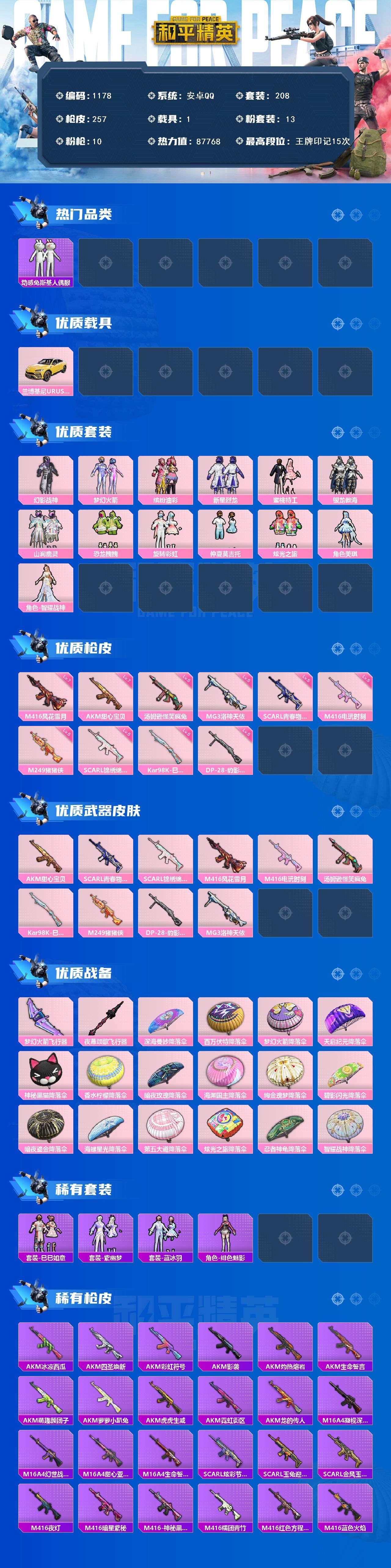 1载具-208套装-257呛皮-df安卓 手q-【猪脸,动感兔斯基人偶服,兔兔白日梦,小白龙,火箭头,满级甜心宝贝,满级风花雪月,女号,公主号,身法素材】13粉装-10特效呛-1载具-3粉色飞行器-87768热力值-15王牌印记-208套装-257呛皮 【热门品类】:粉装-梦幻火箭,粉装-缤纷油彩,套装-浪漫天命,套装-奇异狩猎者,套装-动感兔斯基人偶服,套装-龟仙人,套装-潮萌小黄鸭,套装-暗影哥特,套装-粉红小猪 【粉色