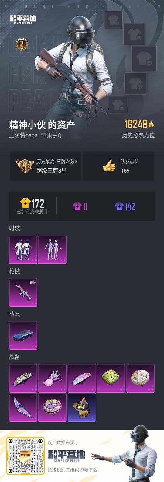 [14605562]苹果 【载具号 梦幻火箭/玛莎拉蒂ghibli(蓝)/162扭蛋碎片】手q-2粉装-1特效呛-1载具-2粉色飞行器-16248热力值-2王牌印记-35套装-45呛皮 【热门品类】:粉装-梦幻火箭 【粉色载具】:玛莎拉蒂ghibli(蓝) 【粉色套装】:粉装-梦幻火箭,粉装-新星烈龙 【粉色呛皮等级】:scar-l-梦幻火箭五级 【粉色呛皮】:scar-l-梦幻火箭 【粉色飞行器】:梦幻火箭飞行器 【粉色降落伞】:春暖花开降落伞,梦幻火箭降落伞,恐龙拽拽降落伞,极意拳锋降落伞 【稀有套装】:套装-炫彩糖果 【稀有呛皮】:aug-冰晶雪宝,akm-春暖花开,akm-灼热熔岩,groza-春暖花开,q-彩虹符号,q-飞驰魅影,m762-天降萌叽,m762-快乐主宰,m762-拳皇97,uzi-炫彩节奏,ump45-春暖花开,汤姆逊-天降萌叽,p90-飞驰魅影,kar98k-梦幻火箭,kar98k-炫彩节奏,kar98k-飞驰魅影,m24-炫彩节奏,sks-炫彩节奏,mini14-梦幻火箭,mini14-筑梦精灵,s686-生命誓言,s1897-春暖花开,s1897-飞驰魅影,m249-拳皇97,dp-28-甜心亚梦,p92-拳皇97,p1911-赤寒幽灵 【其他套装】:套装-ss6特训,套装-ss19特训,套装-ss20特训,套装-传奇侦探,套装-北国孤狼,套装-半糖蓝莓,套装-夏日音浪,套装-奇迹天团,套装-拳皇97八神庵,套装-星光纪元,套装-朋克治安官,套装-格斗专家,套装-格斗先锋,套装-炫蓝之夏,套装-炽焰拳师,套装-狂沙舞者,套装-甜蜜告白,套装-疯狂小兔子,套装-破蛋小黄鸡,套装-竞技勇士朋克,套装-绯格组合,套装-跃动心情,套装-龙腾端午,套装-玲珑飞花,套装-飞驰魅影,套装-音速流光,套装-虚音幻奏 【稀有头盔】:梦幻火箭头盔3级,梦幻火箭头盔2级,梦幻火箭头盔1级,金曜白虎头盔3级 【稀有背包】:梦幻火箭背包3级,梦幻火箭背包2级,梦幻火箭背包1级,雪国精灵背包1级,金曜白虎背包3级 【营地id】:797140205