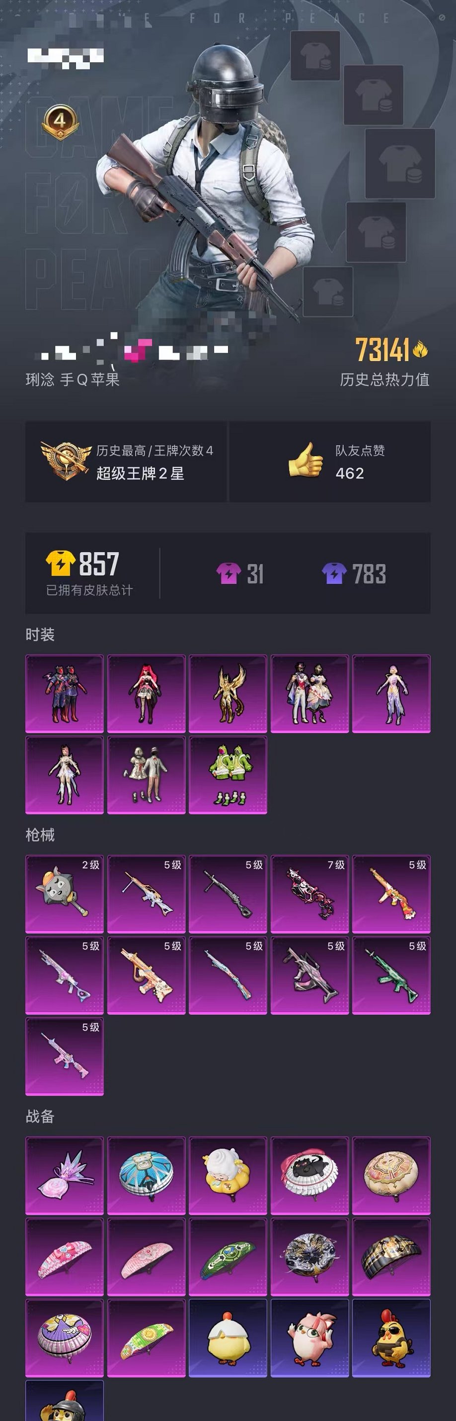 【连体号蓝粉螳螂8粉装11特效呛带王者317皮1典藏17传说 可秒换绑】 苹果q区-73141热力值-4印记-173套装-245呛皮 【3稀有】 8号机 mark.06 奇异狩猎者【8粉装】 宝贝奶油派 圣堂之誓 星之彼岸 恐龙拽拽 角色-凤凰座 一辉 星穹咏叹调 角色-金域紫灵 角色-绯穹魔姬【11特效呛】 m416-电玩时刻5级 m762-青锋波束5级 mk14-甜梦熊击5级 汤