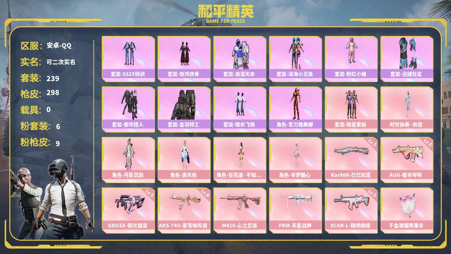 【和平精英】【lyhp18175】6粉装9特效呛 洛天依 羊梦糖心 不知火舞 都市 天命 金羽 东方飞龙 深海小丑鱼 满级恋语m4 多把满级呛皮 6粉装,9特效呛,0载具,历史最高段位:超级王牌8星 王牌印记6次 热力值:90434,239套装,298呛械,319装备,160战备;套装:角色-洛天依,套装-暗星紫秘,时空协奏·和音,角色-狂花道·不知火舞,角色-月影灵韵,角色-羊梦糖心,套装-猎鹰,套装-白色伏地魔,套装-黑色伏地魔,套装-深海格斗者,套装-帅气教官,套装-竞技名士,套装-酒红色名流,套装-湖蓝色名流,套装-黄色名流,套装-长空猛禽,套装-漫步者,套装-竞技勇士朋克,套装-蓝色守护者,套装-海岛探路者,套装-旭日情侣,套装-冷焰舞者,套装-灼焰舞者,套装-都市猎人,套装-浪漫天命,套装-战地菁英,套装-浪漫假日,套装-战地督导,套装-灰色格斗者,套装-甜蜜告白,套装-迎春赐吉,套装-燃烧卡路里,套装-滨海假日,套装-沙漠毒蛇,套装-鹰眼刺客,套装-冰冻风暴,套装-完美偶像,套装-幻影武者,套装-特战英豪,套装-街头潮人,套装-暗金炫舞,套装-蓝彩潮人,套装-千禧之恋,套装-神秘领域,套装-怒火燎原,套装-魅力单车,套装-绮丽涂鸦,套装-耀眼新星,套装-狂战萌兔,套装-雪山征服者,套装-坚韧舞者,套装-朋克治安官,套装-夜莺强袭者,套装-都市漫游者,套装-野性战魂,套装-金羽特工,套装-破晓战魂,套装-森林游猎者,套装-都市魅力,套装-热血青春,套装-ss2特训,套装-派对绅士,套装-雪山精英,套装-酷潮明星,套装-极地朋克,套装-幻世战舞者,套装-甜蜜菠萝,套装-金耀舞者,套装-弄潮海豚,套装-迅捷狂鲨,套装-深海小丑鱼,套装-甜蜜熊情侣,套装-青涩时光,套装-缤纷果语,套装-龙魂突击队,套装-特种空勤,套装-和平特警,套装-风暴特警,套装-冰川特警,套装-雷霆特警,套装-元素星魂,套装-幻影公爵,套装-极速红龙,套装-格斗先锋,套装-冷血极客,套装-旷野奇兵,套装-海上生明月,套装-麻辣教官,套装-ss3特训,套装-东方飞龙,套装-初雨海棠,套装-ss4特训,套装-梦魇先生,套装-万圣娃娃,套装-恶魔宝贝,套装-恶魔人蛛,套装-黑夜传说,套装-粉红小猪,套装-破蛋小黄鸡,套装-疯狂小兔子,套装-森林猎手,套装-深蓝冒险家,套装-迷域探索者,套装-阳光火鸡,套装-ss5特训,套装-圣诞大吉,套装-熔岩使者,套装-凛冬战士,套装-爱崽白熊,套装-金鼠迎春,套装-北国孤狼,套装-ss6特训,套装-ss7特训,套装-霓虹街区,套装-ss10特训,套装-ss8特训,套装-萌黄之夏,套装-人鱼之吻,套装-夏日音浪,套装-ss9特训,套装-顽皮玉兔,套装-探宝勇士,套装-粉甜马卡龙,套装-牛气满满,套装-白糯汤圆,套装-ss11特训,套装-青春冒险家,套装-潮流游乐家,套装-原初圣火,套装-逆风勇士,套装-萌趣颜团子,套装-特种颜团子,套装-战术大师,套装-ss12特训,套装-牛气冲天,套装-ss18特训,套装-镭射皇者,套装-银白舞王,套装-耀粉歌者,套装-迅捷之星,套装-治愈之星,套装-科技之星,套装-ss13特训,套装-浪漫樱花,套装-ss14特训,角色-欧布奥特曼,套装-吉莉礼服,套装-ss15特训,套装-ss16特训,套装-暴风机械师,套装-时空追击者,套装-ss17特训,套装-瑞龙福将,套装-团圆交子,套装-福星高照,套装-虎虎生威吉莉,角色-军刀雅典娜,套装-异彩先驱,套装-霓虹极客,套装-空投萌叽,套装-ss19特训,套装-飞驰魅影,套装-音速流光,套装-炫蓝之夏,套装-ss20特训,套装-甜心亚梦,套装-虚音幻奏,套装-ss21特训,套装-萌趣咩咩,套装-娇憨猪猪,套装-玉兔迎春,套装-ss22特训,套装-光之冒险,套装-绯格组合,套装-ss23特训,套装-神气柴柴,套装-懵萌河马,套装-妙红点点,套装-幻彩翩翩,套装-王牌教练,套装-ss24特训,套装-月光变奏,套装-涂山之恋,套装-ss25特训,套装-惊鸿侠骨,套装-锦衣飞扬,套装-香桃花海,套装-果汁能量,套装-龙的传人,套装-ss26特训,套装-漫游都市,套装-空岛之星,套装-无暇誓言,套装-云魄琉璃,套装-ss27特训,套装-恋语绒绒,套装-老实芭蕉,套装-ss28特训,角色-粉雾星云,套装-街头风暴,套装-粉日山川,套装-雪夜云雾,套装-小熊娃娃,套装-ss29特训,套装-雏菊兔兔,套装-萝兰蝴蝶,套装-异域银装,角色-摩登魅猫,角色-蜜桃派对,角色-都市丽猫,套装-星途旅人,角色-怀庆长公主,套装-ss30特训,套装-青团波波,套装-棉花软糖,套装-糖糖葫芦,玩偶服-憨乐熊二,套装-小鸟芋圆,套装-绒宝小鹅,套装-墨青刃影,套装-ss31特训,套装-鱼渊荷华,套装-燕燕于飞,套装-智谋强哥,套装-紫幽梦,套装-粉恋花,套装-ss33特训,套装-巳巳如意,套装-ss32特训,角色-幽秘之星,套装-蓝冰羽,套装-大橘大利,角色-时希公主,套装-元气之梦,套装-ss34特训,套装-薄荷星砂,套装-ss35特训,套装-ss36特训,套装-萌鸡速递;呛皮:m762-快乐主宰,m762-生命誓言,m762-诡娃娃,m762-折纸暴龙,m762-牛气冲天,m762-镭射皇者,m762-瑞龙福将,m762-暖熊萌萌,m762-天降萌叽,m762-萌物绒绒,m762-雏菊兔兔,m762-乌木金纹,akm-灼热熔岩,akm-生命誓言,akm-影袭,akm-破晓战魂,akm-夜灯,akm-涂鸦街区,akm-星之彼岸,akm-彩虹符号,akm-萌趣颜团子,akm-虎虎生威,akm-龙的传人,akm-霓彩脉冲,akm-乌木金纹,akm-绿洲时空,mk47-青春冒险家,mk47-乌木金纹,mk47-妙红点点,蜜獾-娇憨猪猪,蜜獾-糖糖葫芦,蜜獾-乌木金纹,5级aug-暖羊咩咩,aug-甜蜜菠萝,aug-终结者,aug-青春冒险家,aug-异域银装,aug-金蛇镇世,aug-绝对恒星,aug-紫晶流影,aug-乌木金纹,5级groza-镜光银凌,groza-影袭,groza-生命誓言,groza-雷霆特警,groza-治愈之星,groza-彩虹符号,groza-异彩先驱,groza-懵萌河马,groza-