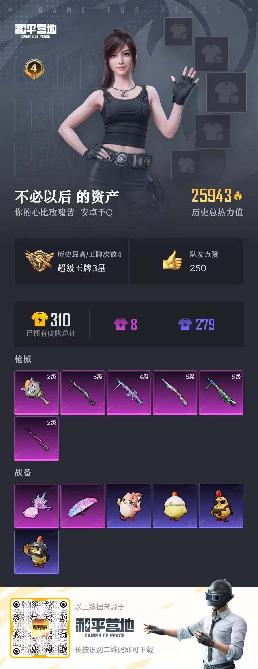 [14631163]安卓 手q-0粉装-6特效呛-0载具-1粉色飞行器-25943热力值-4王牌印记-63套装-93呛皮 【热门品类】:套装-龟仙人 【粉色呛皮等级】:kar98k-巳巳如意五级,m24-暗星紫秘二级,dp-28-豹影疾电五级,mg3-突变脉冲五级,mg-36-幻彩电音四级,平底锅-喜羊羊与灰太狼二级 【粉色呛皮】:kar98k-巳巳如意,m24-暗星紫秘,dp-28-豹影疾电,mg3-突变脉冲,mg-36-幻彩电音,平底锅-喜羊羊与灰太狼 【稀有套装】:套装-龟仙人,套装-炫彩糖果 【稀有呛皮】:aug-冰晶雪宝,akm-彩虹符号,akm-破晓战魂,akm-虎虎生威,akm-霓虹街区,scar-l-炫彩节奏,scar-l-红色方程式,m416-糯团青竹,m416-红色方程式,m416-蓝色火焰,groza-异彩先驱,groza-影袭,aug-天降萌叽,aug-耀粉歌者,q-彩虹符号,m762-天降萌叽,mk47-妙红点点,ac-val-天降萌叽,蜜獾-天降萌叽,uzi-天降萌叽,ump45-涂山之恋,ump45-生命誓言,ump45-极意拳锋,vect-生命誓言,汤姆逊-异彩先驱,汤姆逊-炫彩节奏,mp5k-异彩先驱,aks-74u-荧光像素,p90-巳巳如意,mini14-异彩先驱,amr-妙红点点,amr-喜羊羊与灰太狼,m200-仲夏莫吉托,s12k-玩趣呆呆,dbs-彩虹符号,m249-妙红点点,m249-彩虹符号,mg3-妙红点点,mg3-幻世战舞者,tmp-9-雪月幻音,大砍刀-鬼刀 【其他套装】:套装-ss17特训,套装-ss18特训,套装-ss19特训,套装-ss21特训,套装-ss22特训,套装-ss23特训,套装-ss24特训,套装-ss25特训,套装-ss27特训,套装-ss28特训,套装-ss29特训,套装-冷焰舞者,套装-幻世战舞者,套装-幻影武者,套装-旭日情侣,套装-春日漫步,套装-柠萌假日,套装-海岛探路者,套装-涂山之恋,套装-猎鹰,套装-猛禽,套装-王牌教练,套装-白色伏地魔,套装-破蛋小黄鸡,套装-空投萌叽,套装-竞技名士,套装-绮丽涂鸦,套装-绯格组合,套装-缤纷果语,套装-耀粉歌者,套装-荣耀,套装-萌黄之夏,套装-蓝彩潮人,套装-酒红色名流,套装-野性战心,套装-长空猛禽,套装-魅力单车,套