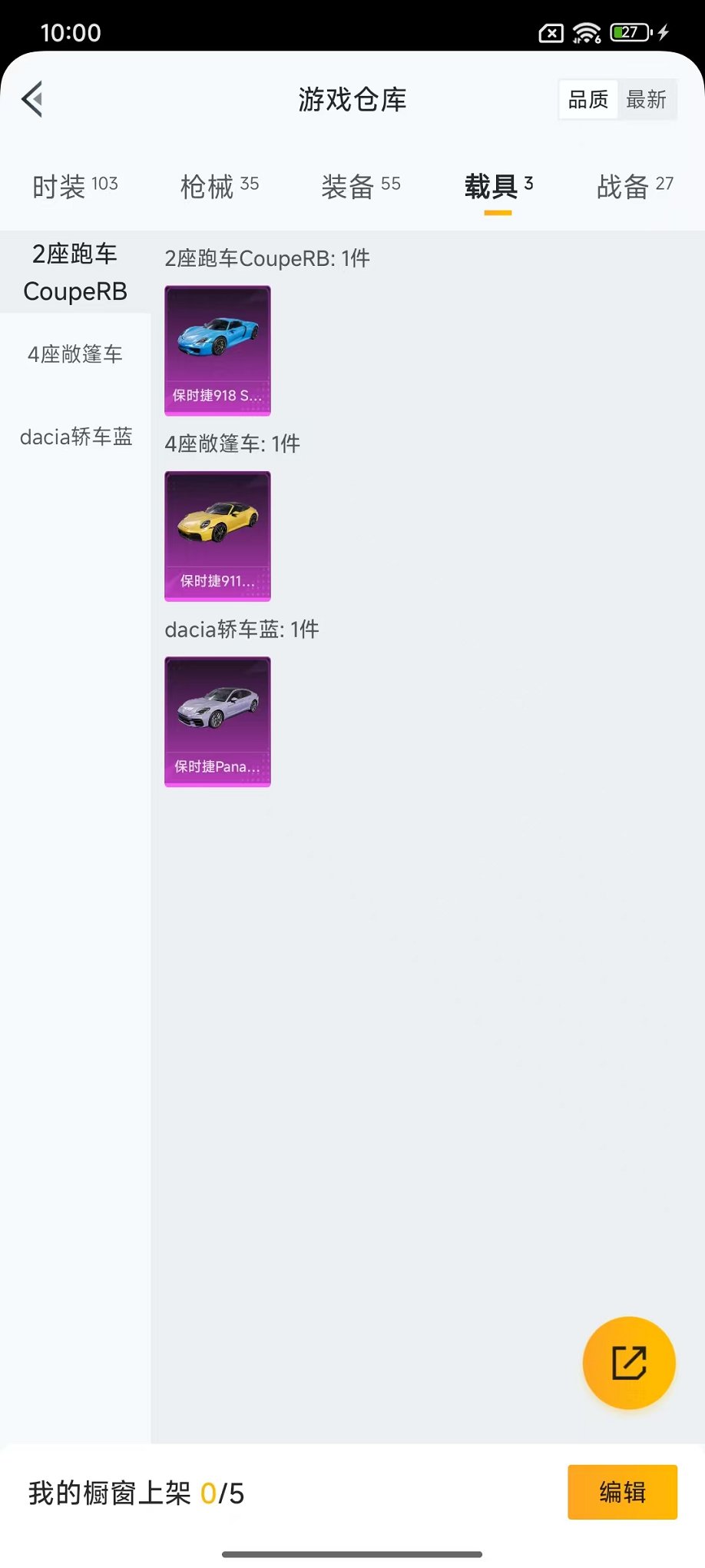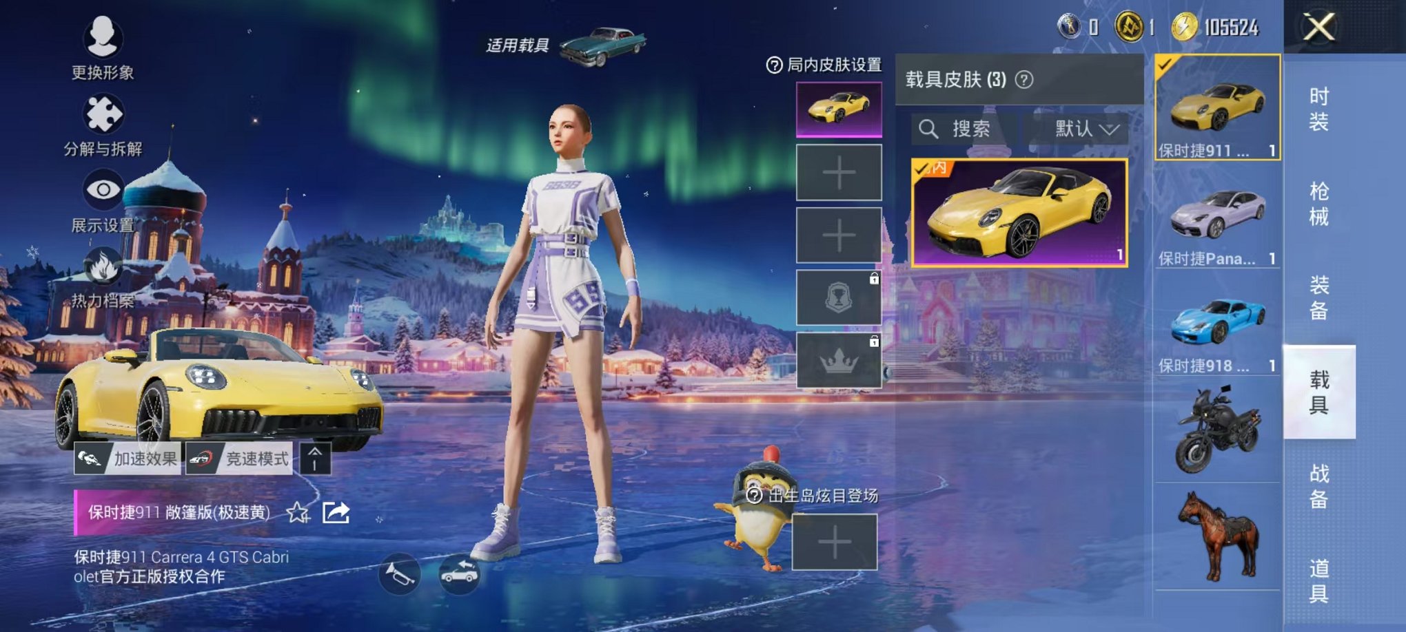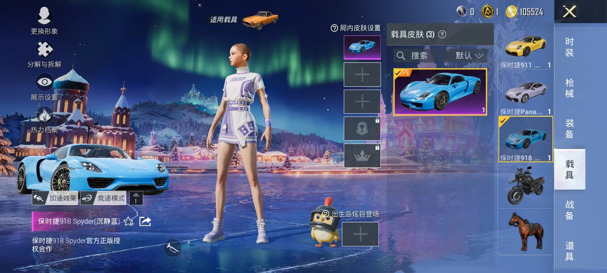 【3辆保时捷 1特效呛安全保护】 安卓v区-12091热力值-2印记-24套装-35呛皮 【3载具】 保时捷918 sper沉静蓝 保时捷panamera星辰紫 保时捷911 敞篷版极速黄【1特效呛】 dp-28-豹影疾电5级【2热门】 长空猛禽 破蛋小黄鸡【1飞行器】 炫彩糖果飞行器 营地id:1037507227