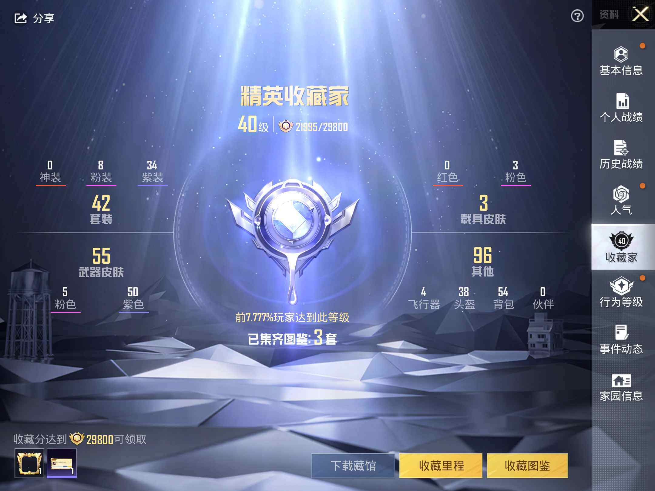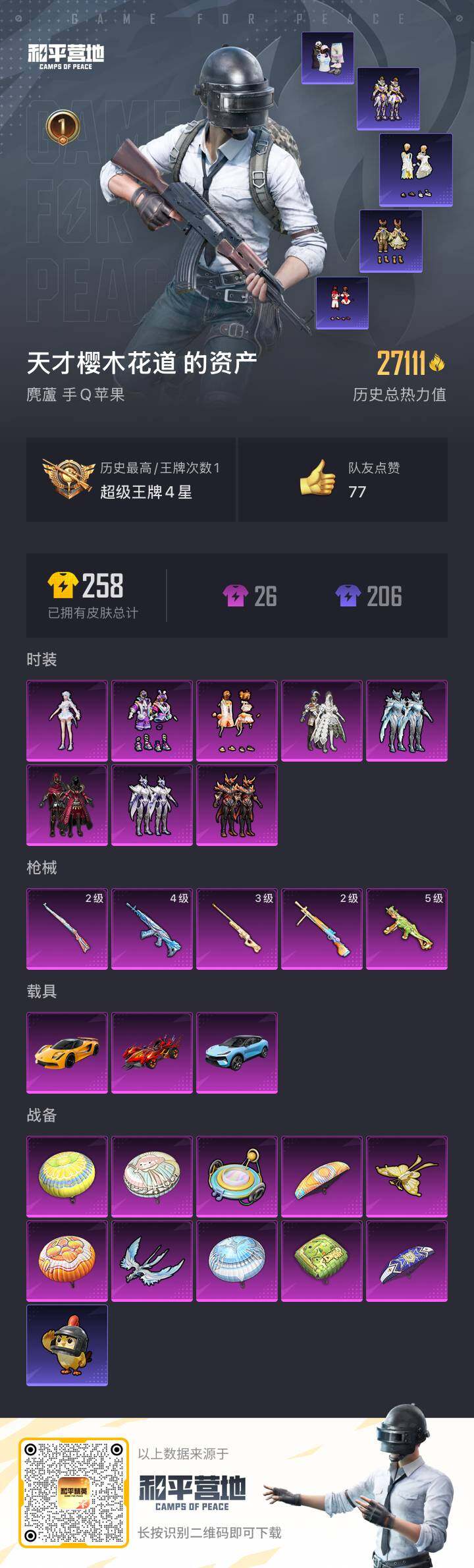 _2315157-手q-8粉装-5特效呛-3载具-3粉色飞行器-27111热力值-1王牌印记-42套装-68呛皮 【粉色套装】:粉装-冰霜白皇,粉装-炙焰红王,粉装-闪耀律动,粉装-橘柚倾心,粉装-冷魅冰骑,粉装-赤焰黑爵,粉装-紫电风暴,角色-荧海星豚 【粉色呛皮等级】:m762-冷魅冰骑四级,ump45-恐龙拽拽五级,kar98k-巳巳如意二级,awm-橘柚倾心三级,dp-28-幻梦音符二级 【粉色载具】:路特斯evija(星际黄),路特斯eletre(冰川蓝),焰龙咆哮 【粉色呛皮】:m762-冷魅冰骑,ump45-恐龙拽拽,kar98k-巳巳如意,awm-橘柚倾心,dp-28-幻梦音符 【粉色飞行器】:庄周梦蝶飞行器,幻梦音符飞行器,冷魅冰骑飞行器 【粉色降落伞】:香水柠檬降落伞,青春物语降落伞,恐龙拽拽降落伞,幻梦音符降落伞,橘柚倾心降落伞,冷魅冰骑降落伞,筑梦精灵降落伞 【稀有套装】:套装-朱霞炽焰,套装-凌霄紫焰,玩偶服-美羊羊 【稀有呛皮】:akm-恐龙拽拽,akm-灼热熔岩,akm-破晓战魂,scar-l-碧影闪光,m416-紫翼圣骑,groza-恐龙拽拽,groza-紫翼圣骑,aug-幻梦音符,q-飞驰魅影,m762-橘柚倾心,g36c-冷魅冰骑,ac-val-天降萌叽,蜜獾-天降萌叽,arx-凌霄紫焰,vect-生命誓言,汤姆逊-勇闯险境,汤姆逊-庄周梦蝶,js9-凌霄紫焰,p90-飞驰魅影,kar98k-勇闯险境,kar98k-炫彩节奏,kar98k-飞驰魅影,awm-庄周梦蝶,awm-恐龙拽拽,sks-勇闯险境,sks-幻梦音符,mini14-炫彩节奏,mini14-筑梦精灵,amr-喜羊羊与灰太狼,s686-橘柚倾心,s1897-勇闯险境,s1897-碧影闪光,s1897-飞驰魅影,m249-冷魅冰骑,dp-28-橘柚倾心,dp-28-紫翼圣骑,mg3-幻世战舞者,mg-36-凌霄紫焰,p92-凌霄紫焰,平底锅-凌霄紫焰 【其他套装】:套装-ss19特训,套装-ss25特训,套装-ss27特训,套装-冷焰舞者,套装-夏日音浪,套装-炫蓝之夏,套装-特战装甲,套装-王牌教练,套装-破蛋小黄鸡,套装-神秘领域,套装-竞技名士,套装-绮丽涂鸦,套装-绯格组合,套装-蓝彩潮人,套装-长空猛禽,套装-魅力单车,套装-迷域探索者,套