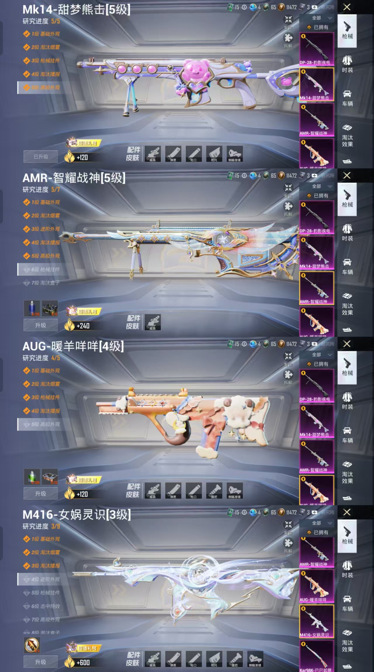 [14743263]h12194安卓q区-1粉装-6特效呛-16573热力值-6王牌印记-38套装-50呛皮【优质套装】: 梦幻火箭【特效呛等级】:aug-暖羊咩咩四级aug-暖羊咩咩m416-女娲灵识三级m416-女娲灵识kar98k-巳巳如意五级kar98k-巳巳如意【优质武器皮肤】: aug-暖羊咩咩 m416-女娲灵识 kar98k-巳巳如意【稀有武器皮肤】: aug-暖羊咩咩 m416-女娲灵识 kar98k-巳巳如意 pkm-紫幽梦 mk14-紫幽梦 蜜獾-乌木金纹 s1897-紫幽梦 p92-紫幽梦 pkm-啾咪啾咪 akm-砺玉逐花 m416-红色方程式 m416-蓝色火焰 scar-l-玉兔迎春 aug-甜蜜菠萝 m762-奇异狩猎者 uzi-影袭 uzi-啾咪啾咪 ump45-生命誓言 ump45-夜灯 mg3-幻世战舞者 tmp-9-江南烟雨 aug-异域银装 野牛-燕燕于飞 m200-乌木金纹 spas-12-燕燕于飞 蝎式手呛-燕燕于飞 十子怒-异域银装 vect-燕燕于飞 十子怒-燕燕于飞【其他套装】: 梦幻火箭 蓝冰羽 恋语绒绒 浪漫天命 摩登天骄 异域银装 纯白跃动 鱼渊荷华 燕燕于飞 战术大师 智谋强哥 晶辉守护 白熊同盟 特训学院 黄色运动 白色伏地魔 tt战队服 特战装甲 冷焰舞者 魅力单车 缤纷假日 幻影武者 暗金炫舞 王牌教练【优质飞行器】: 炫彩糖果飞行器 梦幻火箭飞行器 异域银装飞行器【优质降落伞】: 炫彩糖果降落伞 ss32王牌降落伞 晶梦幻蝶降落伞 普通降落伞 异域银装降落伞 燕燕于飞降落伞 ss31王牌降落伞 梦幻火箭降落伞
