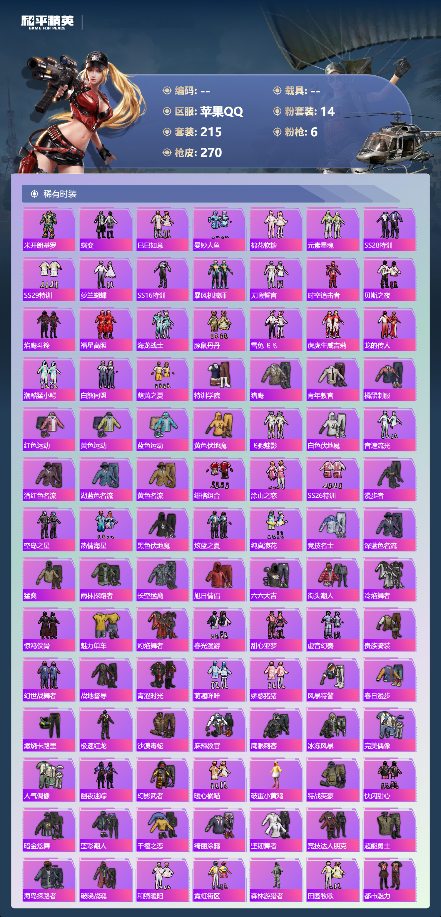 0载具-215套装-270呛皮-【小丑火箭都市哥特金鞋寒蝎暗夜之虎6升级呛 】苹果手q-18王牌印记-14粉装-6特效呛-87635热力值-215套装-270呛皮-3卓越印记-1传奇印记【14粉装】套装-极限特训套装-幻影战神角色-严莉莉套装-幻彩电音套装-怪诞乔克套装-放客神游套装-炙焰红王角色-白勺歌姬套装-智能音符套装-莲影清波角色-零号机款机体服套装-缤纷油彩角色-智耀战神