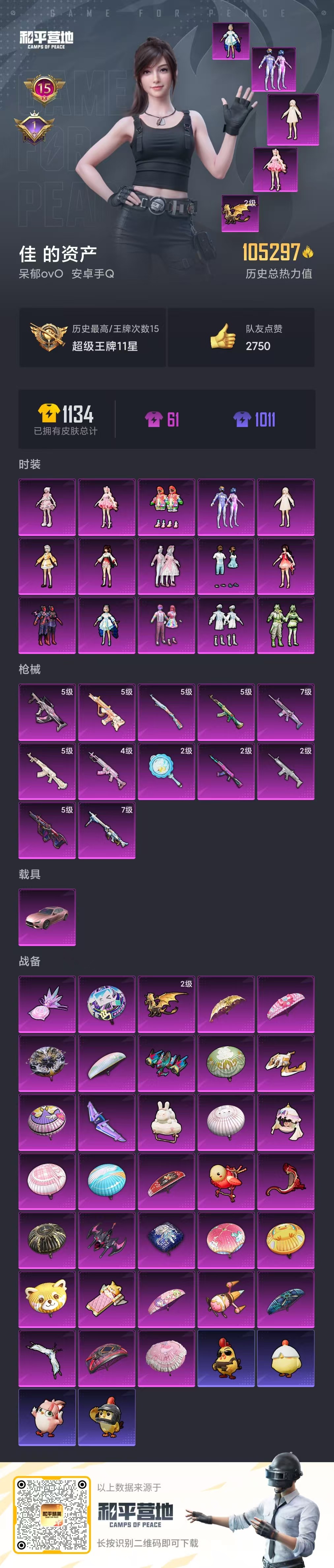 15王牌印记-10w热力值-15粉-12特-1车 新101-洛天依-海盐物语-仲夏莫吉托 满级梦幻火箭死噶-炫紫旋律ak-甜蜜誓约m762 粉玛莎