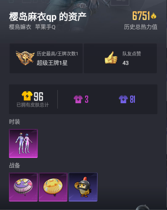 [14745070]苹果【小号 梦幻火箭 】 手q-1粉装-0特效呛-0载具-0粉色飞行器-6751热力值-1王牌印记-23套装-17呛皮 【热门品类】:粉装-梦幻火箭 【粉色套装】:粉装-梦幻火箭 【粉色降落伞】:梦幻火箭降落伞,垂柳戏鸭降落伞 【稀有呛皮】:akm-龙的传人,scar-l-玉兔迎春,scar-l-甜蜜誓约,蜜獾-垂柳戏鸭,蜜獾-娇憨猪猪,uzi-娇憨猪猪,kar98k-梦幻火箭,mini14-梦幻火箭,slr-娇憨猪猪,s1897-炫彩节奏,s12k-垂柳戏鸭,s12k-娇憨猪猪,沙墨之鹦-旋转彩虹 【其他套装】:套装-ss21特训,套装-ss22特训,套装-冷焰舞者,套装-特殊使命,套装-特训学院,套装-猎鹰,套装-猛禽,套装-玉兔迎春,套装-竞技达人朋克,套装-绮丽涂鸦,套装-耀粉歌者,套装-都市魅力,套装-酒红色名流,套装-长空猛禽,套装-魅力单车,套装-黑色伏地魔,套装-龙的传人,套装-冰川特警,套装-娇憨猪猪,套装-萌趣咩咩,套装-暖心熊熊,套装-梦幻奶油 【稀有头盔】:梦幻火箭头盔(3级),梦幻火箭头盔(2级),梦幻火箭头盔(1级) 【稀有背包】:梦幻火箭背包(3级),梦幻火箭背包(2级),梦幻火箭背包(1级),甜蜜誓约背包(3级) 【营地id】:933071162