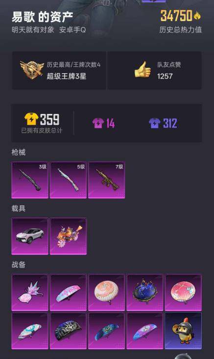 [14487938]安卓 【小号 奇异狩猎者 m416-五爪金龙七级 路特斯eletre(花绽灰】手q-0粉装-3特效呛-2载具-1粉色飞行器-34750热力值-4王牌印记-73套装-112呛皮 【热门品类】:套装-奇异狩猎者,旭日初心兜帽大衣 【粉色载具】:路特斯eletre(花绽灰),鬼马风驰 【粉色呛皮等级】:m416-五爪金龙七级,kar98k-巳巳如意五级,dp-28-豹影疾电三级 【粉色呛皮】:m416-五爪金龙,kar98k-巳巳如意,dp-28-豹影疾电 【粉色降落伞】:深海曼妙降落伞,pel轰鸣竞梦者降落伞,古堡领主降落伞,四圣焕新降落伞,旋转彩虹降落伞,鬼刀降落伞,桃粉嫣然降落伞 【稀有呛皮】:akm-pel轰鸣竞梦者,akm-夜灯,akm-灼热熔岩,akm-破晓战魂,akm-锦绣火鲤,akm-龙的传人,m16a4-夜灯,m16a4-快乐主宰,m16a4-机械英豪,scar-l-炫彩节奏,scar-l-玉兔迎春,m416-夜灯,m416-红色方程式,m416-蓝色火焰,m416-萌萌史莱姆,groza-治愈之星,groza-生命誓言,aug-耀粉歌者,q-原初圣火,q-彩虹符号,q-神秘黑猫,m762-深海曼妙,m762-牛气冲天,m762-绯红前夜,m762-镭射皇者,mk47-炫光之旅,g36c-不夜海上花,ac-val-天降萌叽,蜜獾-娇憨猪猪,uzi-众神之王,uzi-古堡领主,uzi-娇憨猪猪,ump45-生命誓言,vect-彩虹符号,vect-治愈之星,vect-生命誓言,汤姆逊-天降萌叽,汤姆逊-炫彩节奏,野牛-机械英豪,mp5k-众神之王,p90-巳巳如意,kar98k-彩虹符号,kar98k-炫彩节奏,kar98k-星穹咏叹调,m24-治愈之星,m24-众神之王,awm-不夜海上花,sks-心之恋语,vss-镭射皇者,mini14-原初圣火,mini14-旋转彩虹,mk14-治愈之星,win94-机械英豪,slr-众神之王,slr-四圣焕新,qbu-不夜海上花,s686-不夜海上花,s686-奇异狩猎者,s686-深海曼妙,s1897-神秘黑猫,s1897-镭射皇者,s12k-香水柠檬,s12k-夜灯,s12k-娇憨猪猪,s12k-机械英豪,m249-镭射皇者,m249-萌萌史莱姆,dp-28-原初圣火