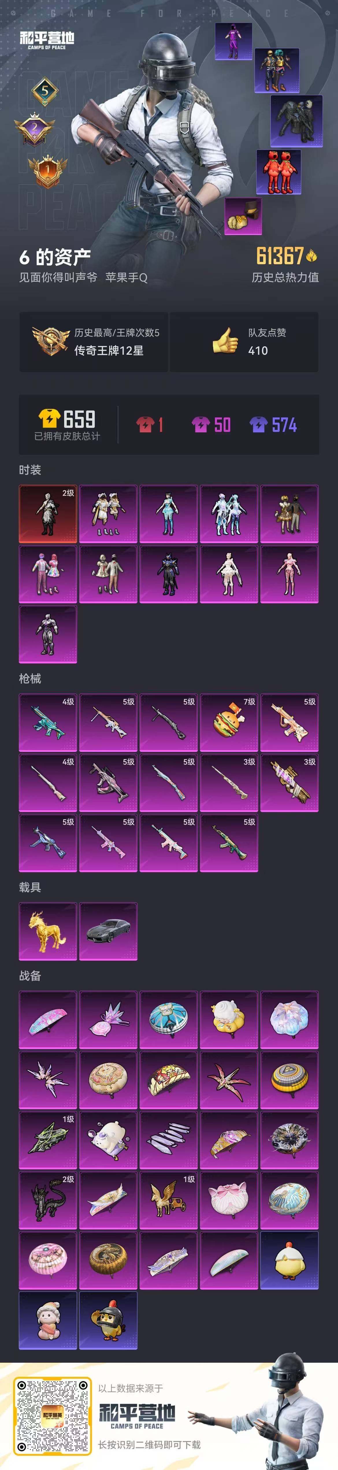 2320615-可二次-苹果q-【附带王者苹果q-78皮肤6传说 愿照九州拓 愿照山河定 无双飞将 久胜战神 黄金狮子座 仲夏夜之梦 神威 冰封战神 烈魂 诗语江南 营地1596525827】和平-粉丝logo-1000点券未用-1红装2载具10粉装14特效呛-敖渊 2级 巧克力三姐妹 都市猎人 麒麟马 权威小番茄 深海小丑鱼 nv战队服 119套装183呛皮 61367热力值 5印