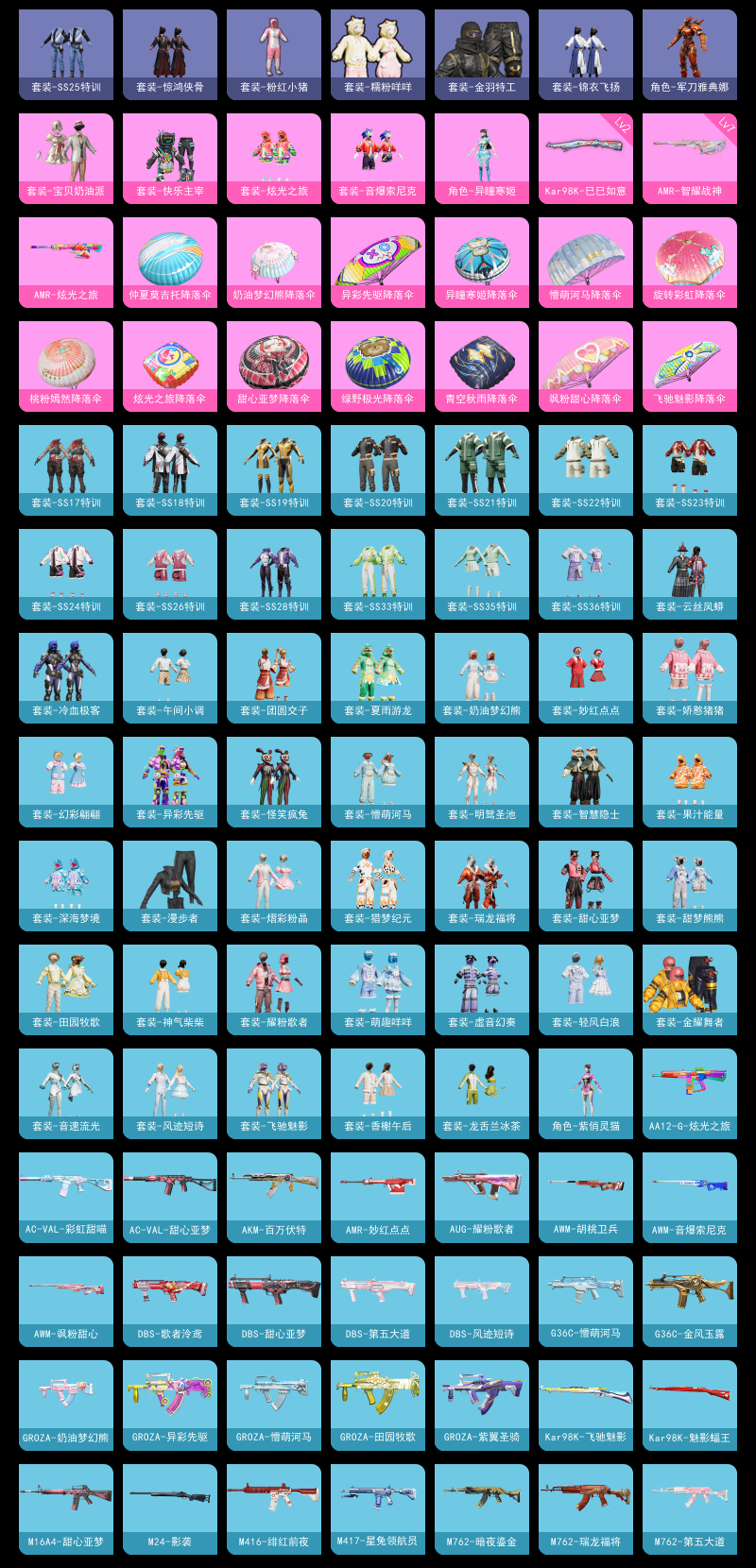 【和平精英】【lyhp18360】5粉3特效呛 软羊糯糯 炫光之旅 奶油派 胖螳螂 5粉装,3特效呛,0载具,历史最高段位:卓越王牌14星 王牌印记3次 热力值:45195,105套装,165呛械,171装备,73战备;套装:套装-快乐主宰,套装-宝贝奶油派,套装-音爆索尼克,套装-炫光之旅,角色-异瞳寒姬,套装-特训学院,套装-红色运动,套装-白色伏地魔,套装-竞技名士,套装-长空猛禽,套装-漫步者,套装-海岛探路者,套装-六六大吉,套装-灼焰舞者,套装-特战装甲,套装-春日漫步,套装-蓝彩潮人,套装-魅力单车,套装-绮丽涂鸦,套装-耀眼新星,套装-竞技达人朋克,套装-野性战心,套装-金羽特工,套装-破晓战魂,套装-荣耀,套装-幻世战舞者,套装-金耀舞者,套装-滨海厨神,套装-冰川特警,套装-冷血极客,套装-粉红小猪,套装-破蛋小黄鸡,套装-云丝凤蟒,套装-鹤鸣,套装-霓虹街区,套装-夏日音浪,套装-探宝勇士,套装-牛气满满,套装-怪笑疯兔,套装-牛气冲天,套装-ss18特训,套装-耀粉歌者,套装-ss17特训,套装-智慧隐士,套装-瑞龙福将,套装-团圆交子,套装-冰川谧蓝,角色-军刀雅典娜,套装-异彩先驱,套装-霓虹极客,套装-空投萌叽,套装-ss19特训,套装-飞驰魅影,套装-音速流光,套装-炫蓝之夏,套装-ss20特训,套装-猎梦纪元,套装-甜心亚梦,套装-虚音幻奏,套装-ss21特训,套装-萌趣咩咩,套装-娇憨猪猪,套装-夏雨游龙,套装-玉兔迎春,套装-ss22特训,套装-田园牧歌,套装-轻风白浪,套装-熠彩粉晶,套装-光之冒险,套装-ss23特训,套装-香榭午后,套装-龙舌兰冰茶,套装-甜梦熊熊,套装-神气柴柴,套装-懵萌河马,套装-妙红点点,套装-幻彩翩翩,套装-糯粉咩咩,套装-王牌教练,套装-柠萌假日,套装-青玉碎影,套装-ss24特训,套装-涂山之恋,套装-ss25特训,套装-惊鸿侠骨,套装-锦衣飞扬,套装-深海梦境,套装-果汁能量,套装-ss26特训,套装-空岛之星,套装-明鸳圣池,套装-ss28特训,套装-奶油梦幻熊,套装-海盐绵绵冰,角色-紫俏灵猫,套装-ss31特训,套装-ss33特训,套装-巳巳如意,套装-ss32特训,套装-大橘大利,套装-ss34特训,套装-ss35特训,套装-午间小调,套装-风迹短诗,套装-ss36特训;呛皮:mk47-百万伏特,mk47-乌木金纹,mk47-妙红点点,mk47-炫光之旅,mk47-风迹短诗,groza-异彩先驱,groza-紫翼圣骑,groza-田园牧歌,groza-懵萌河马,groza-奶油梦幻熊,groza-海盐豹豹,m762-瑞龙福将,m762-彩虹符号,m762-暗夜鎏金,m762-第五大道,m762-天降萌叽,aug-耀粉歌者,aug-异域银装,scar-l-黄金龙骨,scar-l-炫彩节奏,scar-l-银碳小老虎,scar-l-玉兔迎春,scar-l-海盐豹豹,q-彩虹符号,q-飞驰魅影,ac-val-甜心亚梦,ac-val-乌木金纹,ac-val-彩虹甜喵,akm-百万伏特,akm-破晓战魂,akm-彩虹符号,akm-虎虎生威,g36c-金风玉露,g36c-懵萌河马,g36c-乌木金纹,m16a4-红色方程式,m16a4-甜心亚梦,m16a4-幻世战舞者,famas-乌木金纹,m416-蓝色火焰,m416-绯红前夜,蜜獾-娇憨猪猪,蜜獾-天降萌叽,蜜獾-风迹短诗,蜜獾-乌木金纹,莫辛纳甘-乌木金纹,莫辛纳甘-懵萌河马,莫辛纳甘-风迹短诗,awm-胡桃卫兵,awm-音爆索尼克,awm-飒粉甜心,1级amr-炫光之旅,7级amr-智耀战神,amr-妙红点点,amr-乌木金纹,2级kar98k-巳巳如意,kar98k-飞驰魅影,kar98k-魅影蝠王,win94-怪笑疯兔,win94-瑞龙福将,win94-乌木金纹,m200-惊鸿侠骨,m24-影袭,m24-乌木金纹,mini14-穿刺龙虾,mini14-梦幻火箭,mini14-炫彩节奏,mini14-海渊国主,mini14-异彩先驱,m417-星兔领航员,m417-惊鸿侠骨,m417-玩趣呆呆,slr-月影鸳鸯,slr-娇憨猪猪,vss-碧影闪光,vss-田园牧歌,vss-绿野极光,vss-彩虹符号,mk12-风迹短诗,mk12-乌木金纹,sks-炫彩节奏,mk14-乌木金纹,ump45-夜灯,ump45-蓝色火焰,ump45-生命誓言,ump45-快乐主宰,ump45-涂山之恋,ump45-炫光之旅,ump45-海盐豹豹,野牛-奶油梦幻熊,野牛-乌木金纹,汤姆逊-奇异狩猎者,汤姆逊-耀粉歌者,汤姆逊-炫彩节奏,汤姆逊-异彩先驱,汤姆逊-暗夜鎏金,汤姆逊-天降萌叽,mp5k-异彩先驱,uzi-红色方程式,uzi-金风玉露,uzi-娇憨猪猪,uzi-天降萌叽,uzi-啾咪啾咪,vect-香水柠檬,vect-田园牧歌,aks-74u-乌木金纹,p90-飞驰魅影,p90-乌木金纹,s12k-破晓战魂,s12k-夜灯,s12k-瑞龙福将,s12k-娇憨猪猪,s12k-幻世战舞者,s12k-玩趣呆呆,dbs-甜心亚梦,dbs-歌者泠鸢,dbs-第五大道,dbs-风迹短诗,dbs-乌木金纹,s1897-炫彩节奏,s1897-飞驰魅影,s1897-糯团青竹,spas-12-田园牧歌,s686-王牌投手,aa12-g-炫光之旅,mg3-瑞龙福将,mg3-幻世战舞者,mg3-乌木金纹,mg3-青空秋雨,mg3-妙红点点,mg3-惊鸿侠骨,mg3-桃粉嫣然,mg3-霓彩脉冲,m249-百万伏特,m249-破晓战魂,m249-月影鸳鸯,m249-糯团青竹,m249-妙红点点,dp-28-彩虹符号,dp-28-橘柚倾心,dp-28-紫翼圣骑,dp-28-甜心亚梦,dp-28-玉鳞金羽,pkm-懵萌河马,蝎式手呛-奶油梦幻熊,平底锅-绯红前夜,平底锅-瑞龙福将,平底锅-异彩先驱,平底锅-飞驰魅影,平底锅-甜心亚梦,平底锅-娇憨猪猪,平底锅-田园牧歌,平底锅-光之冒险,平底锅-妙红点点,平底锅-懵萌河马,平底锅-惊鸿侠骨,平底锅-空岛之星,平底锅-属我最6,撬棍-环太平洋,撬棍-幻世战舞者,破片手留单-呆爆全场,破片手留单-海盐豹豹,破片手留单-爆破雪人,爆炸猎弓-惊鸿侠骨,十子怒-异域银装;降落伞:粉色滑翔尾迹,异域银装飞行器; 详情看图