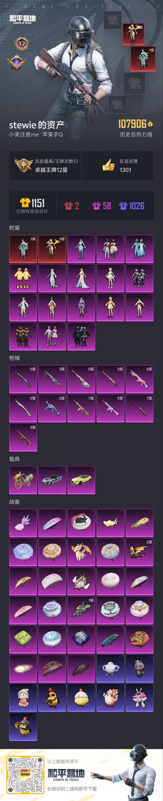 [14810740]2红装 16粉装 11特效呛 3载具 12印记 可二次 【三级神装】:三级圣域龙灵-瑞拉3级瑞拉 【一级神装】:一级辉羽雀灵-初翊1级初翊 【热门装扮】:狂花道·不知火舞幻影飞狐彩虹独角兽月影灵韵异瞳寒姬智耀战神幻海仙踪星穹咏叹调雪国幻梦冰雪女王天使彩虹糖赤焰黑爵呆萌星弥小可学妹暗夜玫瑰傲傲奶龙严莉莉潮萌小黄鸭仓鼠灰灰爱崽白熊浪漫波比 【载具】:僚机-圣域龙宝迈凯伦塞纳冷萃蓝宝马m4圣保罗黄辉羽雀灵自行车 【稀有呛皮】:mk14-樱桃泡泡kar98k-圣域龙灵amr-智耀战神ump45量子极限kar98k-巳巳如意mg3-辉羽雀灵m416电玩时刻dp-28-豹影疾电m416风花雪月m416心之恋语m24暗星紫秘 【七级特效呛】:七级m416-心之恋语七级m24-暗星紫秘 【六级特效呛】:六级mk14-樱桃泡泡 【五级特效呛】:五级kar98k-巳巳如意五级ump45-量子极限五级dp-28-豹影疾电五级amr-智耀战神五级m416-电玩时刻 【三级特效呛】:三级kar98k-圣域龙灵三级mg3-辉羽雀灵三级m416-风花雪月 【紫色装扮】:ss34特训套装凌霄紫焰朱霞炽焰擎苍青焰顶瓜瓜ss33特训套装ss22特训香榭午后ss23特训极速光影ss30特训套装ss31特训套装云朵鹅彩虹兔雪绒豹ss5特训怒火燎原战地菁英柠萌假日格斗先锋冰原使者冰川特警凛冬战士北国孤狼吉莉礼服圣诞大吉夏日音浪瑞龙福将团圆交子醒狮腾龙ss17特训异彩先驱ss18特训ss15特训暗夜傀儡欧布奥特曼ss16特训娇憨猪猪萌趣咩咩暖心熊熊ss21特训飞驰魅影音速流光ss19特训英勇保护者沙漠兵团无面战甲夜瞳黯灵美羊羊薄荷星砂黄色名流风行保卫者骑行爱好者魅力单车黎明保卫者龙的传人龙腾端午龟仙人龙魂突击队云魄琉璃元气之梦风迹短诗午间小调秘语星愿ss35特训萌鸡速递霓虹极客甜蜜告白特战装甲王牌教练甜蜜熊情侣疯狂小兔子白熊同盟破蛋小黄鸡牛气满满海岛探路者牛气冲天灰色格斗者炫蓝之夏热血青春福星高照跃动心情都市漫游者酷潮明星野性战心长空猛禽雪山