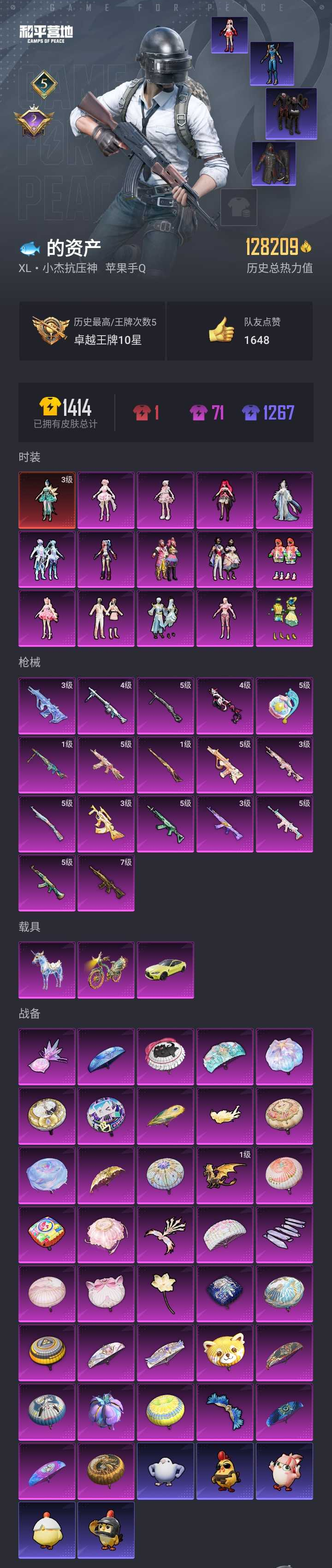 【和平精英】【lyhp18392】12w热力值 1红装14粉装17特效呛3载具 3级初翎 奇迹舞步 羊梦糖心 狂魅哈莉 樱桃泡泡 缤纷油彩 绯穹魔姬 第五大道 暗影哥特 3级akm魔法神域 3级aug星梦奇缘 3级狗杂精灵之光 满级m4五爪金龙 3级mk14盛世惊鸿 mg3辉羽雀灵 星空马 宝马m4 14粉装,17特效呛,3载具,历史最高段位:卓越王牌10星 王牌印记5次 热力值:128209,254套装,385呛械,516装备,215战备;套装:辉羽雀灵-初翊,套装-缤纷油彩,套装-香水柠檬,套装-第五大道,套装-炫光之旅,角色-守护天翼,套装-金丰海韵,角色-樱桃泡泡,角色-绯穹魔姬,角色-狂魅哈莉,角色-宁雨蝶,套装-幻彩电音,套装-星穹咏叹调,角色-羊梦糖心,角色-奇迹舞步 美雪,套装-红色运动,套装-黄色运动,套装-蓝色运动,套装-骑行爱好者,套装-登山爱好者,套装-竞技名士,套装-黄色名流,套装-长空猛禽,套装-竞技勇士朋克,套装-黎明保卫者,套装-蓝色守护者,套装-旭日情侣,套装-灼焰舞者,套装-刚毅裁决者,套装-特战装甲,套装-战地菁英,套装-贵族骑装,套装-特殊使命,套装-黄色格斗者,套装-灰色格斗者,套装-活力之心,套装-碟中谍a款,套装-甜蜜告白,套装-战地名士,套装-春日漫步,套装-潮流先锋,套装-燃烧卡路里,套装-完美偶像,套装-海滨突袭者,套装-千禧之恋,套装-神秘领域,套装-怒火燎原,套装-决胜时刻,套装-魅力单车,套装-绮丽涂鸦,套装-狂战萌兔,套装-雪山征服者,套装-坚韧舞者,套装-竞技达人朋克,套装-夜莺强袭者,套装-热血青春,套装-丛林猎人,套装-雪山精英,套装-传奇侦探,套装-幻世战舞者,套装-冰凉西瓜,套装-奇异狩猎者,套装-蓝调潮人,套装-暗影哥特,套装-呆萌铁蟹,套装-夏日倾情,套装-甜蜜熊情侣,套装-青涩时光,套装-缤纷果语,套装-龙魂突击队,套装-格斗先锋,套装-ss3特训,套装-初雨海棠,套装-ss4特训,套装-梦魇先生,套装-万圣娃娃,套装-黑夜传说,套装-疯狂小兔子,套装-花面小丑,套装-深蓝冒险家,套装-迷域探索者,套装-机械英豪,套装-机械征服者,套装-阳光火鸡,套装-ss5特训,套装-圣诞大吉,套装-冰原使者,套装-凛冬战士,套装-爱崽白熊,套装-爆竹金鼠,套装-金鼠迎春,套装-北国孤狼,套装-ss6特训,套装-拳皇97八神庵,套装-炽焰拳师,套装-格斗专家,套装-玲珑飞花,套装-跃动心情,套装-ss7特训,套装-霓虹街区,套装-暗夜契约,套装-纯白誓言,套装-软嫩糖心蛋,套装-ss10特训,套装-ss8特训,套装-众神之王,套装-智慧之神,套装-软萌银虎,套装-萌黄之夏,套装-pel躁动竞梦者,套装-摇滚狂鲨,套装-ss9特训,套装-风华少年志,套装-白月香洋装,套装-神秘舞者,套装-顽皮玉兔,套装-探宝勇士,套装-牛气满满,套装-韶华初心,套装-ss11特训,套装-潮流游乐家,套装-玄武圣者,套装-朱雀圣者,套装-原初圣火,套装-逆风勇士,套装-初火先锋,套装-战术大师,套装-ss12特训,套装-牛气冲天,套装-ss18特训,套装-镭射皇者,套装-银白舞王,套装-耀粉歌者,套装-迅捷之星,套装-治愈之星,套装-科技之星,套装-飞行日记,套装-ss13特训,套装-竞技角斗士,套装-曼妙人鱼,套装-热情海星,套装-纯真浪花,套装-冰爽海盐,套装-浪漫樱花,套装-ss14特训,套装-天籁歌者,套装-电音精灵,套装-吉莉礼服,套装-快乐星愿,套装-ss15特训,套装-ss16特训,套装-福星高照,套装-豚鼠丹丹,套装-ss19特训,套装-ss20特训,套装-猎梦纪元,套装-甜心亚梦,套装-虚音幻奏,套装-ss21特训,套装-萌趣咩咩,套装-娇憨猪猪,套装-绯格组合,套装-青玉碎影,套装-ss24特训,套装-冥星暗影,套装-龟仙人,套装-ss25特训,套装-深海梦境,套装-冰河战士,套装-ss26特训,套装-快闪甜心,套装-春光漫游,套装-空岛之星,套装-无暇誓言,角色-星际旅行,角色-舰行太空,套装-贝斯之夜,套装-ss27特训,套装-恋语绒绒,套装-ss28特训,套装暗影刺翼,角色-极地流光,角色-粉雾星云,角色-白光莹,角色-冰公主,角色-8号机,角色-mark.06,套装-海盐绵绵冰,套装-电光马卡龙,套装-蝶变,套装-创世·幻影,套装-创世·追猎,套装-湖畔霞光,套装-粉日山川,套装-小熊娃娃,套装-ss29特训,套装-雏菊兔兔,套装-萝兰蝴蝶,角色-绯色魅影,角色-无面战甲,套装-先驱飞行员,套装-异域银装,角色-摩登魅猫,角色-都市丽猫,套装-星途旅人,角色-怀庆长公主,套装-ss30特训,套装-青团波波,角色-夜瞳黯灵,套装-天籁学园,角色-绛羽幽主,套装-暗夜风云,套装-糖糖葫芦,套装-蓝调潮影,套装-纯白跃动,套装-ss31特训,套装-鱼渊荷华,套装-石蕴玉辉,套装-燕燕于飞,套装-智谋强哥,套装-晶灵使者,套装-紫幽梦,套装-粉恋花,套装-ss33特训,套装-云朵鹅,套装-巳巳如意,套装-ss32特训,套装-彩虹兔,套装-樱梦幻音,套装-蓝冰羽,套装-顶瓜瓜,套装-雪绒豹,套装-混沌火种,角色-蛇蝎美人,套装-大橘大利,套装-圣穹绘梦,角色-鲛海歌灵,套装-星渊小夜曲,套装-霓虹热舞,套装-蜜露汐语,套装-星影赞美诗,角色-乐音,套装-元气之梦,套装-ss34特训,套装-擎苍青焰,套装-朱霞炽焰,套装-游乐,套装-凌霄紫焰,套装-薄荷星砂,套装-ss35特训,套装-午间小调,套装-风迹短诗,套装-粉黛兰香,套装-萌鸡速递;呛皮:m16a4-生命誓言,m16a4-红色方程式,m16a4-夜灯,m16a4-机械英豪,m16a4-甜心亚梦,m16a4-幻世战舞者,m16a4-冰河战士,m16a4-天使羽翼,m16a4-电光马卡龙,m16a4-千金淑猫,m16a4-乌木金纹,q-诡娃娃,q-神秘黑猫,q-原初圣火,q-赛罗,q-洛神天依,q-纯真浪花,q-乌木金纹,5级m762-青锋波束,m762-奇异狩猎者,m762-诡娃娃,m762-甜心宝贝,m762-拳皇97,m762-牛气冲天,m762-镭射皇