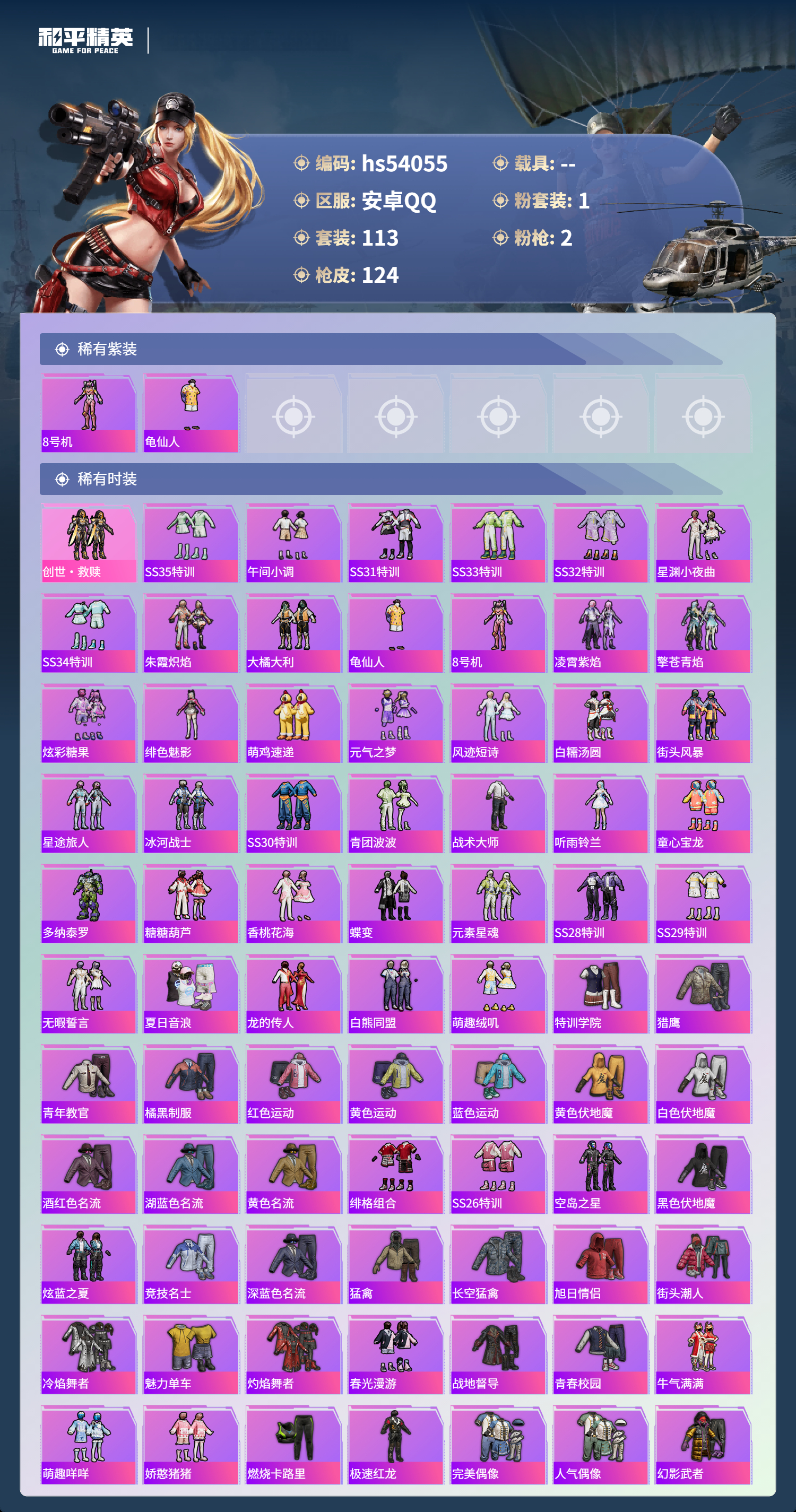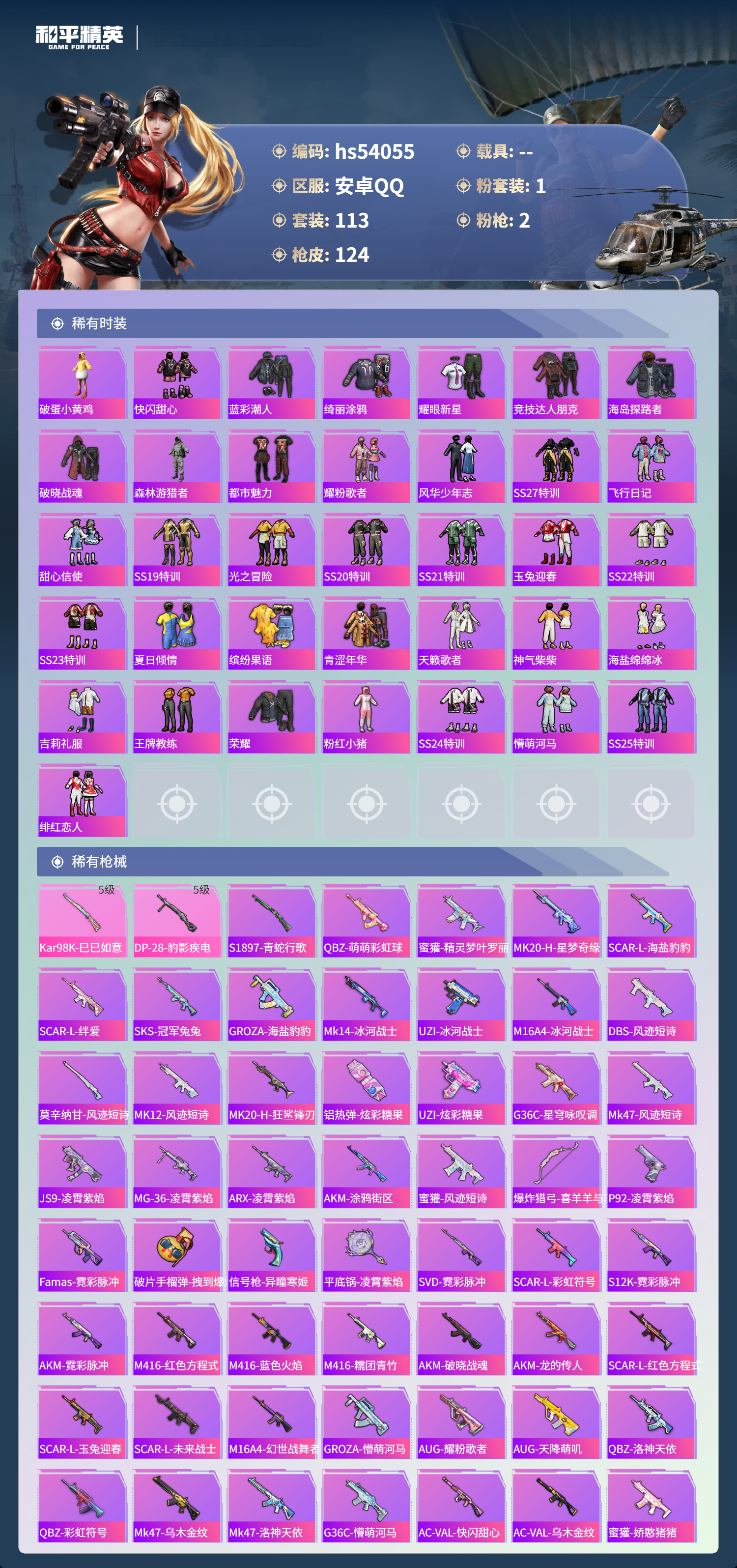 hs54055 安卓手q-4王牌印记-1粉装-2特效呛-36093热力值-113套装-124呛皮【1粉装】套装-创世·救赎【2特效呛】kar98k-巳巳如意/5级dp-28-豹影疾电/5级【2稀有紫装】8号机龟仙人【113稀有时装】ss35特训午间小调ss31特训ss33特训ss32特训星渊小夜曲ss34特训朱霞炽焰大橘大利龟仙人8号机凌霄紫焰擎苍青焰炫彩糖果