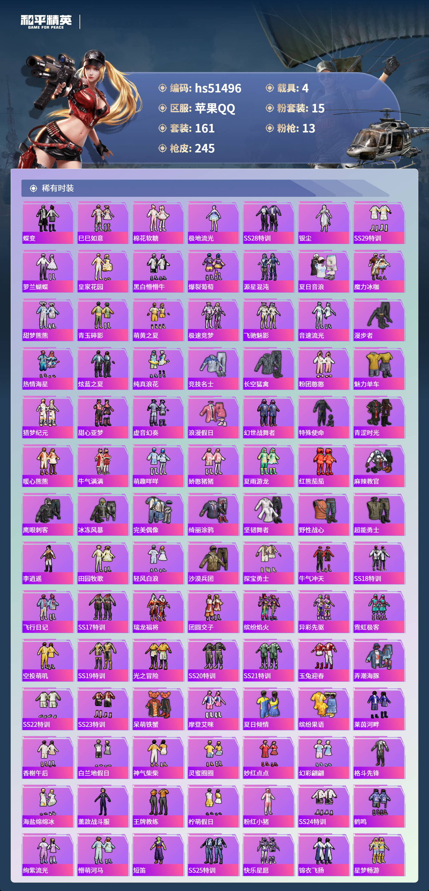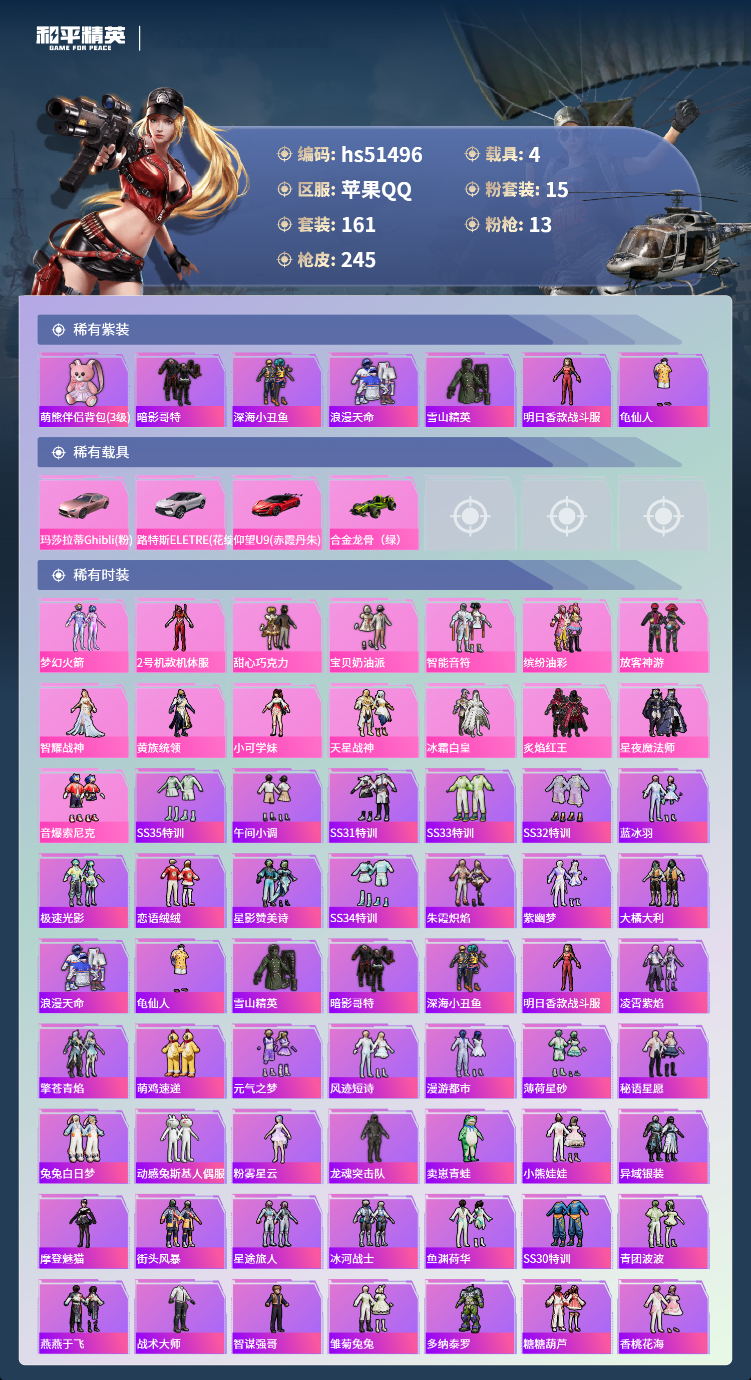 hs51496 苹果手q-13王牌印记-15粉装-13特效呛-4载具-87725热力值-161套装-245呛皮-4卓越印记-3传奇印记【15粉装】套装-放客神游套装-音爆索尼克角色-智耀战神套装-炙焰红王套装-星夜魔法师套装-梦幻火箭套装-缤纷油彩套装-智能音符角色-小可学妹角色-2号机款机体服套装-冰霜白皇套装-天星战神套装-黄族统领套装-宝贝奶油派套装-甜心巧克力
