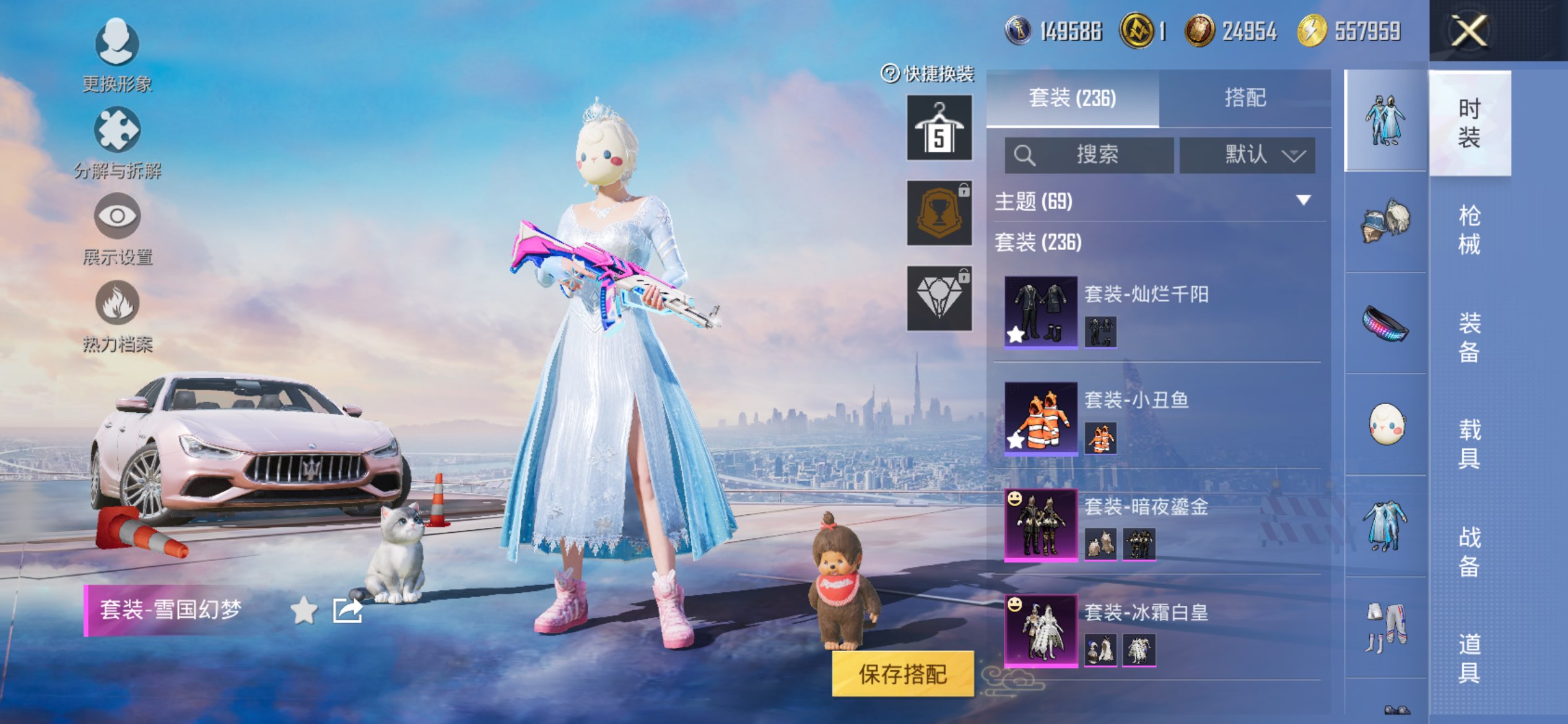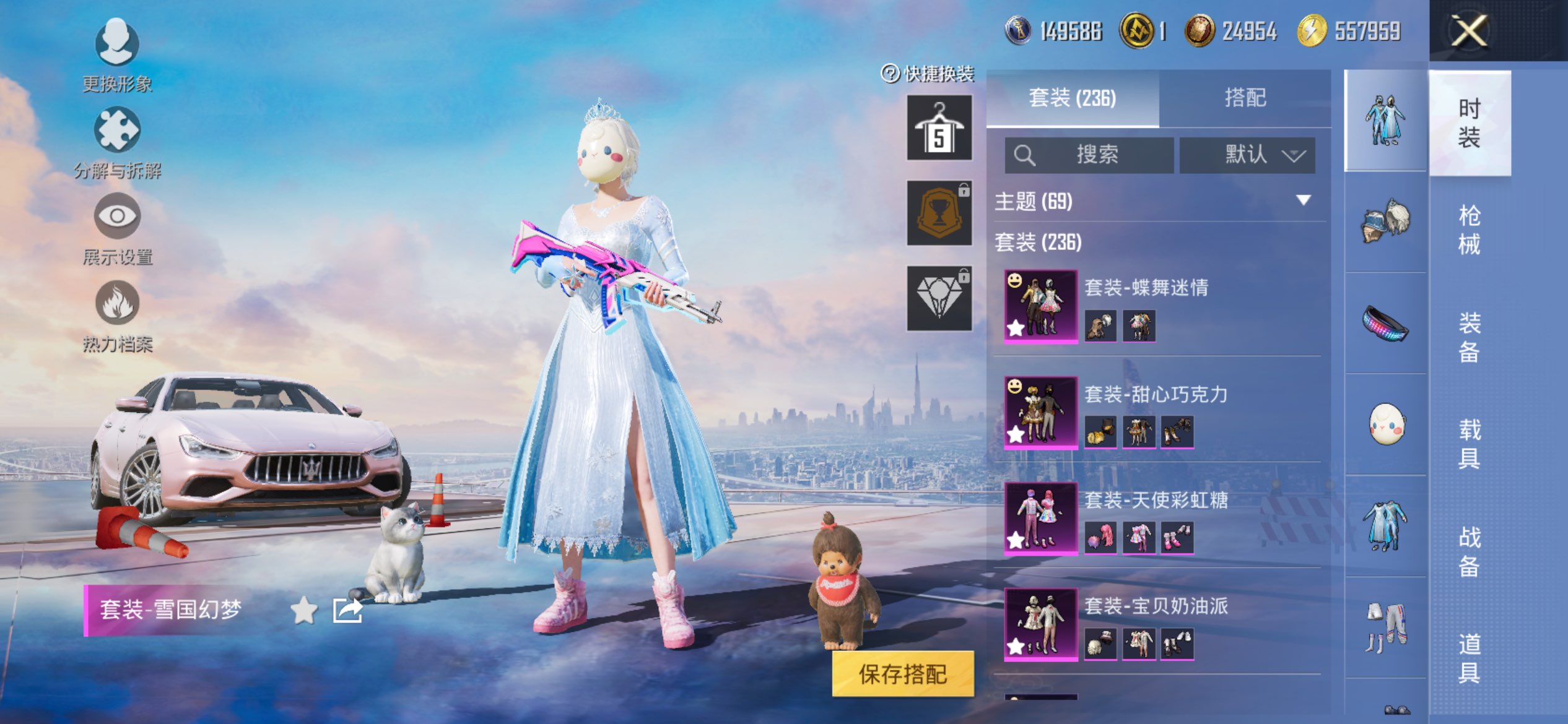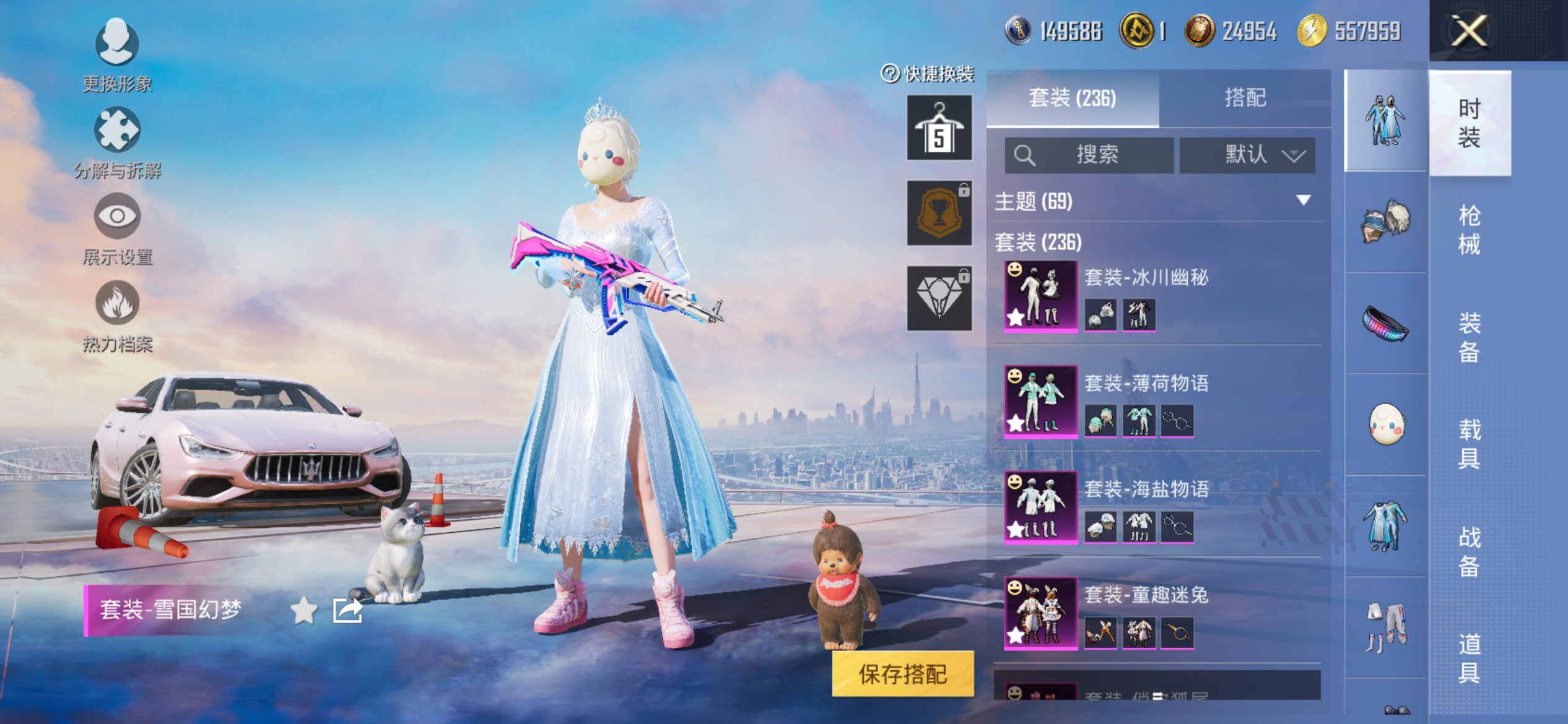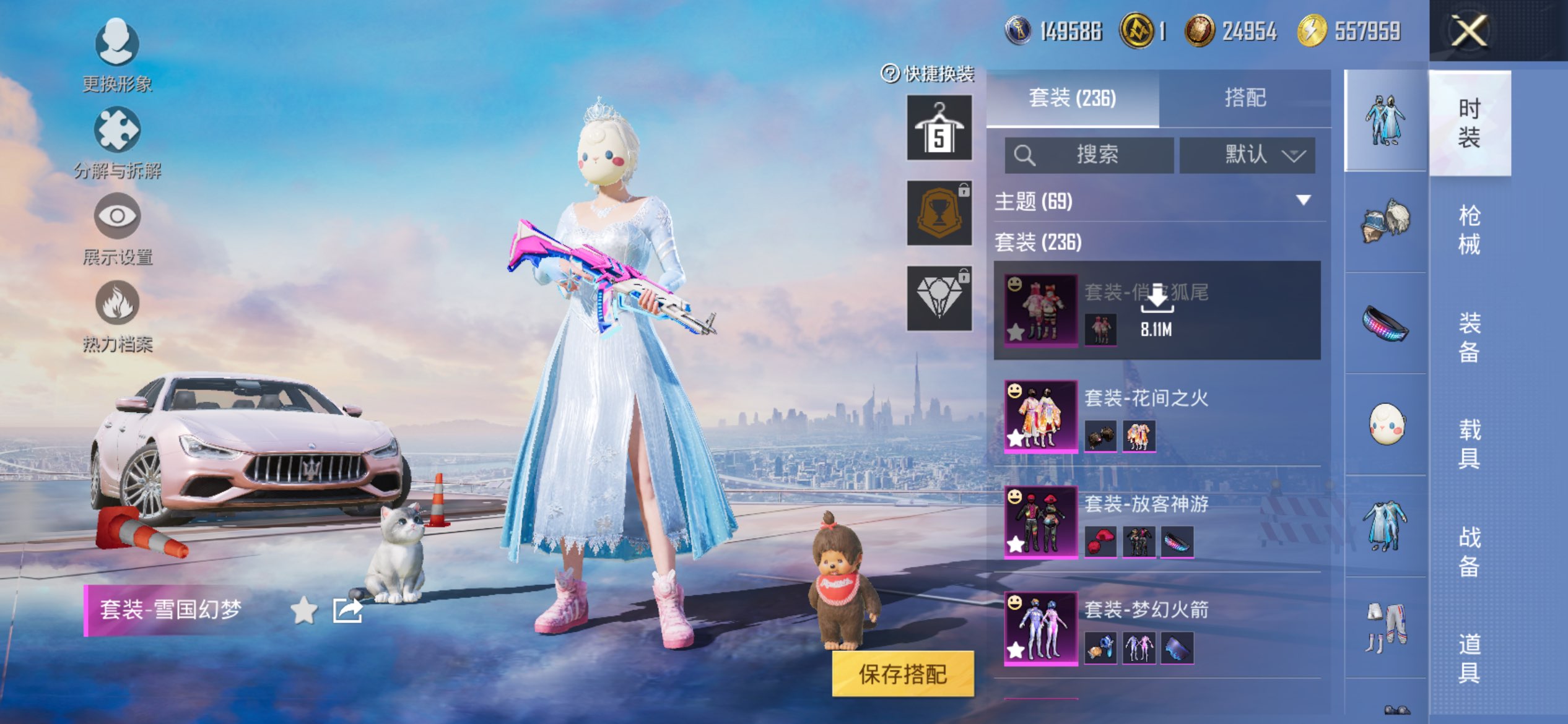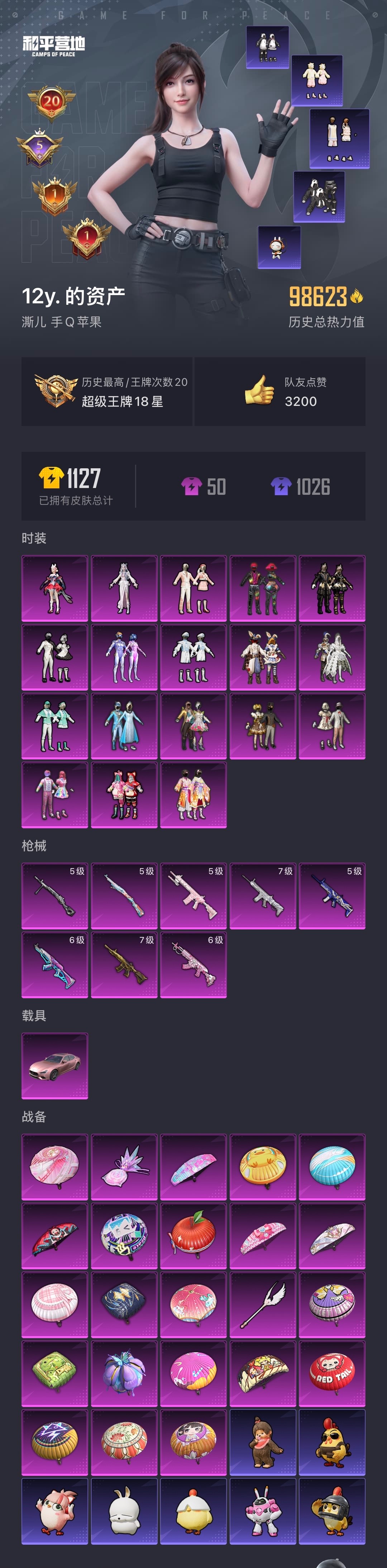 1载具-236套装-272呛皮-苹果手q-可二次-极品女号-冰雪全套-柯基背包全套-兔斯基背包全套-新101套装-胖达衣服-糯粉咩咩套装-胖达团团-兔斯基套装-小黄鸭套装20王牌印记-18粉装-8特效呛-1载具-98623热力值-236套装-272呛皮-5卓越印记-1传奇印记【18粉装】套装-俏皮狐尾套装-花间之火套装-海盐物语套装-第五大道套装-放客神游套装-天使彩虹糖套装-冰霜白皇套装-童趣迷兔套装-甜心