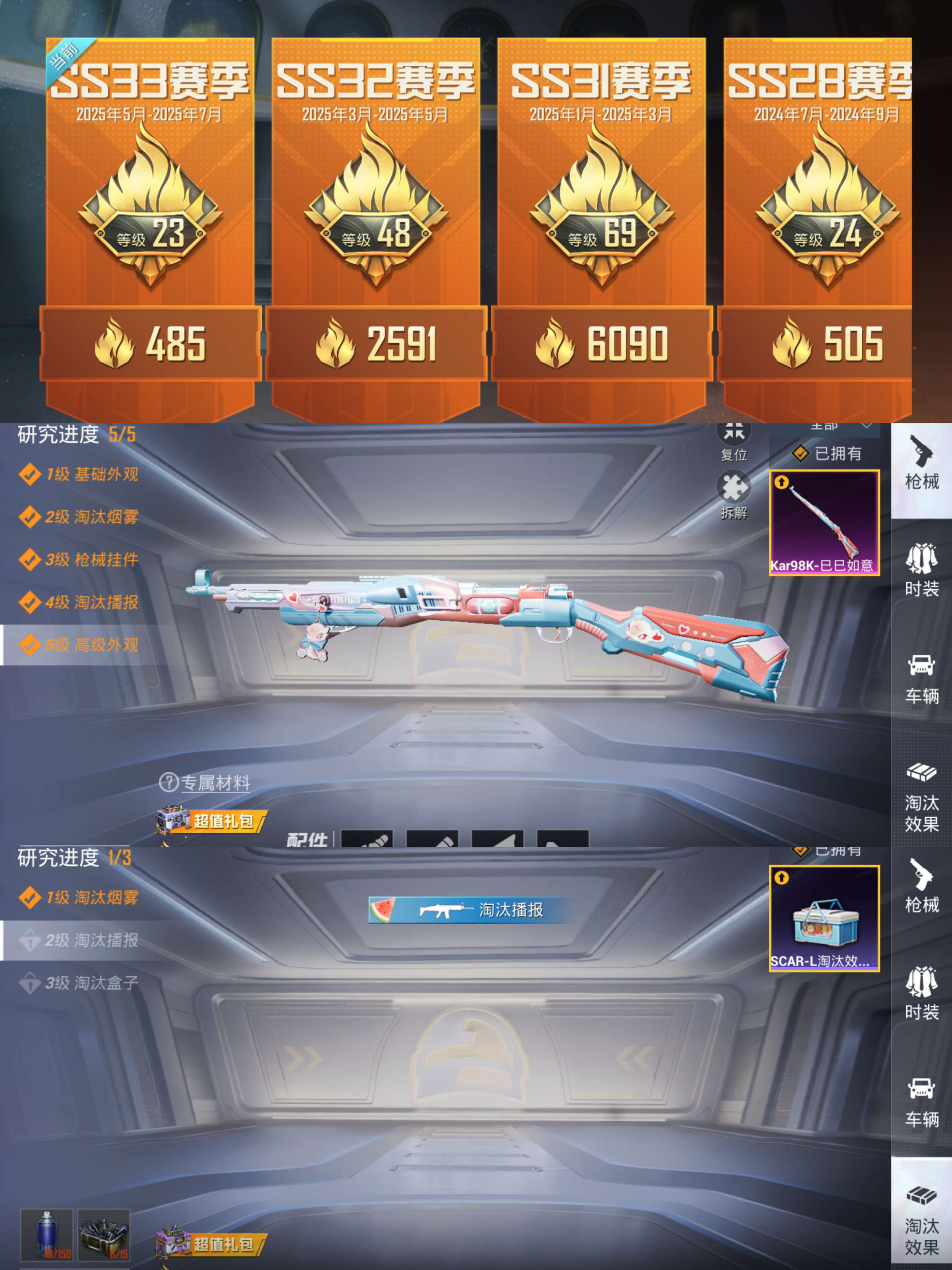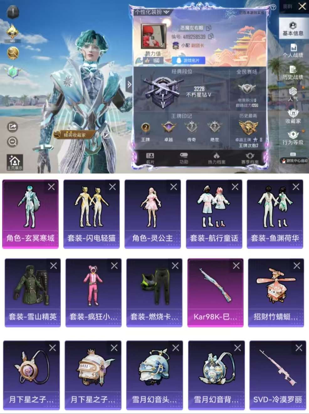 aqy630可二次-1粉装-1特效呛-12914热力值-2王牌印记-47套装-48呛皮【优质套装】: 玄冥寒域【特效呛等级】:kar98k-巳巳如意五级kar98k-巳巳如意【优质武器皮肤】: kar98k-巳巳如意【稀有武器皮肤】: scar-l-海盐豹豹 kar98k-巳巳如意 pkm-紫幽梦 mk14-紫幽梦 蜜獾-乌木金纹 s1897-紫幽梦 p92-紫幽梦 撬棍-戏水时光 tmp