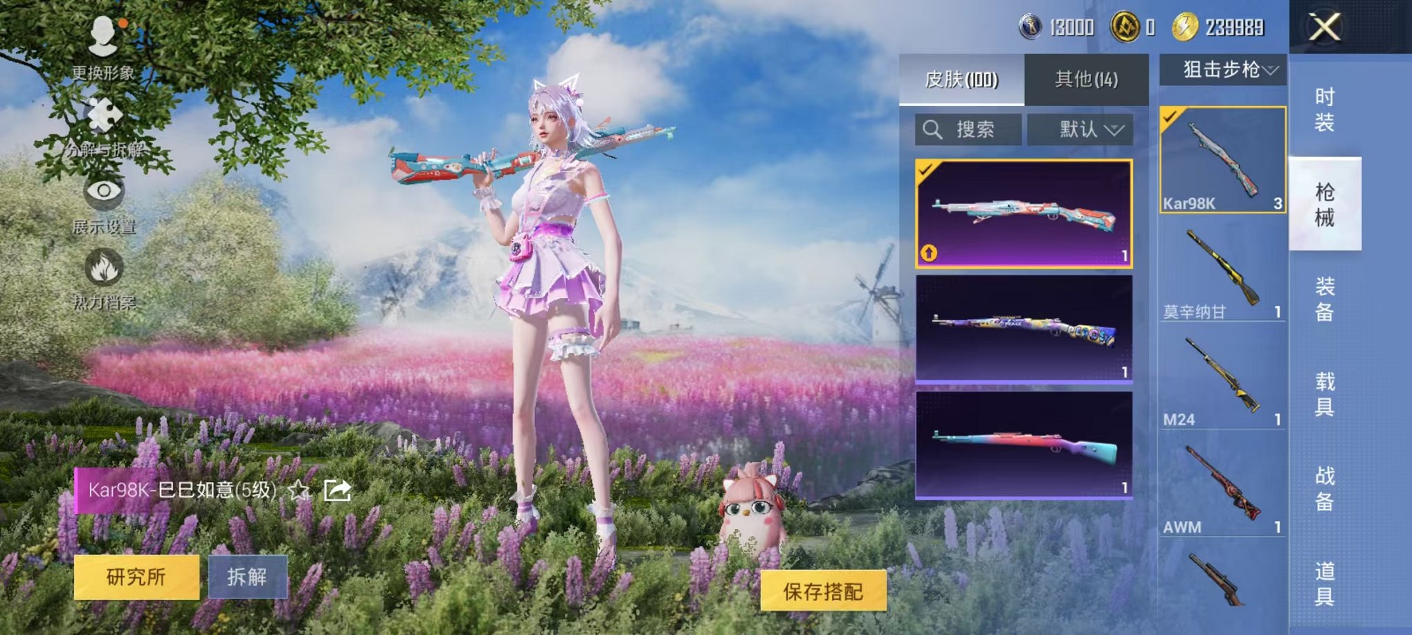 【1粉装2特效呛】 安卓v区-29435热力值-14印记-75套装-100呛皮 【1粉装】 星穹咏叹调【2特效呛】 m416-电玩时刻5级 kar98k-巳巳如意5级【14热门】 长空猛禽 霓虹街区 破蛋小黄鸡 冰公主 ss27特训 ss26特训 ss24特训 ss23特训 ss22特训 scar-l-玉兔迎春 mk47-乌木金纹 ump45-蓝色火焰 mg3-幻世战舞者 akm-霓虹街区【1飞行器】 空岛之星尾迹 营地id:798073522