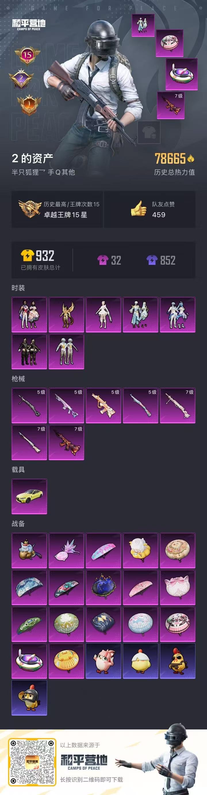 7粉装 7特效呛 1.0载具 15印记 可二次 【热门装扮】鹰眼刺客派对舞王小金鞋梦魇先生千面幻镜暗夜鎏金未来歌姬金丰海韵千金淑猫凤凰座 一辉星穹咏叹调 【载具】宝马m4圣保罗黄 【稀有呛皮】aug-暖羊咩咩m416风花雪月m24莲影清波kar98k-巳巳如意