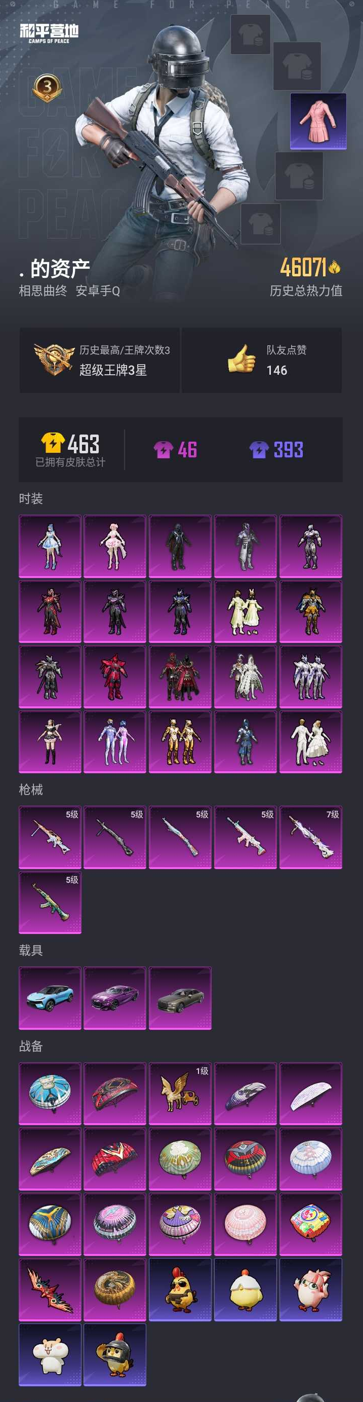 【和平精英】【lyhp19047】20粉装6特效呛3载具 奇迹舞步 幻影战神 梦幻火箭 老101 满级dp-28圣堂之誓 宾利 20粉装,6特效呛,3载具,历史最高段位:超级王牌3星 王牌印记3次 热力值:46071,90套装,129呛械,165装备,64战备;套装:套装-幻影战神,套装-银河战甲,套装-水曜玄武,套装-梦幻火箭,套装-冰霜白皇,套装-炙焰红王,套装-虎啸骄阳,套装-炙焰赤龙,套装-飓风飞鹰,套装-紫电风暴,套装-纯珍童话,套装-闲梦青缨,角色-白兰星,角色-万古烈焰,角色-宙之时溯,角色-星云暗核,套装-拂晓神骑,角色-紫钛骑兵,角色-奇迹舞步 美雪,角色-奇迹舞步 美琪,套装-黑色伏地魔,套装-帅气教官,套装-竞技名士,套装-长空猛禽,套装-特战装甲,套装-特殊使命,套装-冰冻风暴,套装-魅力单车,套装-火箭少女101,套装-火舞潮人,套装-极地朋克,套装-幻世尖兵,套装-精密机核,套装-缤纷果语,套装-幻影公爵,套装-忍者信条,套装-格斗先锋,套装-太极红客,套装-粉红小猪,套装-破蛋小黄鸡,套装-银河圣歌,套装-霓虹街区,套装-暗夜契约,套装-智慧之神,套装-白虎圣者,套装-战术大师,套装-竞技角斗士,套装-快乐星愿,套装-星梦畅游,角色-英勇保护者,套装-福星高照,套装-虎虎生威吉莉,套装-奶芙汪汪,套装-绯格组合,套装-白兰地假日,套装-ss25特训,套装-惊鸿侠骨,套装-锦衣飞扬,套装-晨曦薄雾,套装-元气发射,套装-香桃花海,套装-龙的传人,套装-ss26特训,套装-快闪甜心,套装-春光漫游,套装-空岛之星,套装-无暇誓言,套装-明鸳圣池,套装-云魄琉璃,套装-贝斯之夜,角色-忠真马岱,角色-忠猛周仓,角色-忠义严颜,套装-ss28特训,套装-海盐绵绵冰,套装-蝶变,套装-ss29特训,套装-ss30特训,套装-ss31特训,套装-ss33特训,套装-ss32特训,套装-顶瓜瓜,套装-大橘大利,套装-星影赞美诗,套装-元气之梦,套装-ss34特训,套装-薄荷星砂,套装-ss35特训,套装-ss36特训,套装-萌鸡速递;呛皮:famas-霓彩脉冲,famas-乌木金纹,5级akm-绿萝繁花,akm-影袭,akm-破晓战魂,akm-霓虹街区,akm-涂鸦街区,akm-龙的传人,akm-荧星灵猫,蜜獾-天降萌叽,蜜獾-乌木金纹,m416-诡夜天鹅,m416-糯团青竹,m416-摩登王国,ac-val-快闪甜心,m16a4-莲影清波,5级scar-l-锦绣绵绵,scar-l-红色方程式,scar-l-银河战甲,scar-l-夜灯,scar-l-炫彩节奏,scar-l-甜蜜旋律,scar-l-粉锦千层,aug-幻影战神,aug-凝视深渊,aug-耀粉歌者,aug-异域银装,aug-紫晶流影,groza-银河战甲,groza-2b战斗服款,g36c-古战神甲,g36c-乌木金纹,q-银河战甲,q-彩虹符号,q-未来歌姬,m762-天降萌叽,莫辛纳甘-乌木金纹,amr-镜光幻境,amr-鸡智如我,amr-乌木金纹,5级kar98k-巳巳如意,kar98k-影袭,kar98k-梦幻火箭,kar98k-2b战斗服款,kar98k-乌木金纹,win94-怪笑疯兔,win94-粉樱探戈,win94-乌木金纹,m200-雪梅暗香,m200-仲夏莫吉托,m200-惊鸿侠骨,m200-乌木金纹,m24-影袭,svd-冷漠罗丽,svd-霓彩脉冲,awm-圣堂之誓,mini14-银河战甲,mini14-梦幻火箭,mini14-耀粉歌者,mini14-香桃花海,mini14-熔岩统帅,sks-心之恋语,vss-星之彼岸,mk20-h-莲影清波,mk20-h-快闪甜心,mk20-h-乌木金纹,m417-惊鸿侠骨,mk14-是爱神辣,mk14-紫晶流影,slr-霓彩脉冲,mk12-乌木金纹,uzi-影袭,uzi-幻影战神,uzi-炫彩节奏,uzi-啾咪啾咪,uzi-炫彩糖果,p90-快闪甜心,p90-巳巳如意,p90-乌木金纹,汤姆逊-幻影战神,汤姆逊-耀粉歌者,汤姆逊-天降萌叽,ump45-夜灯,ump45-蓝色火焰,ump45-海盐豹豹,aks-74u-乌木金纹,vect-银河战甲,vect-龙行天下,mp5k-怪笑疯兔,dbs-圣堂之誓,s12k-幻影战神,s12k-霓彩脉冲,spas-12-乌木金纹,s1897-星之信仰,aa12-g-炫光之旅,aa12-g-萌物绒绒,s686-生命誓言,s686-繁龙极客,7级dp-28-圣堂之誓,5级dp-28-豹影疾电,5级mg-36-沧焰双生,m249-星之彼岸,m249-冷魅冰骑,m249-彩虹符号,m249-莲影清波,m249-沙丘之主,m249-无面战甲,mg3-第五大道,mg3-惊鸿侠骨,mg3-霓彩脉冲,tmp-9-未来歌姬,沙墨之鹦-快闪甜心,信号呛-异瞳寒姬,短管霰弹2b战斗服款,蝎式手呛-欢乐香蕉,平底锅-惊鸿侠骨,平底锅-超新星,平底锅-快闪甜心,平底锅-空岛之星,大砍刀-万古烈焰,大砍刀-青龙偃月刀,撬棍-龙胆亮银呛,撬棍-沙丘之主权杖,破片手留单-呆爆全场,破片手留单-拽到爆炸,爆炸猎弓-惊鸿侠骨,盐雾蛋-冰氧夏日,十子怒-异瞳寒姬,十子怒-异域银装;载具:路特斯eletre冰川蓝,宾利飞驰布罗德盖棕双色,宾利batur极速紫;降落伞:炎氏战神飞行翼,沙丘之主天马,空岛之星尾迹,异域银装飞行器; 详情看图