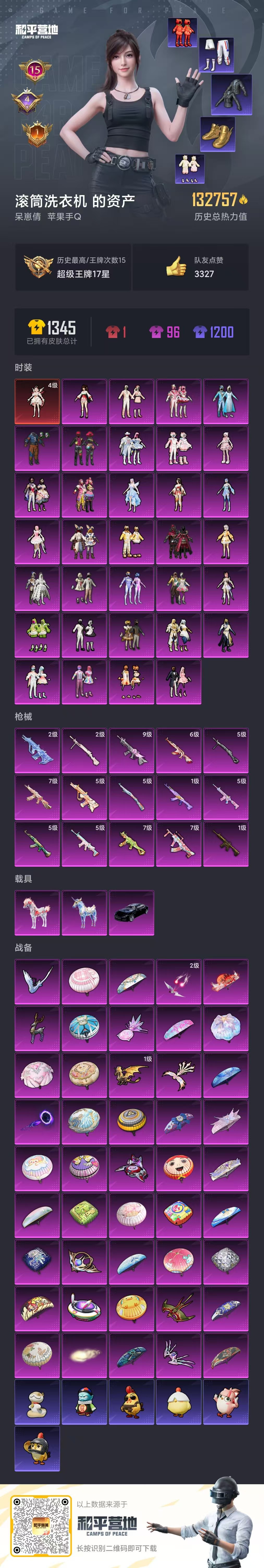 【和平精英】【txhp5747】33粉装,15特效呛,3载具,历史最高段位:超级王牌17星 王牌印记15次 热力值:132757,277套装,317呛械,504装备,213战备;套装:暮色玫影-艾丽娅,套装-怪诞乔克,套装-甜心巧克力,套装-宝贝奶油派,套装-天使彩虹糖,套装-雪国幻梦,套装-梦幻火箭,套装-蝶舞迷情,套装-缤纷油彩,套装-放客神游,套装-馨动时刻,套装-独舞天鹅,套装-冰霜白皇,套装-童趣迷兔,套装-炙焰红王,套装-蜜桃特工,套装-恐龙拽拽,套装-橘柚倾心,套装-暖熊萌萌,套装-甜梦小狐,套装-冰川幽秘,套装-旋转彩虹,套装-黄族统领,角色-小可学妹,角色-呆萌星弥,套装-第五大道,套装-天星战神,角色-圣堂之誓,角色-美雪,角色-星梦奇缘,时空协奏·和音,角色-狂花道·不知火舞,套装-星穹咏叹调,角色-羊梦糖心,套装-特训学院,套装-红色运动,套装-蓝色运动,套装-白色伏地魔,套装-黑色伏地魔,套装-竞技名士,套装-深蓝色名流,套装-湖蓝色名流,套装-猛禽,套装-长空猛禽,套装-漫步者,套装-竞技勇士朋克,套装-黎明保卫者,套装-雪鹰学院,套装-海岛探路者,套装-旭日情侣,套装-冷焰舞者,套装-都市猎人,套装-浪漫天命,套装-特战装甲,套装-浪漫假日,套装-青春校园,套装-活力之心,套装-甜蜜告白,套装-春日漫步,套装-龙腾端午,套装-滨海假日,套装-鹰眼刺客,套装-冰冻风暴,套装-完美偶像,套装-人气偶像,套装-幻影武者,套装-街头潮人,套装-蓝彩潮人,套装-千禧之恋,套装-怒火燎原,套装-魅力单车,套装-绮丽涂鸦,套装-狂战萌兔,套装-狂沙舞者,套装-荣耀,套装-派对舞王,套装-极地朋克,套装-幻世战舞者,套装-血色贵族,套装-暗影哥特,套装-弄潮海豚,套装-迅捷狂鲨,套装-甜蜜熊情侣,套装-青涩时光,套装-缤纷果语,套装-滨海厨神,套装-alan walker,套装-龙魂突击队,套装-海上生明月,套装-麻辣教官,套装-黑夜传说,套装-破蛋小黄鸡,套装-浪漫波比,套装-金鼠迎春,套装-北国孤狼,套装-仓鼠灰灰,套装-淡雅花蕊,套装-玲珑飞花,套装-鹤鸣,套装-霓虹街区,套装-纯白誓言,套装-激萌罗小黑,套装-潮萌小黄鸭,套装-白熊同盟,套装-萌黄之夏,套装-夏日音浪,套装-探宝勇士,套装-牛气满满,套装-萌趣颜团子,套装-特种颜团子,套装-战术大师,套装-牛气冲天,套装-ss18特训,套装-耀粉歌者,套装-飞行日记,套装-曼妙人鱼,套装-热情海星,套装-纯真浪花,角色-赛罗奥特曼,角色-艾克斯奥特曼,套装-蝎王蛇后,套装-ss16特训,套装-暴风机械师,套装-时空追击者,套装-星辰守护者,套装-暗夜傀儡,角色-英勇保护者,套装-ss17特训,套装-瑞龙福将,套装-团圆交子,套装-冰爽风暴,套装-炫光向阳,套装-福星高照,套装-豚鼠丹丹,套装-雪兔飞飞,套装-虎虎生威吉莉,套装-缤纷焰火,套装-异彩先驱,套装-霓虹极客,套装-魔力冰咖,套装-空投萌叽,套装-ss19特训,套装-兔兔白日梦,套装-飞驰魅影,套装-音速流光,套装-炫蓝之夏,套装-ss20特训,套装-粉团憨憨,套装-甜心亚梦,套装-虚音幻奏,套装-ss21特训,套装-暖心熊熊,套装-萌趣咩咩,套装-娇憨猪猪,套装-红熊茄茄,套装-俏皮奶喵,套装-梦幻奶油,套装-酸甜橘柚,套装-奶油香芋,套装-樱桃黑巧,套装-玉兔迎春,套装-ss22特训,套装-田园牧歌,套装-轻风白浪,套装-星夜迷魅,套装-琉璃情波,套装-白啸长虹,套装-苍岚星,套装-光之冒险,套装-绯格组合,套装-ss23特训,套装-莱茵河畔,套装-香榭午后,套装-甜梦熊熊,套装-神气柴柴,套装-懵萌河马,套装-糯粉咩咩,套装-王牌教练,套装-柠萌假日,套装-青玉碎影,套装-ss24特训,套装-荧惑魅影,套装-龟仙人,套装-涂山之恋,套装-ss25特训,套装-金戈铁马,套装-惊鸿侠骨,套装-锦衣飞扬,套装-诗意画廊,套装-奶油庭院,套装-晨曦薄雾,套装-绝对偶像,套装-果汁能量,套装-龙的传人,套装-冰河战士,套装-ss26特训,套装-快闪甜心,套装-春光漫游,套装-空岛之星,套装-童真绒兔,套装-萌趣绒叽,套装-贝斯之夜,套装-焰鹰斗篷,套装-幽夜迷踪,套装-幻羽潜行,套装-ss27特训,套装-恋语绒绒,套装-老实芭蕉,套装-ss28特训,角色-蝶吟花词,套装-铁血战翼,玩偶服-卖崽青蛙,角色-迎夏光舞,角色-极地流光,角色-粉雾星云,角色-银尘,套装-街头风暴,套装-海盐绵绵冰,套装-蝶变,套装-甜酷狙击,套装-雪夜云雾,套装-小熊娃娃,套装-ss29特训,套装-雏菊兔兔,套装-萝兰蝴蝶,角色-绯色魅影,角色-紫俏灵猫,套装-异域银装,角色-都市丽猫,套装-星途旅人,套装-ss30特训,角色-夜瞳黯灵,角色-绛羽幽主,套装-暗夜风云,套装-蓝调潮影,套装-纯白跃动,套装-小鸟芋圆,套装-ss31特训,套装-鱼渊荷华,套装-燕燕于飞,套装-智谋强哥,套装-晶灵使者,套装-紫幽梦,套装-粉恋花,套装-晶辉守护,套装-ss33特训,套装-云朵鹅,套装-巳巳如意,套装-ss32特训,套装-彩虹兔,套装-熊抱抱,套装-蓝冰羽,套装-顶瓜瓜,套装-雪绒豹,套装-大橘大利,套装-星渊小夜曲,套装-炫彩糖果,套装-星影赞美诗,套装-元气之梦,套装-ss34特训,套装-擎苍青焰,套装-朱霞炽焰,套装-游乐,套装-凌霄紫焰,套装-薄荷星砂,套装-ss35特训,套装-午间小调,套装-秘语星愿,套装-风迹短诗,套装-琴音绮想,套装-粉黛兰香,套装-画境星梦,套装-阳光菠萝,套装-ss36特训,角色-紫霄电母,套装-雪国风尚,套装-萌鸡速递;呛皮:7级groza-旋转彩虹,groza-影袭,groza-春暖花开,groza-异彩先驱,groza-恐龙拽拽,groza-田园牧歌,groza-懵萌河马,groza-海盐豹豹,groza-荧海星豚,groza-暮色玫影,mk47-乌木金纹,mk47-炫光之旅,mk47-风迹短诗,q-神秘黑猫,q-飞驰魅影