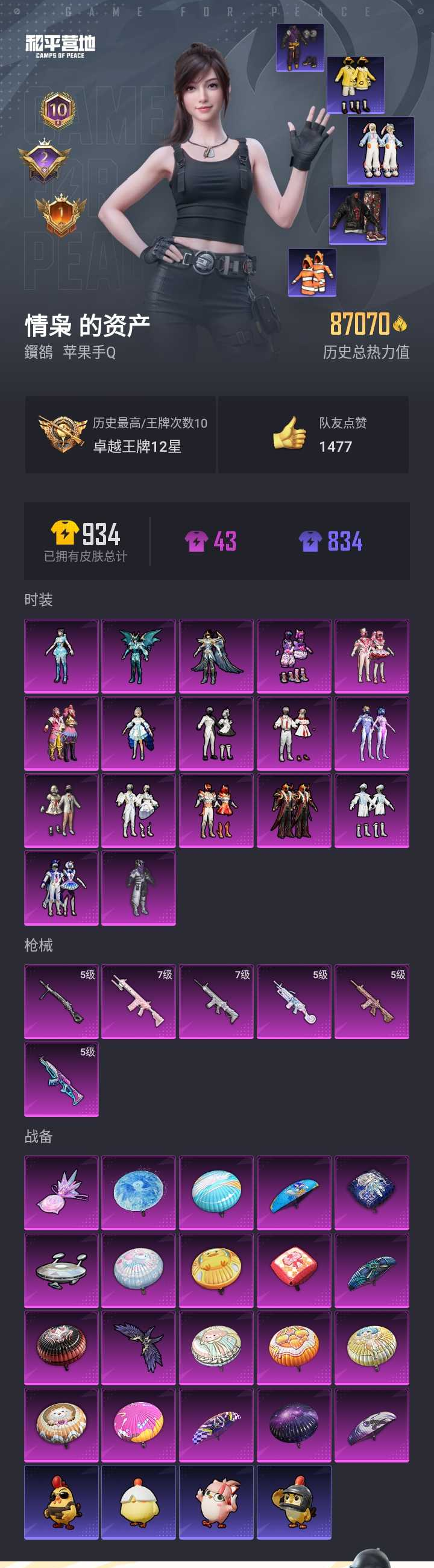 【和平精英】【lyhp19545】8w7热力值 17粉装6特效呛 洛天依 梦幻火箭 幻影战神 缤纷油彩 赤蝎幽灵 小丑鱼 小黄鸭 忍者信条 5级恋语m4 满级纯梦死噶 5级光华ak 17粉装,6特效呛,0载具,历史最高段位:卓越王牌12星 王牌印记10次 热力值:87070,205套装,255呛械,294装备,151战备;套装:套装-幻影战神,套装-宝贝奶油派,套装-梦幻火箭,套装-缤纷油彩,套装-馨动时刻,套装-星空之魅,角色-洛天依,套装-蓝莓炮弹,套装-海盐物语,套装-炙焰牛王,套装-霞光圣骑,套装-寒光使者,套装-冰川幽秘,套装-冰川红玫,角色-异瞳寒姬,角色-天龙座 紫龙,角色-天马座 星矢,套装-黑色伏地魔,套装-骑行爱好者,套装-竞技名士,套装-长空猛禽,套装-竞技勇士朋克,套装-六六大吉,套装-赤蝎幽灵,套装-冷焰舞者,套装-灼焰舞者,套装-刚毅裁决者,套装-特战装甲,套装-战地菁英,套装-浪漫假日,套装-贵族骑装,套装-战地督导,套装-特殊使命,套装-灰色格斗者,套装-甜蜜告白,套装-滨海假日,套装-沙漠毒蛇,套装-苍穹猎鹰,套装-人气偶像,套装-特战英豪,套装-街头潮人,套装-蓝彩潮人,套装-神秘领域,套装-怒火燎原,套装-决胜时刻,套装-魅力单车,套装-绮丽涂鸦,套装-雪山征服者,套装-坚韧舞者,套装-夜莺强袭者,套装-都市漫游者,套装-野性战心,套装-ss1特训,套装-都市魅力,套装-荣耀,套装-沙漠兵团,套装-丛林猎人,套装-ss2特训,套装-派对绅士,套装-雪山精英,套装-酷潮明星,套装-极地朋克,套装-红镰战舞者,套装-幻世战舞者,套装-甜蜜菠萝,套装-冰凉西瓜,套装-半糖蓝莓,套装-金耀舞者,套装-蓝调潮人,套装-弄潮海豚,套装-迅捷狂鲨,套装-恒星战甲,套装-午夜朋克,套装-甜蜜熊情侣,套装-青涩时光,套装-缤纷果语,套装-滨海厨神,套装-特种空勤,套装-和平特警,套装-风暴特警,套装-冰川特警,套装-幻影公爵,套装-忍者信条,套装-格斗先锋,套装-海上生明月,套装-麻辣教官,套装-ss3特训,套装-小丑鱼,套装-ss4特训,套装-粉红小猪,套装-破蛋小黄鸡,套装-疯狂小兔子,套装-ss5特训,套装-圣诞大吉,套装-冰原使者,套装-凛冬战士,套装-金鼠迎春,套装-北国孤狼,套装-ss6特训,套装-玲珑飞花,套装-跃动心情,套装-ss7特训,套装-核芯基因,套装-精神漫游,套装-银河圣歌,套装-闪耀星光,套装-鹤鸣,套装-霓虹街区,套装-潮萌小黄鸭,套装-大橘为重,套装-白熊同盟,套装-萌黄之夏,套装-夏日音浪,套装-神秘舞者,套装-丝绸行者,套装-探宝勇士,套装-蓝甜马卡龙,套装-牛气满满,套装-萌趣颜团子,套装-牛气冲天,套装-ss18特训,套装-耀粉歌者,套装-ss14特训,套装-电音精灵,套装-吉莉礼服,套装-快乐星愿,套装-ss15特训,套装-ss16特训,套装-ss17特训,套装-福星高照,套装-遗落祭司,套装-豚鼠丹丹,套装-雪兔飞飞,套装-缤纷焰火,套装-异彩先驱,套装-霓虹极客,套装-魔力冰咖,套装-空投萌叽,套装-ss19特训,套装-兔兔白日梦,套装-浓情蜜辣,套装-极速竞梦,套装-飞驰魅影,套装-音速流光,套装-炫蓝之夏,套装-ss20特训,套装-浑天鲲鹏,套装-粉团憨憨,套装-奶芙汪汪,套装-恶魔喵喵,套装-猎梦纪元,套装-甜心亚梦,套装-虚音幻奏,套装-圣诞惊喜,套装-ss21特训,套装-萌趣咩咩,套装-娇憨猪猪,套装-灵幻魔术师,套装-梦幻奶油,套装-樱桃黑巧,套装-玉兔迎春,套装-ss22特训,套装-田园牧歌,套装-轻风白浪,套装-琉璃情波,套装-绯格组合,套装-ss23特训,套装-白兰地假日,套装-甜梦熊熊,套装-神气柴柴,套装-懵萌河马,套装-灵蜜圈圈,套装-妙红点点,套装-幻彩翩翩,套装-王牌教练,套装-柠萌假日,套装-ss24特训,套装-荧惑魅影,套装-龟仙人,套装-涂山之恋,套装-ss25特训,套装-ss26特训,套装-空岛之星,玩偶服-菲菲,套装-ss27特训,套装-老实芭蕉,套装-海盐绵绵冰,套装-异域银装,套装-紫幽梦,套装-ss33特训,套装-ss32特训,套装-蓝冰羽,套装-顶瓜瓜,套装-星影赞美诗,玩偶服-懒羊羊,套装-元气之梦,套装-ss34特训,套装-擎苍青焰,套装-朱霞炽焰,套装-凌霄紫焰,套装-薄荷星砂,套装-ss35特训,套装-粉黛兰香,套装-ss36特训,套装-萌鸡速递;呛皮:q-银河战甲,q-神秘黑猫,q-彩虹符号,q-飞驰魅影,q-未来歌姬,groza-生命誓言,groza-雷霆特警,groza-黑色刀锋,groza-彩虹符号,groza-异彩先驱,groza-田园牧歌,groza-懵萌河马,m762-奇异狩猎者,m762-天降萌叽,m762-乌木金纹,5级akm-梦之光华,akm-灼热熔岩,akm-冰凉西瓜,akm-奇异狩猎者,akm-破晓战魂,akm-星之信仰,akm-霓虹街区,akm-涂鸦街区,akm-彩虹符号,akm-萌趣颜团子,akm-霓彩脉冲,akm-乌木金纹,7级scar-l-纯梦嫁纱,scar-l-生命誓言,scar-l-黄金龙骨,scar-l-雷霆特警,scar-l-炫彩节奏,scar-l-彩虹符号,scar-l-兔兔白日梦,scar-l-玉兔迎春,scar-l-海盐豹豹,scar-l-乌木金纹,m16a4-蓝色火焰,m16a4-生命誓言,m16a4-红色方程式,m16a4-甜心亚梦,m16a4-幻世战舞者,m16a4-乌木金纹,5级m416-心之恋语,m416-夜灯,m416-蓝色火焰,m416-红色方程式,m416-紫翼圣骑,m416-糯团青竹,m416-乌木金纹,g36c-懵萌河马,g36c-乌木金纹,ac-val-甜心亚梦,ac-val-乌木金纹,ac-val-彩虹甜喵,ac-val-天降萌叽,mk47-洛神天依,mk47-乌木金纹,mk47-妙红点点,mk47-炫光之旅,蜜獾-娇憨猪猪,蜜獾-绯穹魔姬,蜜獾-乌木金纹,aug-幻影战神,aug-耀粉歌者,aug-圣光天使,aug-天降萌叽,aug-异域银装,aug-乌木金纹,famas-霓彩脉冲,famas-乌木金纹,arx-凌霄紫焰,kar98k-红色方程式,kar98k-王子的夏天,kar98k-幻影战神,kar98k-炫彩节奏,kar98k-飞驰魅影,kar98k-乌木金纹,m24-赤寒幽灵,m24-奇异狩猎者,m24-冰封烈焰,m24-炫彩节奏,m24-妙趣可丽,m2