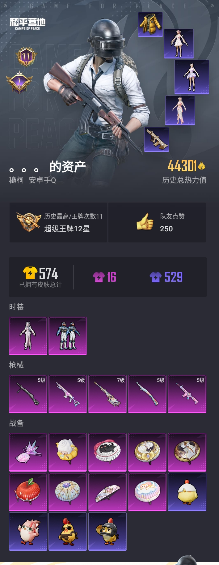 【和平精英】【lyhp19538】地铁满天赋 2粉装5满级特效呛 冷漠罗丽 未来领航员 满级妹控 满级电玩m4 2粉装,5特效呛,0载具,历史最高段位:超级王牌12星 王牌印记11次 热力值:44301,103套装,161呛械,192装备,101战备;套装:套装-未来领航者,角色-冷漠罗丽,套装-黄色运动,套装-白色伏地魔,套装-黑色伏地魔,套装-竞技名士,套装-深蓝色名流,套装-湖蓝色名流,套装-猛禽,套装-长空猛禽,套装-海岛探路者,套装-冷焰舞者,套装-龙腾端午,套装-幻影武者,套装-魅力单车,套装-耀眼新星,套装-都市漫游者,套装-野性战心,套装-破晓战魂,套装-荣耀,套装-酷潮明星,套装-幻世战舞者,套装-青涩时光,套装-缤纷果语,套装-滨海厨神,套装-龙魂突击队,套装-元素星魂,套装-麻辣教官,套装-破蛋小黄鸡,套装-疯狂小兔子,套装-鹤鸣,套装-霓虹街区,套装-萌黄之夏,套装-牛气满满,套装-白糯汤圆,套装-战术大师,套装-牛气冲天,套装-飞行日记,套装-ss21特训,套装-玉兔迎春,套装-ss22特训,套装-和煦暖阳,套装-田园牧歌,套装-轻风白浪,套装-光之冒险,套装-绯格组合,套装-ss23特训,套装-莱茵河畔,套装-神气柴柴,套装-懵萌河马,套装-妙红点点,套装-幻彩翩翩,套装-王牌教练,套装-柠萌假日,套装-ss24特训,套装-龟仙人,套装-涂山之恋,套装-ss25特训,套装-香桃花海,套装-龙的传人,套装-冰河战士,套装-ss26特训,套装-空岛之星,套装-焰鹰斗篷,套装-幽夜迷踪,套装-幻羽潜行,套装-ss27特训,套装-老实芭蕉,套装-ss28特训,角色-蝶吟花词,套装-街头风暴,套装-海盐绵绵冰,套装-蝶变,套装-粉日山川,套装-ss29特训,套装-异域银装,角色-都市丽猫,套装-星途旅人,套装-ss30特训,套装-ss31特训,套装-鱼渊荷华,套装-燕燕于飞,角色-瑰梦爱神,套装-紫幽梦,套装-粉恋花,套装-ss33特训,套装-云朵鹅,套装-巳巳如意,套装-ss32特训,套装-蓝冰羽,套装-顶瓜瓜,套装-雪绒豹,套装-大橘大利,套装-霓虹热舞,套装-元气之梦,套装-ss34特训,套装-朱霞炽焰,套装-凌霄紫焰,套装-薄荷星砂,套装-ss35特训,套装-ss36特训,套装-雪国风尚,套装-萌鸡速递;呛皮:groza-彩虹符号,groza-田园牧歌,groza-懵萌河马,groza-海盐豹豹,scar-l-红色方程式,scar-l-炫彩节奏,scar-l-玉兔迎春,scar-l-星途旅人,scar-l-海盐豹豹,akm-破晓战魂,akm-彩虹符号,akm-龙的传人,akm-霓彩脉冲,ac-val-乌木金纹,ac-val-天降萌叽,蜜獾-天降萌叽,蜜獾-乌木金纹,arx-凌霄紫焰,aug-耀粉歌者,aug-天降萌叽,aug-辉耀战甲,aug-异域银装,famas-霓彩脉冲,famas-乌木金纹,5级m416-电玩时刻,m416-蓝色火焰,m416-红色方程式,m416-糯团青竹,mk47-乌木金纹,mk47-妙红点点,m16a4-蓝色火焰,m16a4-红色方程式,m16a4-幻世战舞者,m16a4-冰河战士,g36c-懵萌河马,m762-彩虹符号,m762-天降萌叽,m762-云朵鹅,m24-幻彩电音,m24-时光之吻,7级amr-智耀战神,amr-妙红点点,amr-乌木金纹,莫辛纳甘-乌木金纹,莫辛纳甘-懵萌河马,莫辛纳甘-蜜语绒猫,svd-云朵鹅,svd-霓彩脉冲,awm-海螺星光,awm-天降萌叽,awm-焰鹰斗篷,5级kar98k-巳巳如意,kar98k-红色方程式,kar98k-王子的夏天,kar98k-彩虹符号,m200-乌木金纹,win94-乌木金纹,mini14-耀粉歌者,mini14-旋转彩虹,mini14-涂山之恋,mini14-香桃花海,mini14-绯穹魔姬,sks-炫彩节奏,sks-糯团青竹,mk20-h-星途旅人,mk20-h-狂鲨锋刃,mk20-h-乌木金纹,slr-彩虹符号,slr-金丰海韵,slr-霓彩脉冲,5级mk14-甜梦熊击,mk14-乌木金纹,mk14-冰河战士,mk14-紫幽梦,mk14-薄荷星砂,vss-田园牧歌,vss-香桃花海,m417-玩趣呆呆,mk12-乌木金纹,uzi-红色方程式,uzi-天降萌叽,uzi-冰河战士,uzi-啾咪啾咪,uzi-月影灵韵,uzi-炫彩糖果,vect-彩虹符号,vect-田园牧歌,vect-焰鹰斗篷,vect-燕燕于飞,野牛-燕燕于飞,p90-玩趣呆呆,p90-巳巳如意,p90-乌木金纹,ump45-蓝色火焰,ump45-生命誓言,ump45-涂山之恋,ump45-海盐豹豹,汤姆逊-耀粉歌者,汤姆逊-炫彩节奏,汤姆逊-暗夜鎏金,汤姆逊-智耀战神,js9-凌霄紫焰,aks-74u-乌木金纹,mp5k-乌木金纹,s1897-炫彩节奏,s1897-紫幽梦,s1897-糯团青竹,s686-红色方程式,s686-彩虹符号,s686-巳巳如意,s12k-破晓战魂,s12k-玩趣呆呆,s12k-智耀战神,s12k-霓彩脉冲,dbs-歌者泠鸢,dbs-彩虹符号,dbs-焰鹰斗篷,dbs-月影灵韵,dbs-乌木金纹,spas-12-田园牧歌,spas-12-燕燕于飞,spas-12-狂鲨锋刃,spas-12-云朵鹅,spas-12-乌木金纹,m249-破晓战魂,m249-糯团青竹,m249-妙红点点,mg3-幻世战舞者,mg3-乌木金纹,mg3-妙红点点,mg3-霓彩脉冲,5级dp-28-豹影疾电,dp-28-彩虹符号,dp-28-焰鹰斗篷,pkm-懵萌河马,pkm-紫幽梦,mg-36-凌霄紫焰,沙墨之鹦-云朵鹅,p92-紫幽梦,p92-凌霄紫焰,tmp-9-江南烟雨,蝎式手呛-燕燕于飞,信号呛-异瞳寒姬,平底锅-田园牧歌,平底锅-光之冒险,平底锅-妙红点点,平底锅-懵萌河马,平底锅-空岛之星,平底锅-焰鹰斗篷,平底锅-紫幽梦,平底锅-属我最6,平底锅-凌霄紫焰,大砍刀-云朵鹅,十子怒-燕燕于飞,十子怒-异域银装,破片手留单-呆爆全场,破片手留单-星途旅人,破片手留单-海盐豹豹,破片手留单-拽到爆炸,破片手留单-巳巳如意,盐雾蛋-冰氧夏日;降落伞:炫彩糖果飞行器,光之冒险尾迹,空岛之星尾迹,异域银装飞行器,顶峰精英尾迹,破刃行动尾迹; 详情看图