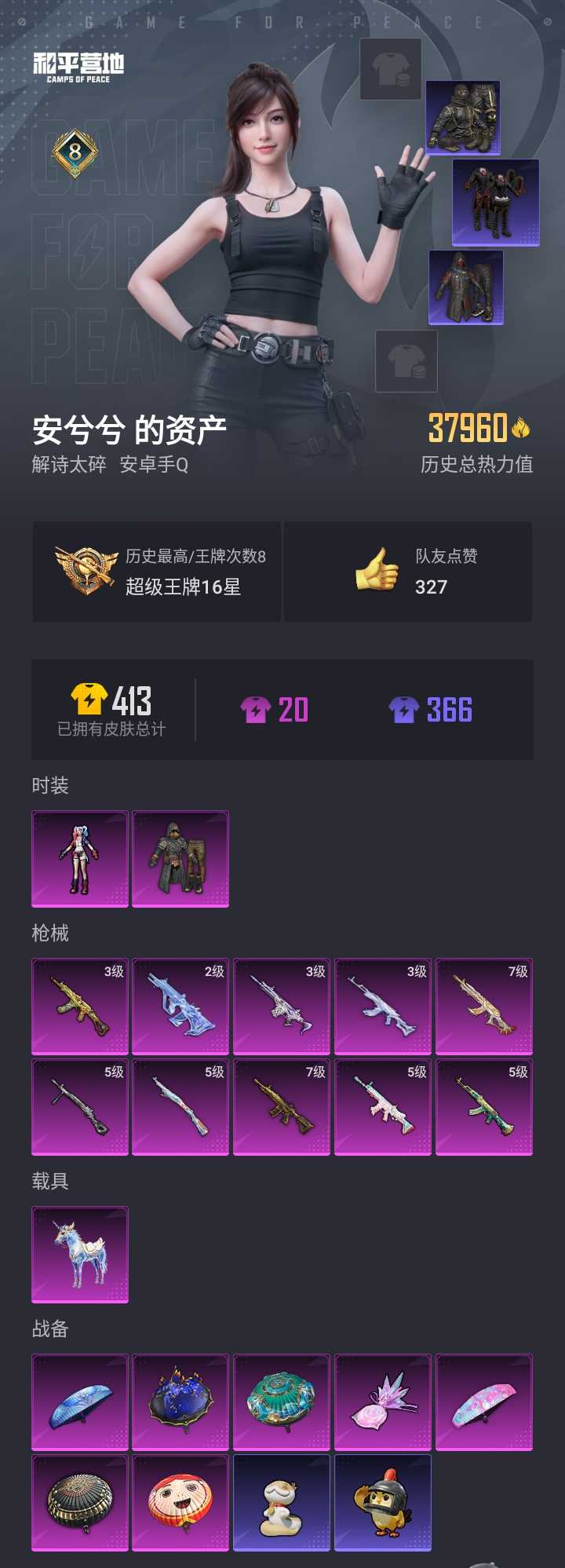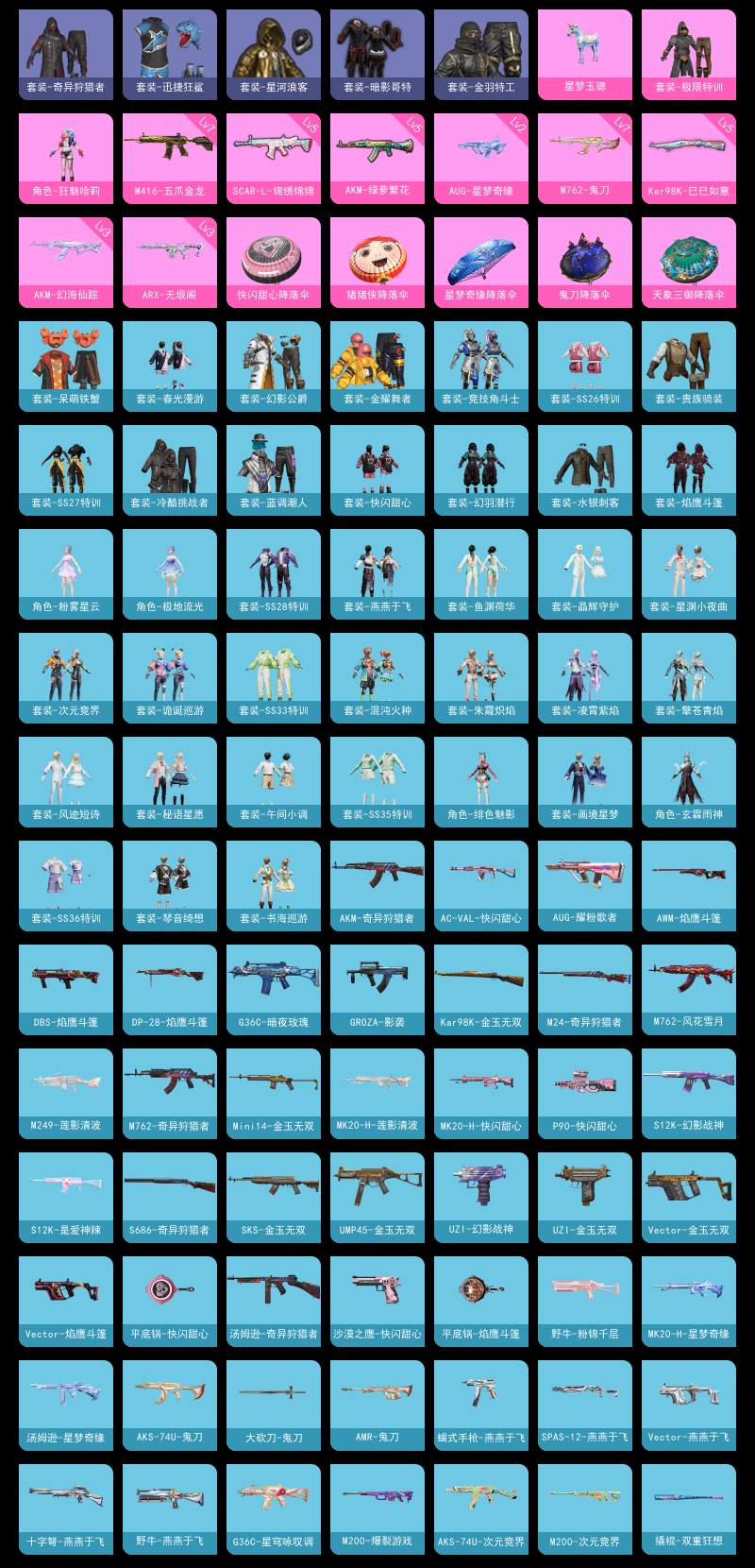 【和平精英】【lyhp19868】2粉装,10特效呛,1载具,历史最高段位:超级王牌16星 王牌印记8次 热力值:37960,77套装,139呛械,129装备,54战备;套装:套装-极限特训,角色-狂魅哈莉,套装-海岛探路者,套装-灼焰舞者,套装-水银刺客,套装-贵族骑装,套装-冷酷挑战者,套装-幻影武者,套装-金羽特工,套装-幻世战舞者,套装-奇异狩猎者,套装-金耀舞者,套装-蓝调潮人,套装-暗影哥特,套装-迅捷狂鲨,套装-呆萌铁蟹,套装-星河浪客,套装-幻影公爵,套装-鹤鸣,套装-霓虹街区,套装-白熊同盟,套装-战术大师,套装-竞技角斗士,套装-绯格组合,套装-柠萌假日,套装-潮酷猛小鳄,套装-龙的传人,套装-ss26特训,套装-快闪甜心,套装-春光漫游,套装-空岛之星,套装-焰鹰斗篷,套装-幻羽潜行,套装-ss27特训,套装-恋语绒绒,套装-老实芭蕉,套装-ss28特训,角色-极地流光,角色-粉雾星云,角色-绯色魅影,套装-异域银装,套装-星途旅人,套装-ss30特训,套装-诡诞巡游,套装-ss31特训,套装-鱼渊荷华,套装-燕燕于飞,角色-风玲,套装-晶辉守护,套装-ss33特训,套装-巳巳如意,套装-ss32特训,套装-顶瓜瓜,套装-混沌火种,套装-大橘大利,套装-星渊小夜曲,套装-炫彩糖果,套装-元气之梦,套装-ss34特训,套装-次元竞界,套装-擎苍青焰,套装-朱霞炽焰,套装-凌霄紫焰,套装-薄荷星砂,套装-ss35特训,套装-午间小调,套装-秘语星愿,套装-风迹短诗,套装-琴音绮想,套装-粉黛兰香,套装-画境星梦,套装-书海巡游,套装-错位像素,角色-玄霖雨神,套装-ss36特训,角色-霜刃之御,套装-萌鸡速递;呛皮:5级akm-绿萝繁花,3级akm-幻海仙踪,akm-奇异狩猎者,akm-破晓战魂,akm-涂鸦街区,akm-霓彩脉冲,ac-val-天降萌叽,ac-val-快闪甜心,famas-霓彩脉冲,famas-乌木金纹,groza-影袭,groza-海盐豹豹,m16a4-幻世战舞者,m16a4-荧光绘影,g36c-暗夜玫瑰,g36c-星穹咏叹调,7级m762-鬼刀,m762-奇异狩猎者,m762-风花雪月,m762-天降萌叽,3级arx-无垠阁,arx-凌霄紫焰,2级aug-星梦奇缘,aug-耀粉歌者,aug-异域银装,aug-冰晶雪宝,7级m416-五爪金龙,m416-糯团青竹,m416-错位像素,m416-炽阳奇点,5级scar-l-锦绣绵绵,scar-l-炫彩节奏,scar-l-彩虹符号,scar-l-玉兔迎春,scar-l-次元竞界,mk47-风迹短诗,q-彩虹符号,ace32-画境星梦,蜜獾-天降萌叽,蜜獾-风迹短诗,蜜獾-乌木金纹,m24-奇异狩猎者,m24-天降萌叽,5级kar98k-巳巳如意,kar98k-金玉无双,kar98k-顶峰精英,m200-爆裂游戏,m200-次元竞界,m200-乌木金纹,amr-鬼刀,amr-乌木金纹,莫辛纳甘-风迹短诗,awm-焰鹰斗篷,awm-绿洲时空,win94-乌木金纹,m417-玩趣呆呆,m1加兰德-画境星梦,mk20-h-莲影清波,mk20-h-快闪甜心,mk20-h-星梦奇缘,mk20-h-狂鲨锋刃,mk20-h-乌木金纹,mk12-风迹短诗,mk12-乌木金纹,sks-金玉无双,sks-炫彩节奏,mk14-紫晶流影,slr-天象三御,slr-霓彩脉冲,mini14-金玉无双,mini14-香桃花海,vss-香桃花海,汤姆逊-奇异狩猎者,汤姆逊-天降萌叽,汤姆逊-星梦奇缘,汤姆逊-错位像素,3级aks-74u-森灵之息,aks-74u-鬼刀,aks-74u-粉粉喵呜,aks-74u-次元竞界,aks-74u-乌木金纹,uzi-金玉无双,uzi-幻影战神,uzi-天降萌叽,uzi-冰河战士,uzi-啾咪啾咪,uzi-炫彩糖果,野牛-粉锦千层,野牛-燕燕于飞,js9-凌霄紫焰,p90-快闪甜心,p90-乌木金纹,ump45-金玉无双,mp5k-画境星梦,mp5k-乌木金纹,vect-金玉无双,vect-焰鹰斗篷,vect-燕燕于飞,s12k-幻影战神,s12k-是爱神辣,s12k-霓彩脉冲,aa12-g-画境星梦,dbs-焰鹰斗篷,dbs-风迹短诗,dbs-乌木金纹,spas-12-燕燕于飞,spas-12-狂鲨锋刃,spas-12-乌木金纹,s686-奇异狩猎者,m249-彩虹符号,m249-莲影清波,m249-冰晶雪宝,5级dp-28-豹影疾电,dp-28-彩虹符号,dp-28-焰鹰斗篷,mg3-幻世战舞者,mg3-霓彩脉冲,mg-36-凌霄紫焰,mg-36-薄荷星砂,pkm-啾咪啾咪,p92-凌霄紫焰,f57-魔童闹海 敖闰,沙墨之鹦-快闪甜心,信号呛-异瞳寒姬,蝎式手呛-燕燕于飞,大砍刀-鬼刀,平底锅-快闪甜心,平底锅-空岛之星,平底锅-焰鹰斗篷,平底锅-凌霄紫焰,平底锅-画境星梦,撬棍-双重狂想,十子怒-异瞳寒姬,十子怒-燕燕于飞,十子怒-异域银装,铝热弹-炫彩糖果,破片手留单-呆爆全场,破片手留单-星途旅人,破片手留单-拽到爆炸;载具:星梦玉骢;降落伞:炫彩糖果飞行器,空岛之星尾迹,异域银装飞行器,顶峰精英尾迹,狂鲨锋刃飞行器,鸡智如我飞行器; 详情看图2粉装10特效呛1载具 极限特训 狂魅哈莉 暗影哥特 奇异狩猎者 3级akm幻海仙踪 满级m762鬼刀 aug星梦奇缘 满级m4五爪金龙 星空马
