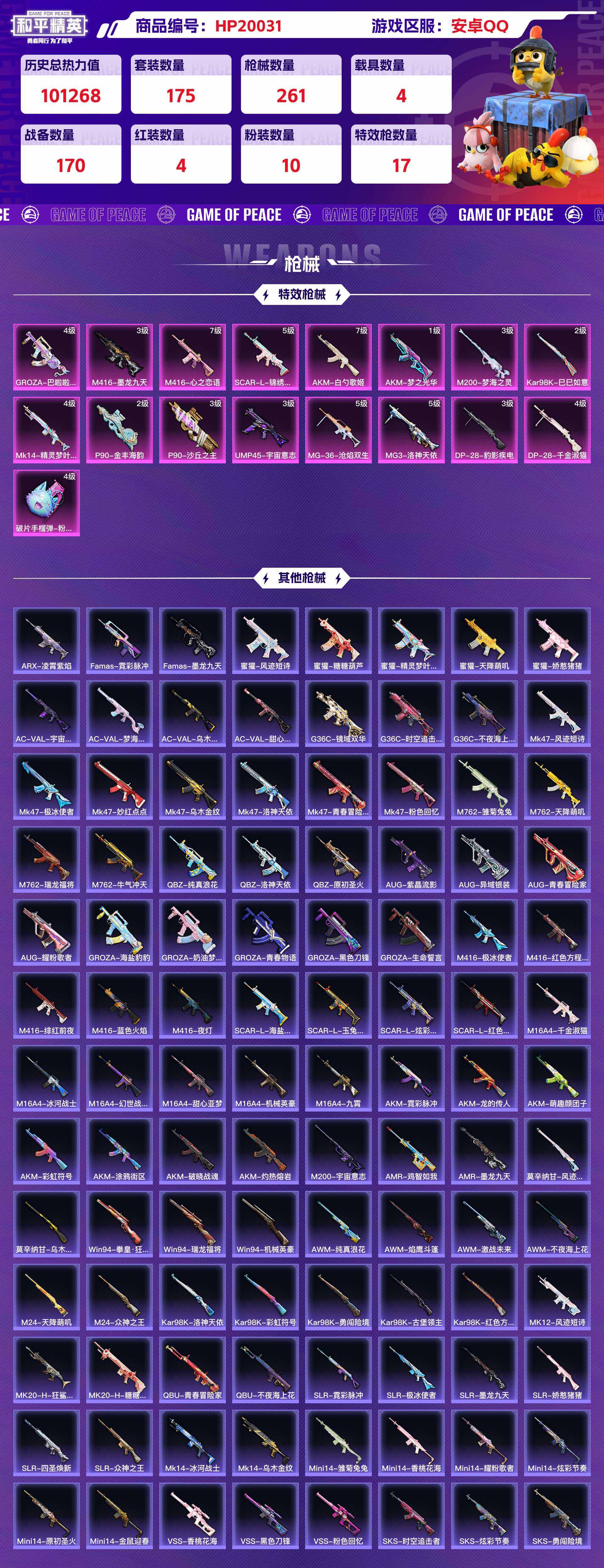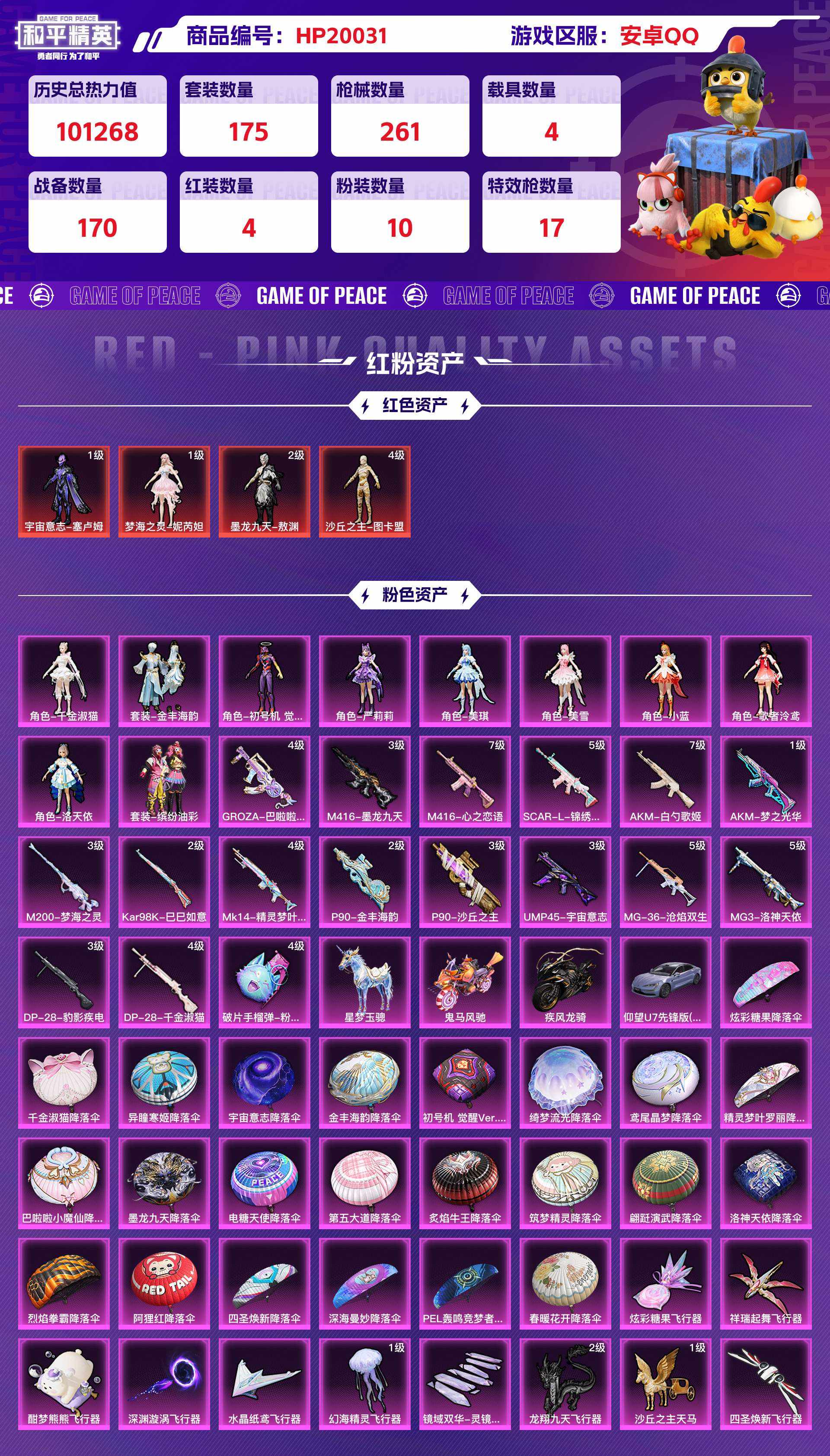 hp20031|精品多红装和平号低价出可二次安卓qq 四级图卡盟 2级墨龙九天敖渊 1级赛卢姆 1级梦海之灵-妮芮妲 10粉装美雪小蓝千金淑猫金丰海韵严莉莉美琪洛天依单螳螂猪妹 17粉呛(m200-梦海之灵kar98k-巳巳如意mk14-精灵梦叶.p90-金丰海韵p90-沙丘之主ump45-宇宙意志mg-36-沧焰双生)2个七级(m416-心之恋语akm-白勺歌姬) 4载具