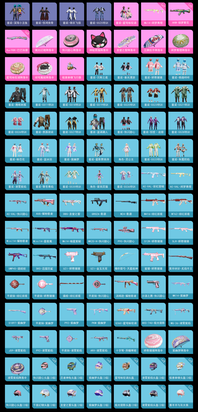 【和平精英】【lyhp20360】1粉装,4特效呛,0载具,历史最高段位:卓越王牌22星 王牌印记8次 热力值:40587,125套装,150呛械,169装备,83战备;套装:套装-星穹咏叹调,套装-特训学院,套装-猎鹰,套装-青年教官,套装-橘黑制服,套装-红色运动,套装-黄色运动,套装-蓝色运动,套装-黄色伏地魔,套装-白色伏地魔,套装-黑色伏地魔,套装-骑行爱好者,套装-竞技名士,套装-深蓝色名流,套装-酒红色名流,套装-湖蓝色名流,套装-黄色名流,套装-猛禽,套装-长空猛禽,套装-海岛探路者,套装-旭日情侣,套装-六六大吉,套装-冷焰舞者,套装-特战装甲,套装-贵族骑装,套装-战地督导,套装-春日漫步,套装-鹰眼刺客,套装-完美偶像,套装-人气偶像,套装-幻影武者,套装-特战英豪,套装-蓝彩潮人,套装-魅力单车,套装-绮丽涂鸦,套装-耀眼新星,套装-竞技达人朋克,套装-野性战心,套装-超能勇士,套装-破晓战魂,套装-森林游猎者,套装-都市魅力,套装-热血青春,套装-沙漠兵团,套装-极地朋克,套装-幻世战舞者,套装-清新柠檬,套装-蓝调潮人,套装-血色贵族,套装-深海小丑鱼,套装-青涩时光,套装-缤纷果语,套装-滨海厨神,套装-龙魂突击队,套装-冰川特警,套装-麻辣教官,套装-破蛋小黄鸡,套装-军械专家,套装-霓虹街区,套装-白熊同盟,套装-探宝勇士,套装-牛气满满,套装-白糯汤圆,套装-ss11特训,套装-战术大师,套装-牛气冲天,套装-ss18特训,套装-ss19特训,套装-ss20特训,套装-ss21特训,套装-萌趣咩咩,套装-娇憨猪猪,套装-玉兔迎春,套装-绯格组合,套装-ss23特训,套装-王牌教练,套装-柠萌假日,套装-ss25特训,套装-惊鸿侠骨,套装-锦衣飞扬,套装-龙的传人,套装-冰河战士,套装-ss26特训,套装-快闪甜心,套装-春光漫游,套装-空岛之星,套装-贝斯之夜,套装-ss27特训,套装-ss28特训,套装-街头风暴,套装-海盐绵绵冰,套装-蝶变,套装-创世·追猎,角色-紫俏灵猫,角色-无面战甲,套装-异域银装,套装-星途旅人,套装-ss30特训,套装-ss31特训,套装-智谋强哥,套装-紫幽梦,套装-粉恋花,套装-ss33特训,套装-巳巳如意,套装-ss32特训,套装-青翼流星,套装-蓝冰羽,套装-狂鲨锋刃,套装-大橘大利,角色-灵公主,套装-炫彩糖果,套装-星影赞美诗,套装-元气之梦,套装-ss34特训,套装-擎苍青焰,套装-朱霞炽焰,套装-游乐,套装-凌霄紫焰,套装-薄荷星砂,套装-ss35特训,角色-超感刻度,角色-甜心蒙太奇,套装-ss36特训,套装-雪国风尚,套装-萌鸡速递;呛皮:m416-绯红前夜,m416-红色方程式,m416-糯团青竹,arx-凌霄紫焰,scar-l-红色方程式,scar-l-黄金龙骨,scar-l-夜灯,scar-l-玉兔迎春,scar-l-星途旅人,scar-l-海盐豹豹,5级akm-绿萝繁花,akm-霓虹街区,akm-涂鸦街区,akm-龙的传人,akm-霓彩脉冲,akm-绿洲时空,g36c-星穹咏叹调,ac-val-彩虹甜喵,ac-val-天降萌叽,ac-val-闲梦青缨,ac-val-快闪甜心,m762-绯红前夜,m762-天降萌叽,m16a4-幻世战舞者,m16a4-冰河战士,famas-霓彩脉冲,famas-乌木金纹,aug-耀粉歌者,aug-异域银装,aug-绝对恒星,aug-冰晶雪宝,aug-紫晶流影,groza-影袭,groza-无面战甲,q-彩虹符号,mk47-乌木金纹,蜜獾-娇憨猪猪,蜜獾-乌木金纹,ace32-冰晶雪宝,5级kar98k-巳巳如意,kar98k-炫彩节奏,kar98k-顶峰精英,amr-鸡智如我,amr-乌木金纹,m200-惊鸿侠骨,m200-乌木金纹,莫辛纳甘-炙焰牛王,莫辛纳甘-乌木金纹,m24-影袭,m24-乌木金纹,win94-乌木金纹,svd-霓彩脉冲,7级mk14-闲梦青缨,mk14-暗星紫秘,mk14-乌木金纹,mk14-冰河战士,mk14-紫幽梦,mk14-薄荷星砂,mk14-紫晶流影,mk12-乌木金纹,mk20-h-快闪甜心,mk20-h-狂鲨锋刃,mk20-h-乌木金纹,vss-彩虹符号,vss-香桃花海,vss-乌木金纹,slr-娇憨猪猪,slr-霓彩脉冲,m417-惊鸿侠骨,m417-玩趣呆呆,mini14-炫彩节奏,mini14-耀粉歌者,mini14-星夜魔法师,mini14-香桃花海,mini14-鸡智如我,sks-迅猛狂鲨,js9-凌霄紫焰,汤姆逊-耀粉歌者,汤姆逊-天降萌叽,ump45-夜灯,ump45-生命誓言,ump45-诡娃娃,ump45-海盐豹豹,ump45-绿洲时空,aks-74u-极光猎影,aks-74u-鸡智如我,aks-74u-乌木金纹,p90-快闪甜心,p90-玩趣呆呆,p90-巳巳如意,p90-乌木金纹,野牛-乌木金纹,vect-生命誓言,uzi-红色方程式,uzi-金玉无双,uzi-娇憨猪猪,uzi-冰河战士,uzi-啾咪啾咪,uzi-炫彩糖果,mp5k-乌木金纹,s12k-夜灯,s12k-娇憨猪猪,s12k-幻世战舞者,s12k-玩趣呆呆,s686-红色方程式,s686-生命誓言,s1897-紫幽梦,s1897-糯团青竹,spas-12-狂鲨锋刃,spas-12-乌木金纹,dbs-圣堂之誓,dbs-乌木金纹,mg-36-凌霄紫焰,mg-36-薄荷星砂,m249-破晓战魂,m249-彩虹符号,m249-糯团青竹,m249-无面战甲,pkm-紫幽梦,5级dp-28-豹影疾电,dp-28-彩虹符号,mg3-幻世战舞者,mg3-惊鸿侠骨,mg3-霓彩脉冲,p1911-无面战甲,p92-紫幽梦,p92-凌霄紫焰,沙墨之鹦-快闪甜心,平底锅-绯红前夜,平底锅-飞行日记,平底锅-娇憨猪猪,平底锅-惊鸿侠骨,平底锅-快闪甜心,平底锅-空岛之星,平底锅-紫幽梦,平底锅-属我最6,平底锅-凌霄紫焰,撬棍-绯红前夜,撬棍-幻世战舞者,铝热弹-炫彩糖果,爆炸猎弓-天星战神,爆炸猎弓-惊鸿侠骨,突击盾牌-绝对恒星,十子怒-异瞳寒姬,十子怒-异域银装,破片手留单-呆爆全场,破片手留单-星途旅人,破片手留单-海盐豹豹,破片手留单-拽到爆炸,盐雾蛋-冰氧夏日;降落伞:炫彩糖果飞行器,极意拳锋飞行器,空岛之星尾迹,异域银装飞行器,顶峰精英尾迹,狂鲨锋刃飞行器,破刃行动尾迹,鸡智如我飞行器; 详情看图2绝世 1粉装4特效呛 满级妹控 满级ak