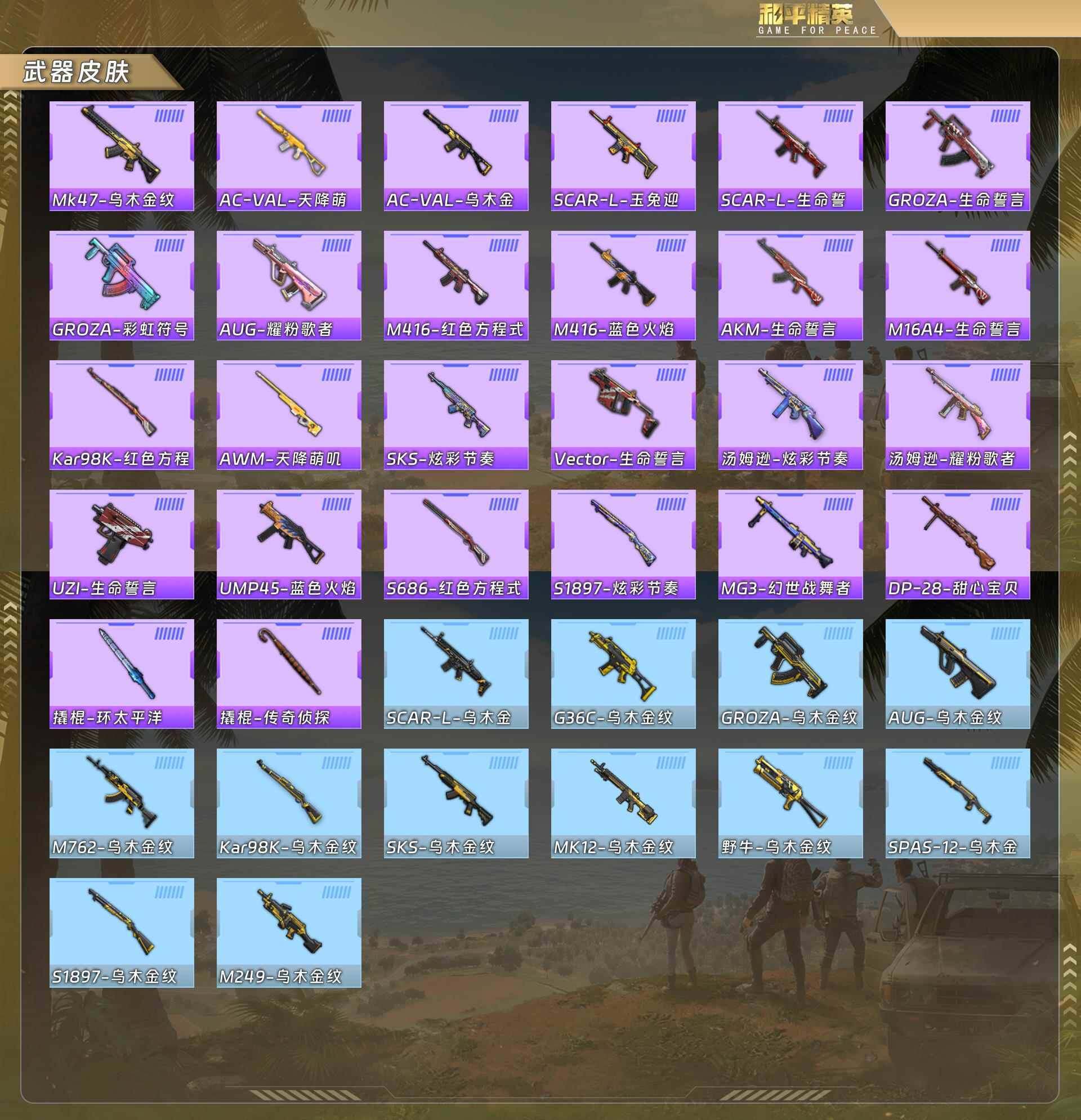 (1载具)玛莎拉蒂(夜幕蓝)没战神框hp5197-0粉色飞行器-13564热力值-1王牌印记-41套装-38呛皮 【粉色载具】:玛莎拉蒂quattropte(夜幕蓝) 【稀有套装】:套装-雪国风尚 【稀有呛皮】:akm-生命誓言,m16a4-生命誓言,scar-l-玉兔迎春,scar-l-生命誓言,m416-红色方程式,m416-蓝色火焰,groza-彩虹符号,groza-生命誓言,aug-耀粉歌者,ac-val-天降萌叽,uzi-生命誓言,ump45-蓝色火焰,vect-生命誓言,汤姆逊-炫彩节奏,汤姆逊-耀粉歌者,kar98k-红色方程式,sks-炫彩节奏,s686-红色方程式,s1897-炫彩节奏,dp-28-甜心宝贝,mg3-幻世战舞者 【其他套装】:套装-ss14特训,套装-ss15特训,套装-ss17特训,套装-ss18特训,套装-ss21特训,套装-5.56爱好者,套装-人气偶像,套装-传奇侦探,套装-北国孤狼,套装-战地督导,套装-春日漫步,套装-格斗先锋,套装-海滨突袭者,套装-深蓝色名流,套装-特训学院,套装-玉兔迎春,套装-甜蜜告白,套装-疯狂小兔子,套装-破晓战魂,套装-破蛋小黄鸡,套装-竞技勇士朋克,套装-竞技名士,套装-红色运动,套装-绯格组合,套装-耀粉歌者,套装-蓝色运动,套装-虎虎生威吉莉,套装-街头潮人,套装-长空猛禽,套装-骑行爱好者,套装-魅力单车,套装-黑色伏地魔,套装-战地菁英,套装-坚韧舞者,套装-雪山精英,套装-圣诞大吉 【稀有背包】:银河战甲背包2级 【营地id】:968238001