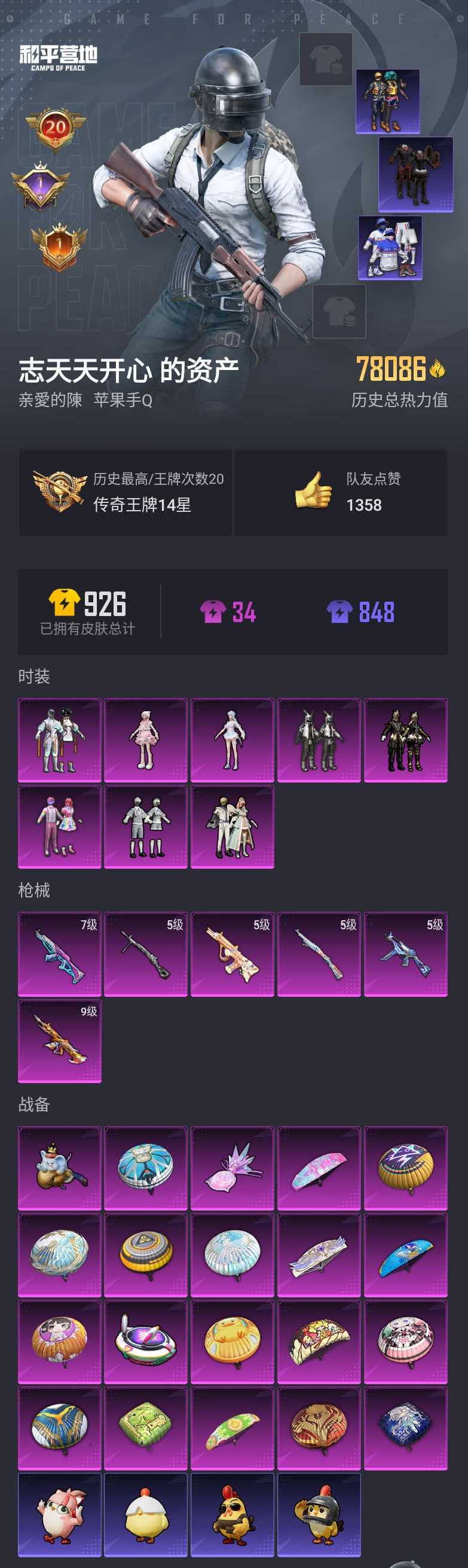 【和平精英】【lyhp20526】8粉装,6特效呛,0载具,历史最高段位:传奇王牌14星 王牌印记20次 热力值:78228,196套装,228呛械,332装备,143战备;套装:套装-数码大师,套装-天使彩虹糖,套装-智能音符,套装-筑梦精灵,套装-岚岚物语,套装-暗夜鎏金,角色-羊梦糖心,角色-荧海星豚,套装-特训学院,套装-猎鹰,套装-青年教官,套装-橘黑制服,套装-红色运动,套装-黄色运动,套装-蓝色运动,套装-黄色伏地魔,套装-白色伏地魔,套装-黑色伏地魔,套装-骑行爱好者,套装-竞技名士,套装-湖蓝色名流,套装-黄色名流,套装-猛禽,套装-野性山猫,套装-长空猛禽,套装-漫步者,套装-黎明保卫者,套装-海岛探路者,套装-旭日情侣,套装-六六大吉,套装-冷焰舞者,套装-浪漫天命,套装-特战装甲,套装-战地督导,套装-灰色格斗者,套装-滨海假日,套装-鹰眼刺客,套装-冰冻风暴,套装-冷酷挑战者,套装-完美偶像,套装-人气偶像,套装-幻影武者,套装-摇滚舞王,套装-街头潮人,套装-红潮炫舞,套装-魅力单车,套装-绮丽涂鸦,套装-坚韧舞者,套装-竞技达人朋克,套装-野性战心,套装-破晓战魂,套装-幻世保卫者,套装-都市魅力,套装-热血青春,套装-沙漠兵团,套装-酷潮明星,套装-极地朋克,套装-幻世战舞者,套装-清新柠檬,套装-金耀舞者,套装-血色贵族,套装-暗影哥特,套装-弄潮海豚,套装-呆萌铁蟹,套装-深海小丑鱼,套装-夏日倾情,套装-青涩时光,套装-缤纷果语,套装-滨海厨神,套装-alan walker,套装-龙魂突击队,套装-冰川特警,套装-元素星魂,套装-忍者信条,套装-极速红龙,套装-格斗先锋,套装-wifi精灵,套装-麻辣教官,套装-粉红小猪,套装-破蛋小黄鸡,套装-军械专家,套装-鹤鸣,套装-霓虹街区,套装-大橘为重,套装-白熊同盟,套装-萌黄之夏,套装-夏日音浪,套装-探宝勇士,套装-牛气满满,套装-战术大师,套装-牛气冲天,套装-ss18特训,套装-耀粉歌者,套装-飞行日记,套装-曼妙人鱼,套装-热情海星,套装-纯真浪花,套装-ss17特训,套装-醒狮腾龙,套装-瑞龙福将,套装-团圆交子,套装-极乐追光,套装-炫光向阳,套装-福星高照,套装-雪兔飞飞,套装-虎虎生威吉莉,套装-异彩先驱,套装-霓虹极客,套装-空投萌叽,套装-ss19特训,套装-浓情蜜辣,套装-极速竞梦,套装-飞驰魅影,套装-音速流光,套装-tt战队服,套装-炫蓝之夏,套装-ss20特训,套装-猎梦纪元,套装-甜心亚梦,套装-虚音幻奏,套装-ss21特训,套装-萌趣咩咩,套装-娇憨猪猪,套装-夏雨游龙,套装-俏皮奶喵,套装-玉兔迎春,套装-ss22特训,套装-和煦暖阳,套装-田园牧歌,套装-轻风白浪,套装-照水倚天,套装-光之冒险,套装-绯格组合,套装-ss23特训,套装-莱茵河畔,套装-妙红点点,套装-幻彩翩翩,套装-王牌教练,套装-柠萌假日,套装-ss24特训,套装-龟仙人,套装-ss25特训,套装-龙的传人,套装-冰河战士,套装-ss26特训,套装-漫游都市,套装-空岛之星,套装-ss27特训,套装-ss28特训,角色-粉雾星云,角色-情公主,角色-mark.06,套装-街头风暴,套装-海盐绵绵冰,套装-蝶变,套装-小熊娃娃,套装-ss29特训,套装-雏菊兔兔,角色-狂花道·雅典娜,套装-萝兰蝴蝶,角色-紫俏灵猫,套装-异域银装,角色-俏兔智灵,套装-ss30特训,角色-绛羽幽主,套装-ss31特训,套装-鱼渊荷华,套装-燕燕于飞,套装-智谋强哥,角色-瑰梦爱神,套装-ss33特训,套装-云朵鹅,套装-巳巳如意,套装-ss32特训,套装-彩虹兔,套装-雪绒豹,套装-狂鲨锋刃,套装-大橘大利,角色-灵公主,套装-炫彩糖果,套装-元气之梦,套装-ss34特训,套装-擎苍青焰,套装-朱霞炽焰,套装-游乐,套装-凌霄紫焰,套装-薄荷星砂,套装-ss35特训,套装-午间小调,套装-秘语星愿,套装-风迹短诗,套装-琴音绮想,套装-画境星梦,套装-ss36特训,套装-雪国风尚,套装-萌鸡速递;呛皮:mk47-乌木金纹,mk47-妙红点点,mk47-风迹短诗,g36c-青丘仙客,g36c-星穹咏叹调,g36c-乌木金纹,scar-l-夜灯,scar-l-炫彩节奏,scar-l-碧影闪光,scar-l-玉兔迎春,scar-l-星途旅人,scar-l-海盐豹豹,scar-l-冷漠罗丽,q-洛神天依,q-飞驰魅影,q-纯真浪花,7级akm-梦之光华,akm-灼热熔岩,akm-影袭,akm-缤纷海域,akm-破晓战魂,akm-霓虹街区,akm-涂鸦街区,akm-彩虹符号,akm-虎虎生威,akm-龙的传人,akm-江南烟雨,akm-霓彩脉冲,arx-凌霄紫焰,groza-影袭,groza-治愈之星,groza-异彩先驱,groza-田园牧歌,groza-海盐豹豹,m16a4-甜心亚梦,m16a4-幻世战舞者,m16a4-冰河战士,9级m416-至情至圣,m416-夜灯,m416-蓝色火焰,m416-红色方程式,m416-糯团青竹,m416-绿洲时空,m762-瑞龙福将,m762-彩虹符号,m762-天降萌叽,m762-雏菊兔兔,m762-云朵鹅,5级aug-暖羊咩咩,aug-耀粉歌者,aug-天降萌叽,aug-异域银装,ac-val-甜心亚梦,ac-val-乌木金纹,ac-val-彩虹甜喵,ac-val-天降萌叽,ac-val-闲梦青缨,famas-霓彩脉冲,famas-乌木金纹,蜜獾-娇憨猪猪,蜜獾-垂柳戏鸭,蜜獾-天降萌叽,蜜獾-绯穹魔姬,蜜獾-风迹短诗,蜜獾-乌木金纹,ace32-画境星梦,ace32-冰晶雪宝,m24-影袭,m24-奇异狩猎者,m24-炫彩节奏,m24-乌木金纹,5级kar98k-巳巳如意,kar98k-炫彩节奏,kar98k-飞驰魅影,kar98k-顶峰精英,kar98k-乌木金纹,awm-庄周梦蝶,awm-纯真浪花,awm-盛世惊鸿,m200-次元竞界,m200-乌木金纹,win94-瑞龙福将,win94-乌木金纹,莫辛纳甘-乌木金纹,莫辛纳甘-风迹短诗,svd-云朵鹅,amr-妙红点点,amr-乌木金纹,mk14-乌木金纹,mk14-冰河战士,mk14-薄荷星砂,vss-星之彼岸,vss-碧影闪光,vss-田园牧歌,vss-彩虹符号,vss-香桃花海,slr-娇憨猪猪,slr-霓彩脉冲,mk12-风迹短诗,mk12-乌木金纹,mini14-穿刺龙虾,mini14-炫彩节奏,mini14-异彩先驱,mini14-香桃花海,mini14-雏菊兔兔,sk