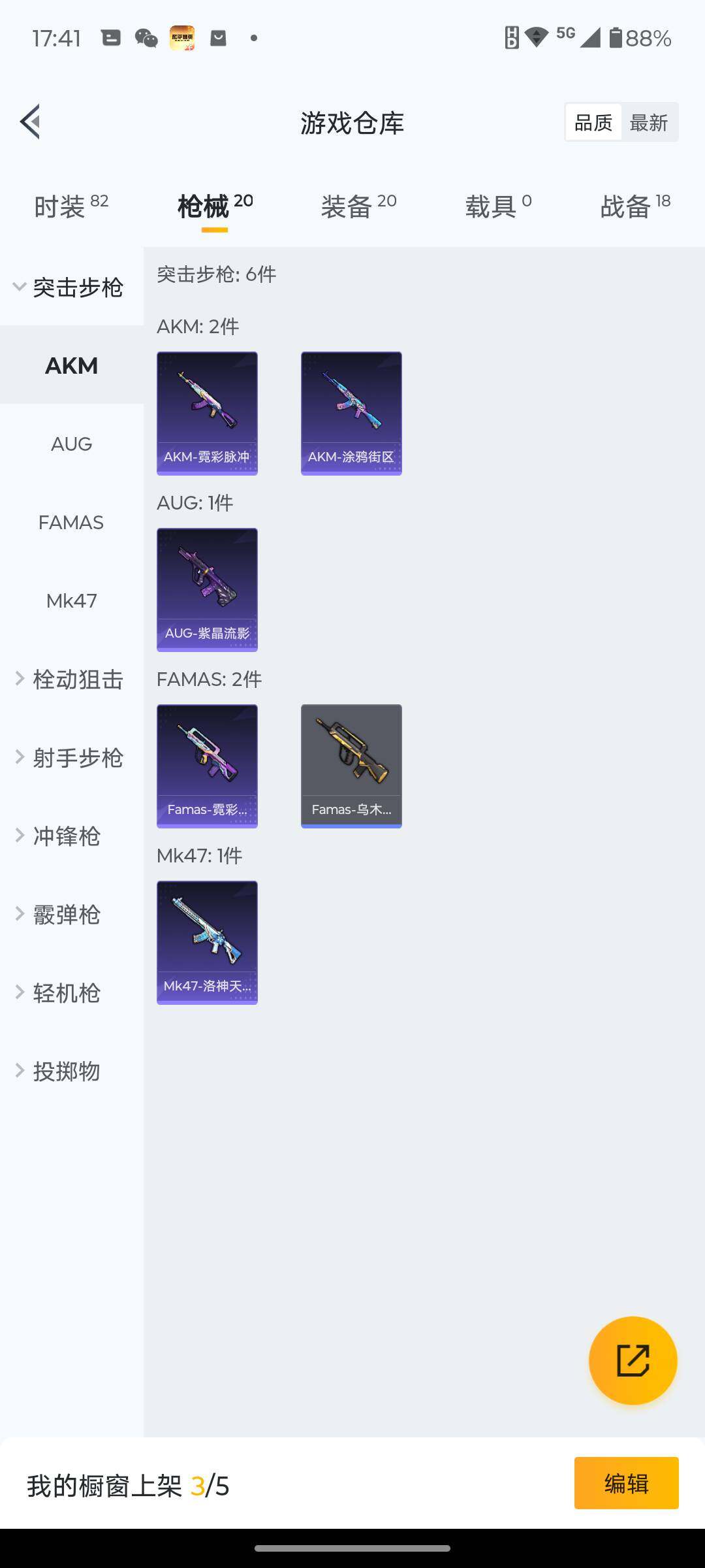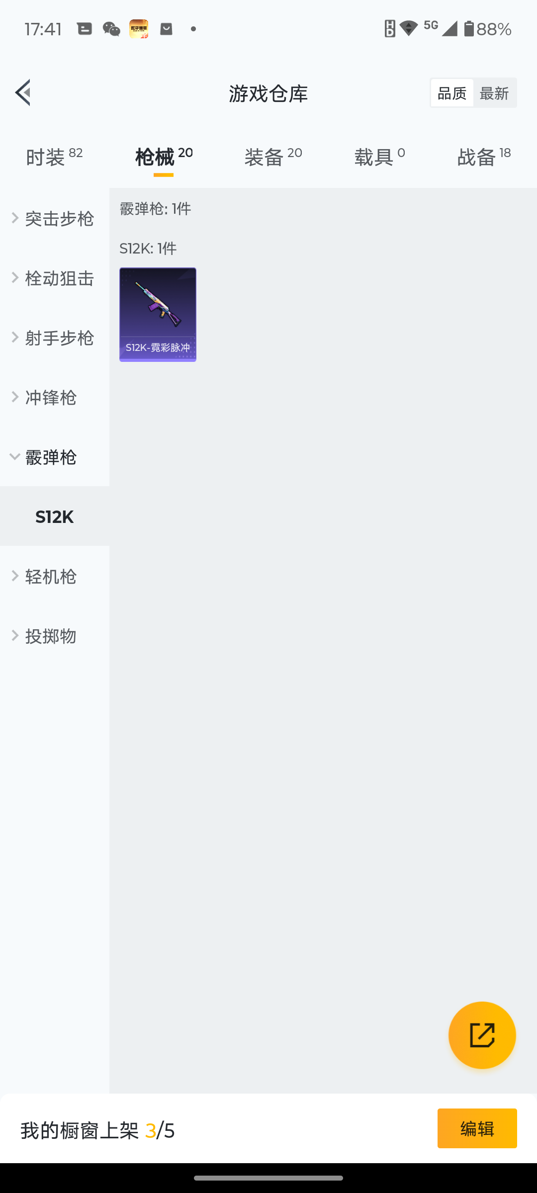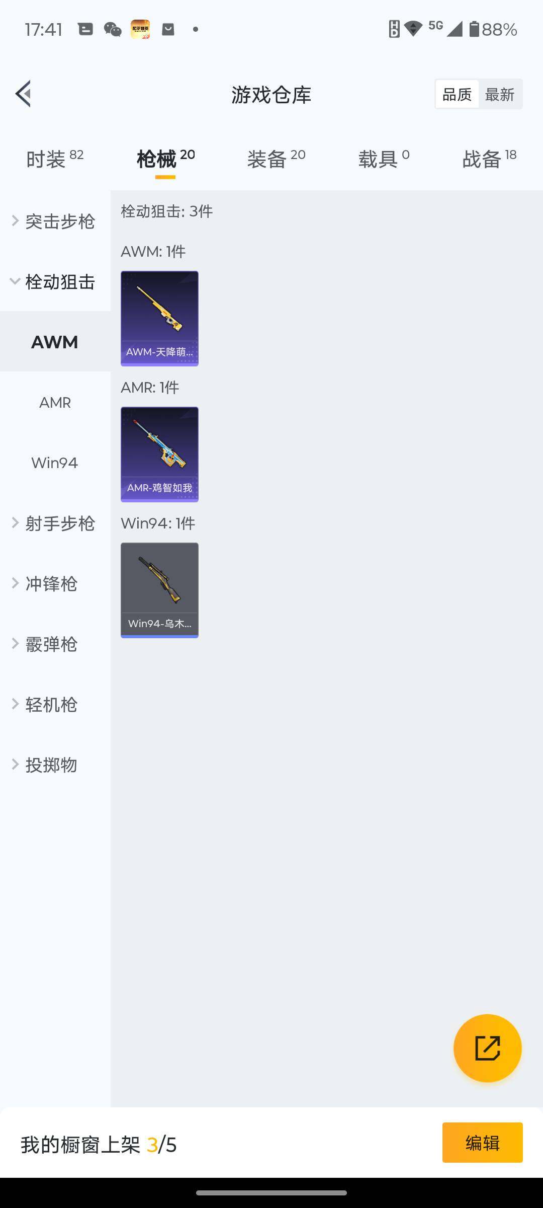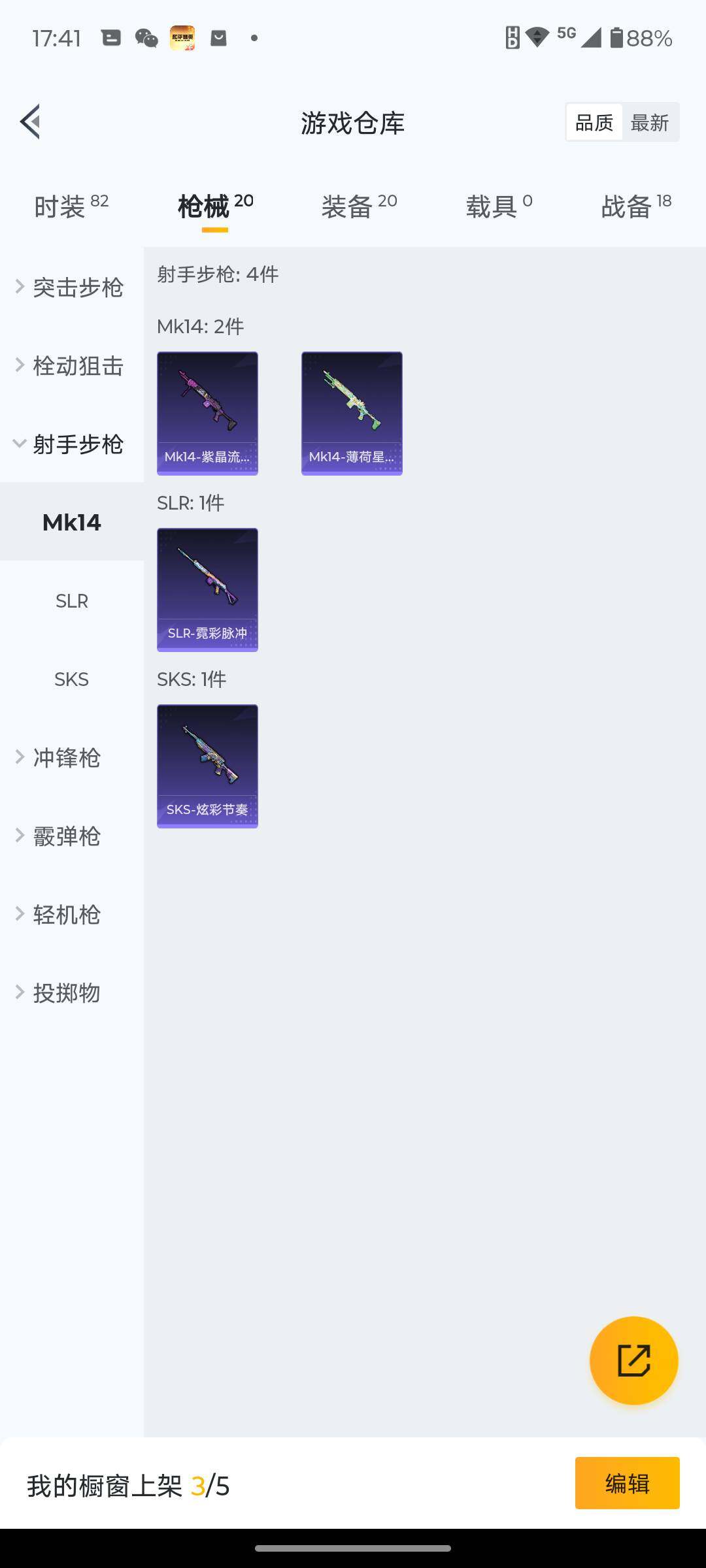 6162-1特效呛-0载具-0粉色飞行器-5095热力值-1王牌印记-19套装-20呛皮 【粉色呛皮等级】:dp-28-豹影疾电五级 【粉色呛皮】:dp-28-豹影疾电 【粉色降落伞】:异瞳寒姬降落伞 【稀有呛皮】:mk47-洛神天依,sks-炫彩节奏,m249-绯穹魔姬 【其他套装】:套装-幻影武者,套装-滨海厨神,套装-破晓战魂,套装-破蛋小黄鸡,套装-耀粉歌者,套装-青涩时光,套