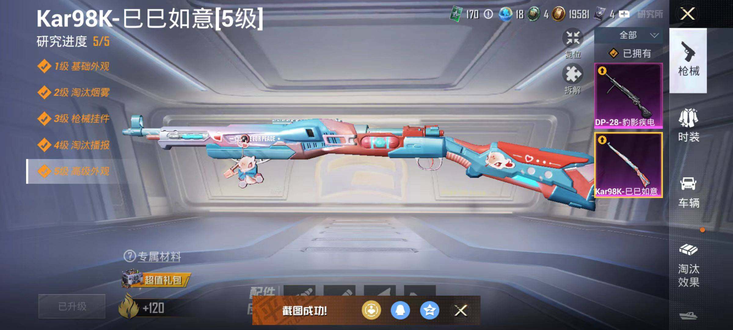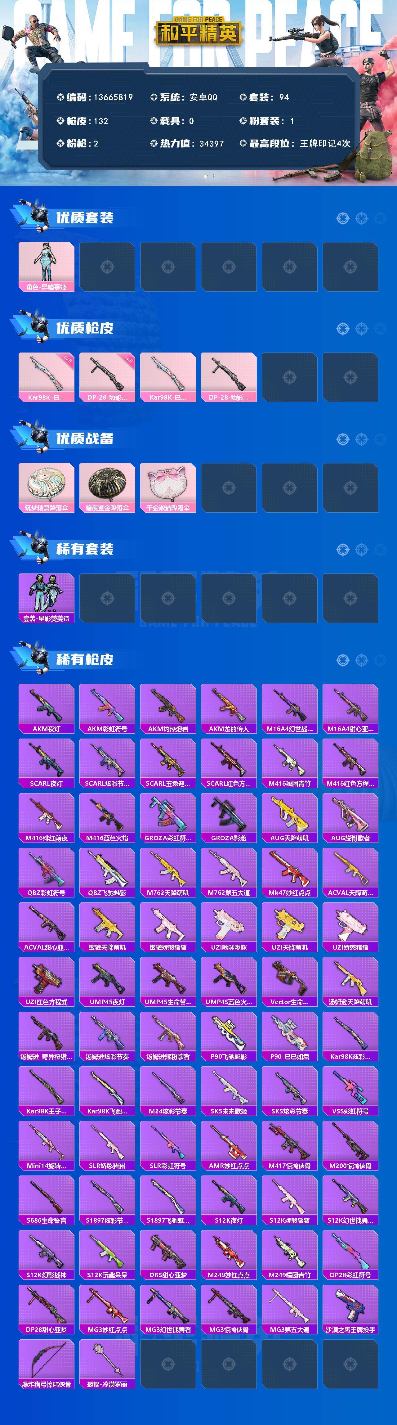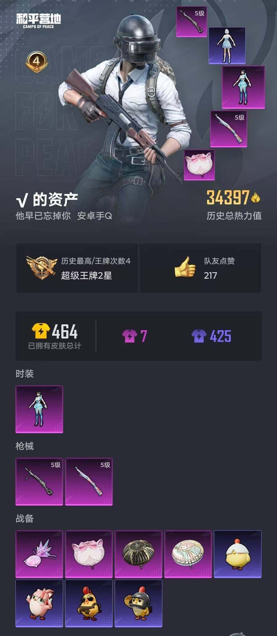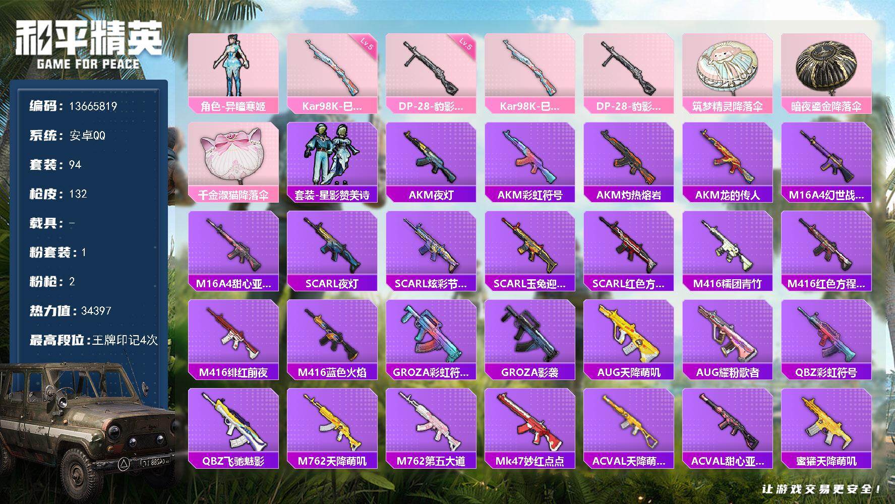 6232-1粉装-2特效呛-0载具-1粉色飞行器-34397热力值-4王牌印记-94套装-132呛皮 【粉色套装】:角色-异瞳寒姬 【粉色呛皮等级】:kar98k-巳巳如意五级,dp-28-豹影疾电五级 【粉色呛皮】:kar98k-巳巳如意,dp-28-豹影疾电 【粉色降落伞】:筑梦精灵降落伞,暗夜鎏金降落伞,千金淑猫降落伞 【稀有套装】:套装-星影赞美诗 【稀有呛皮】:akm-夜