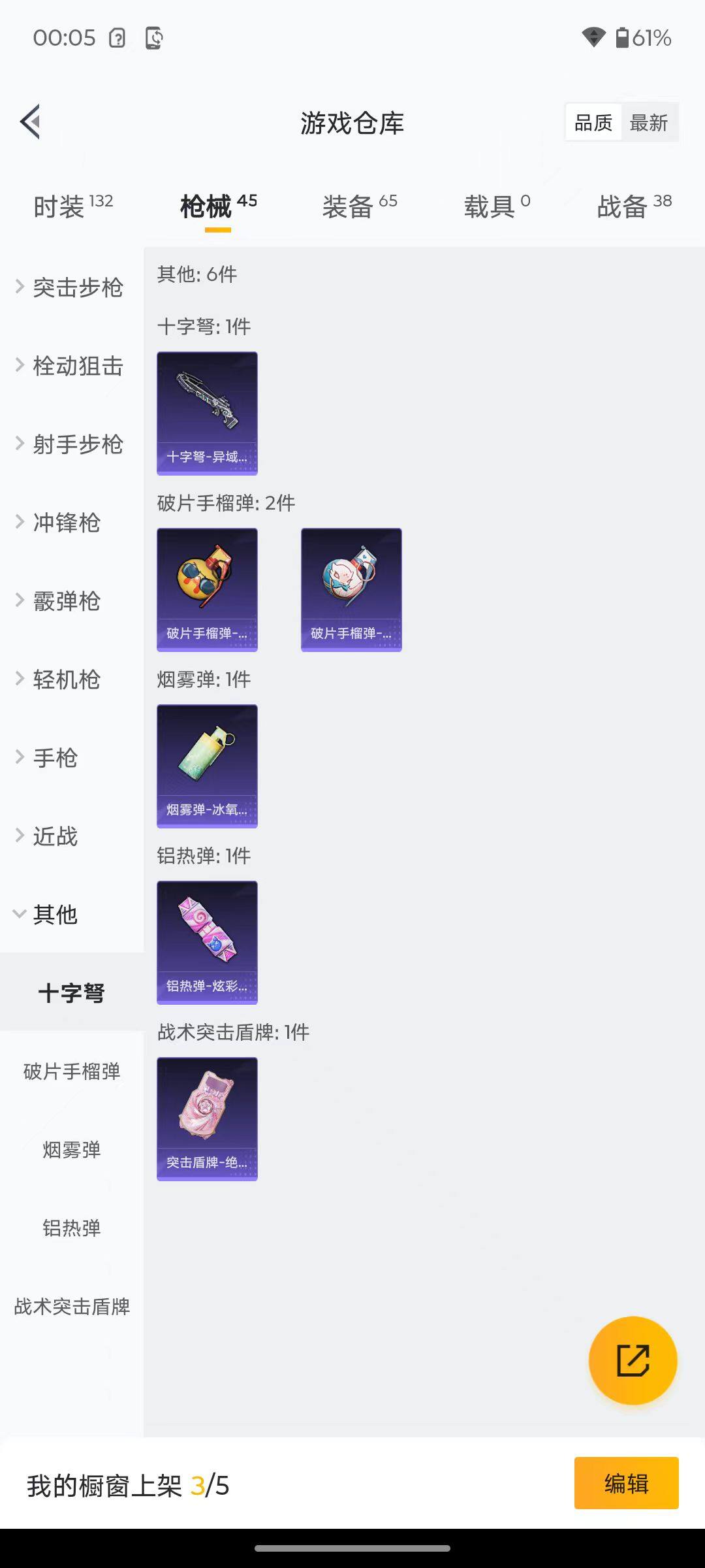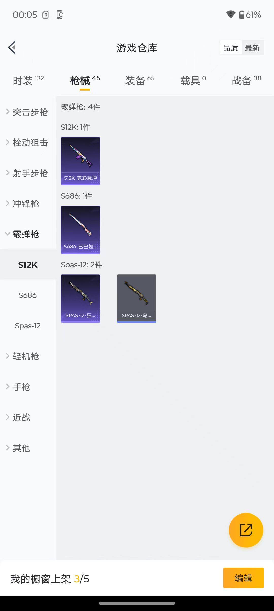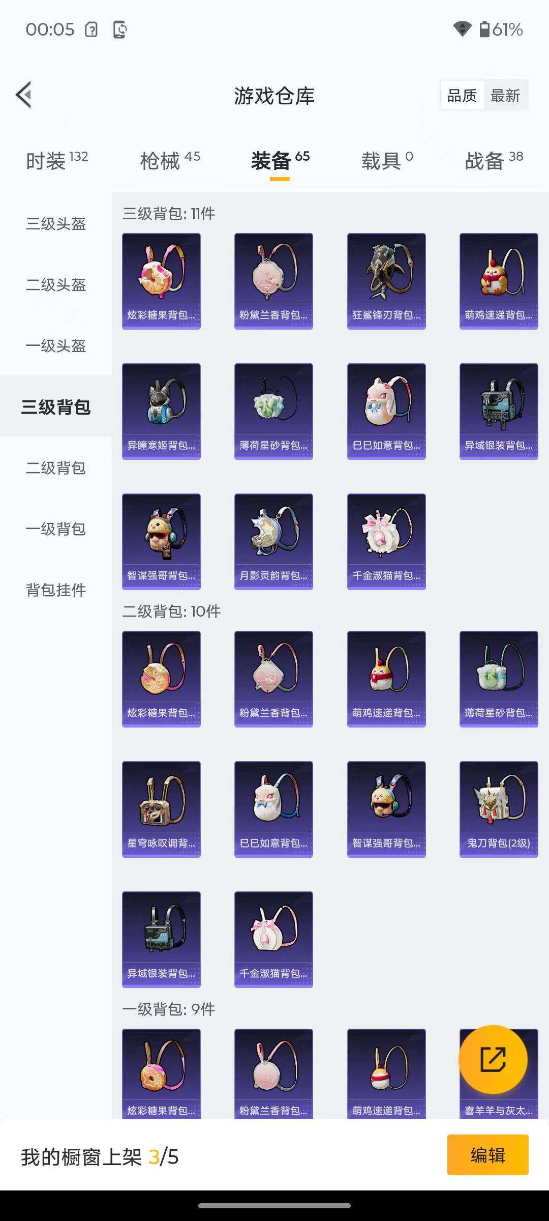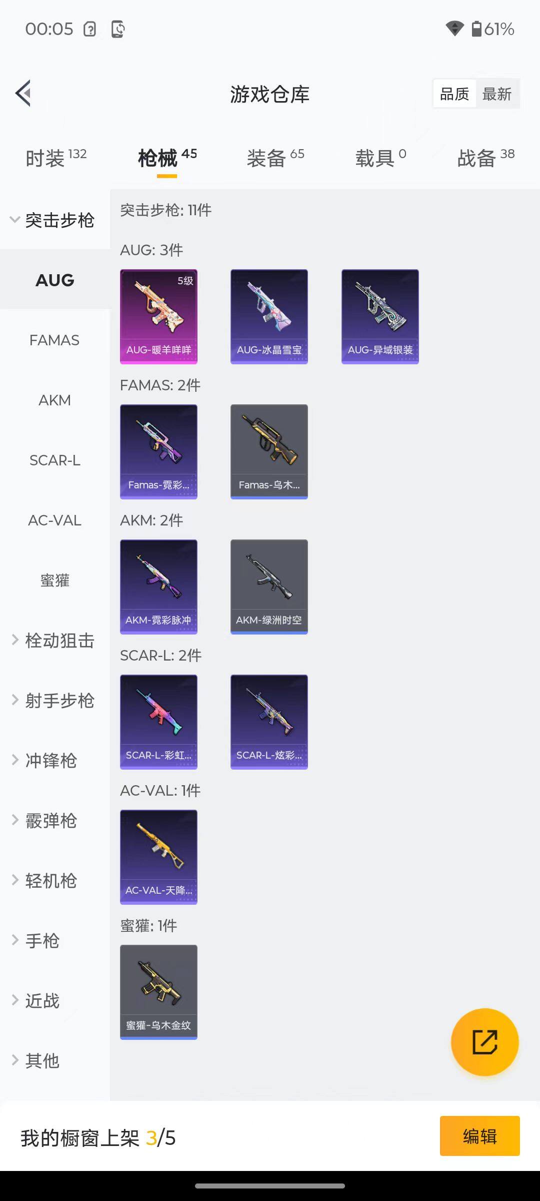 6176-3特效呛-0载具-1粉色飞行器-12412热力值-2王牌印记-29套装-45呛皮 【粉色呛皮等级】:aug-暖羊咩咩五级,kar98k-巳巳如意五级,dp-28-豹影疾电五级 【粉色呛皮】:aug-暖羊咩咩,kar98k-巳巳如意,dp-28-豹影疾电 【粉色降落伞】:鬼刀降落伞 【稀有套装】:套装-巳巳如意,角色-摩登魅猫,玩偶服-喜羊羊,套装-炫彩糖果 【稀有呛皮
