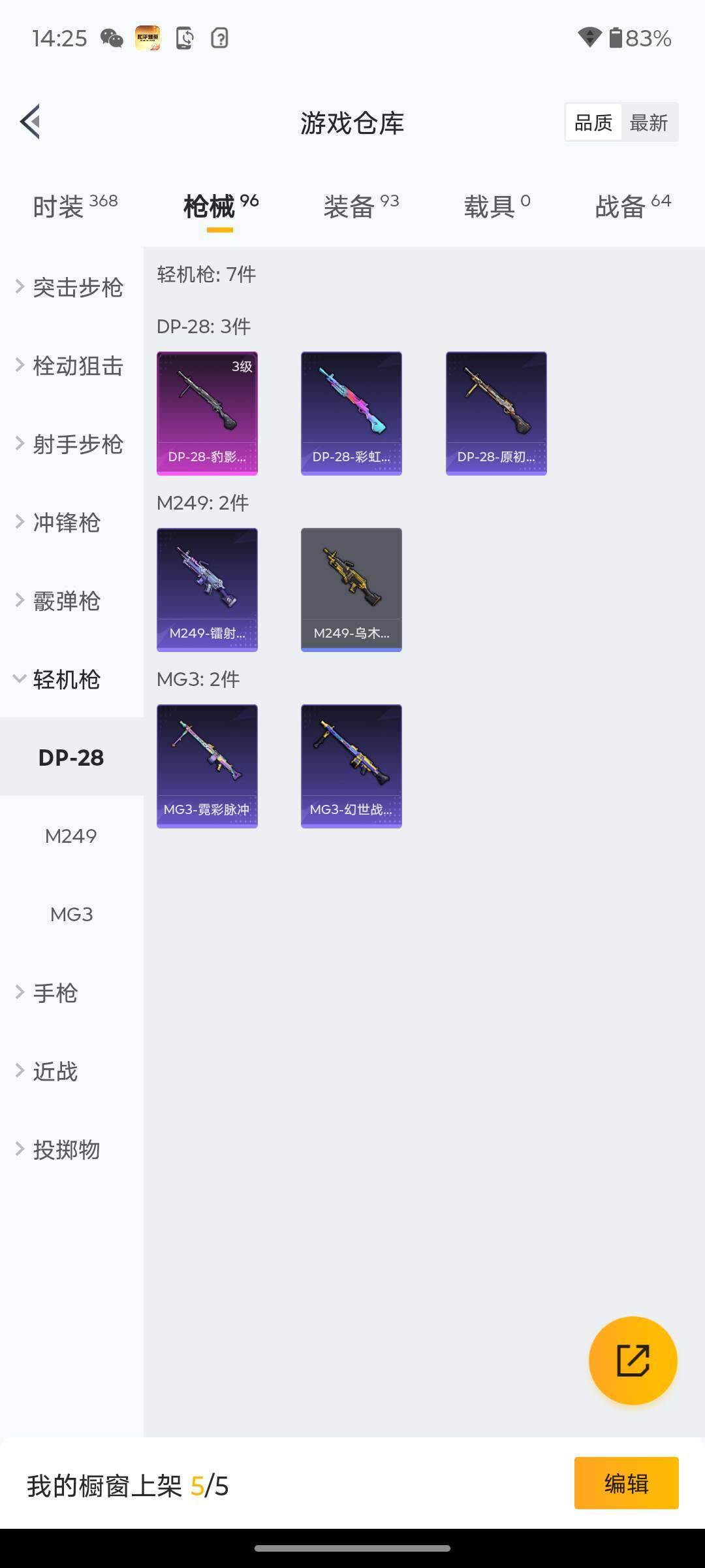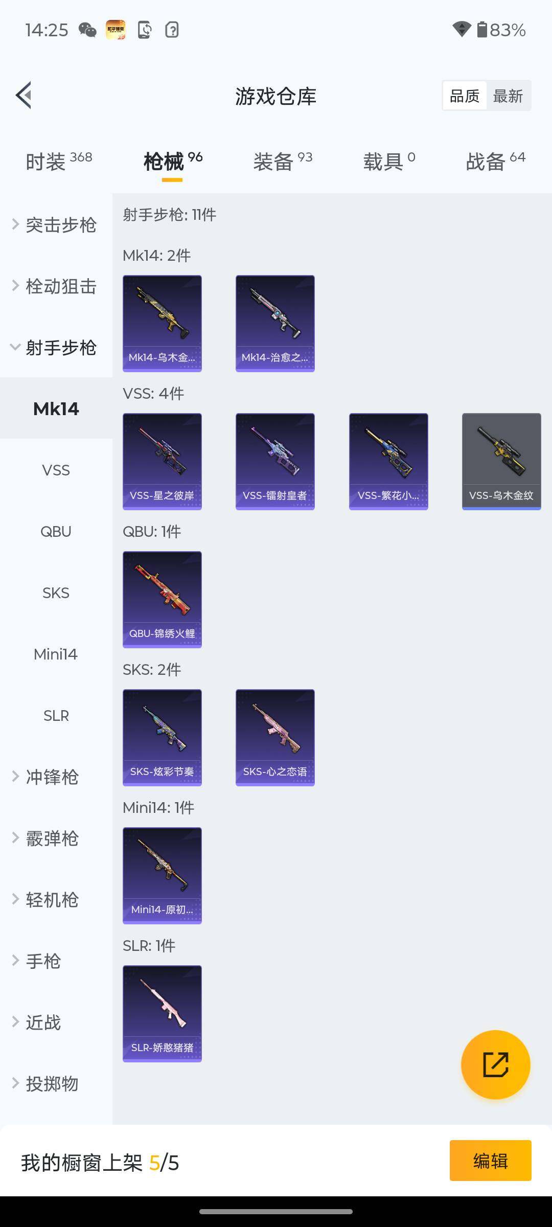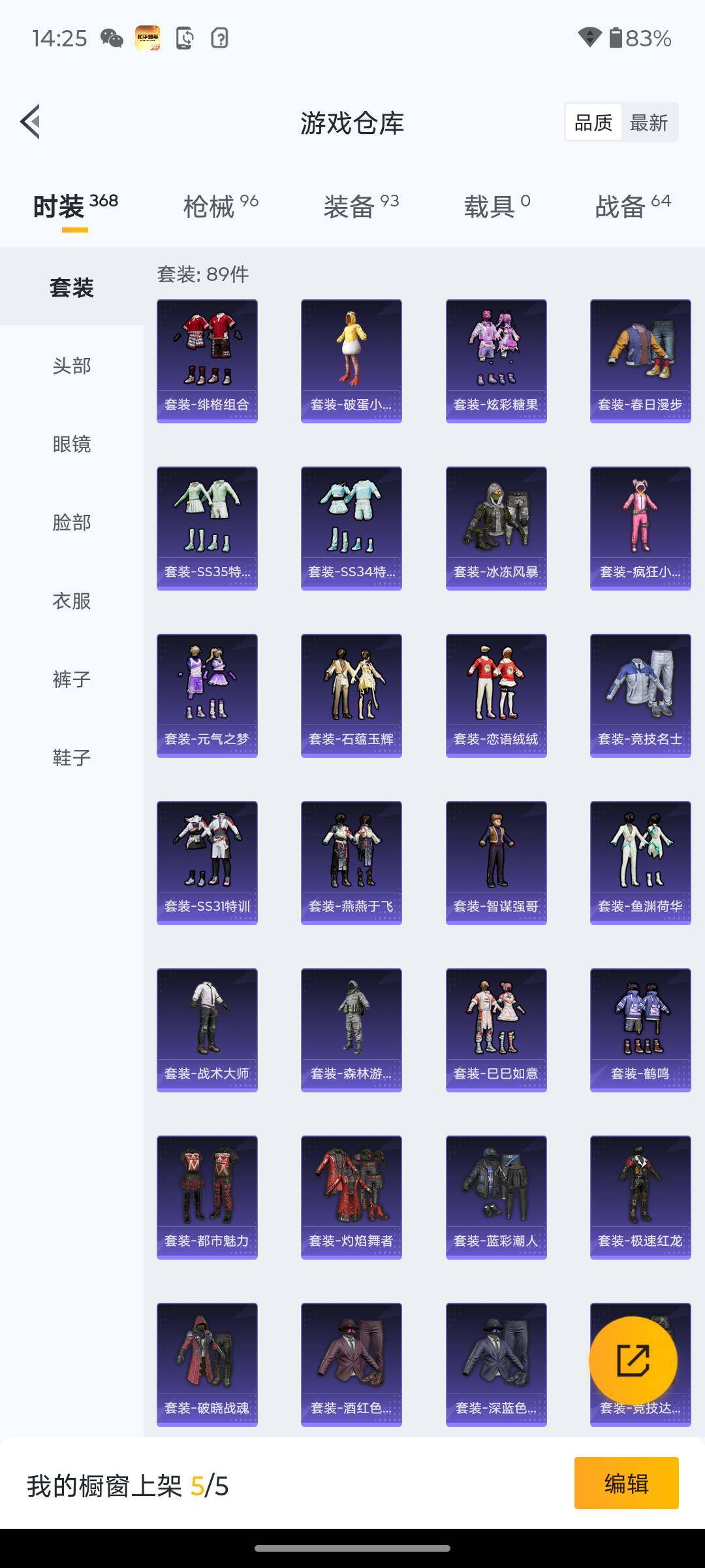 5981-2特效呛-0载具-1粉色飞行器-27278热力值-1王牌印记-89套装-96呛皮 【热门品类】:套装-奇异狩猎者,套装-暗影哥特,套装-粉红小猪 【粉色呛皮等级】:kar98k-巳巳如意五级,dp-28-豹影疾电三级 【粉色呛皮】:kar98k-巳巳如意,dp-28-豹影疾电 【粉色降落伞】:四圣焕新降落伞,垂柳戏鸭降落伞,猪猪侠降落伞 【稀有套装】:套装-巳巳如意,角色