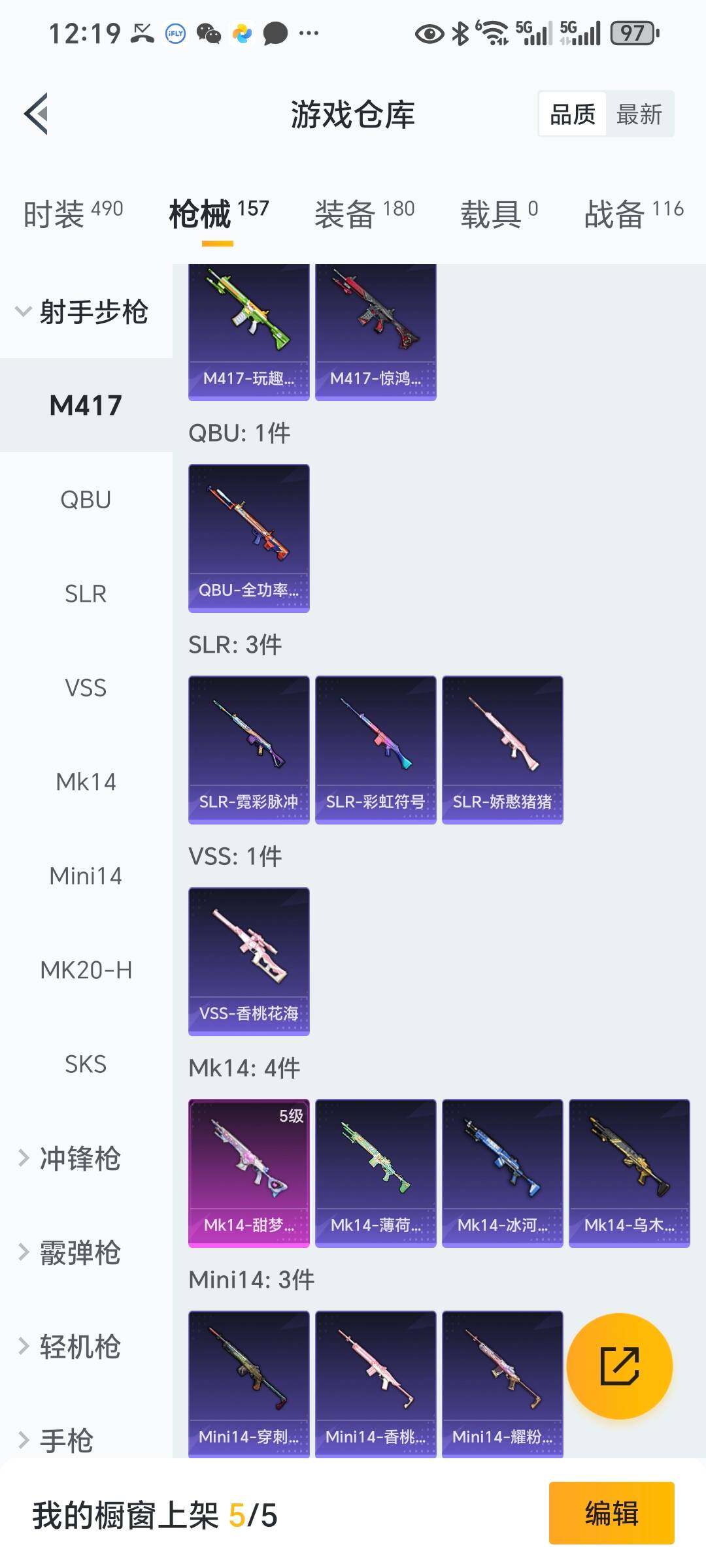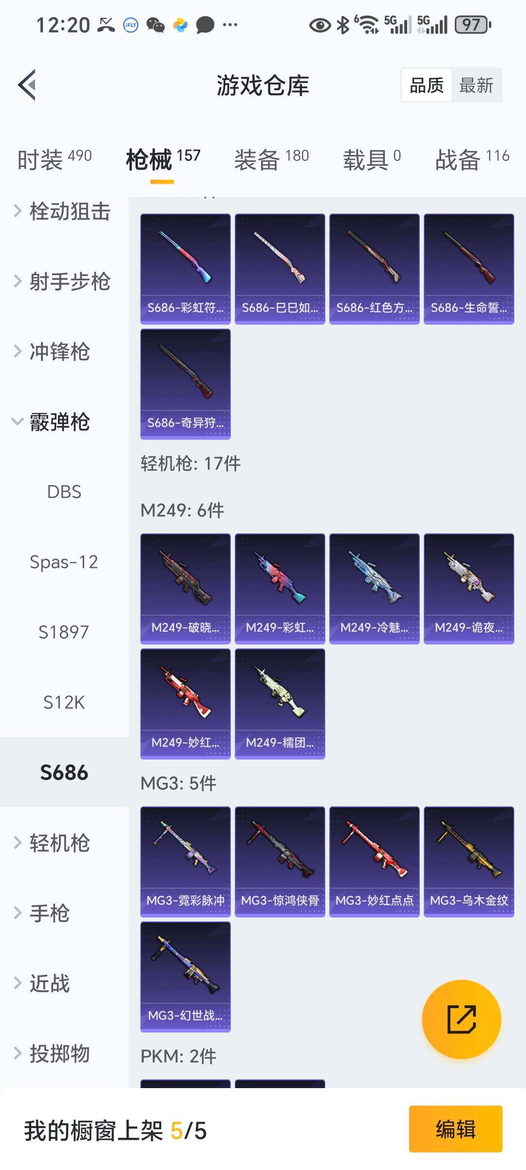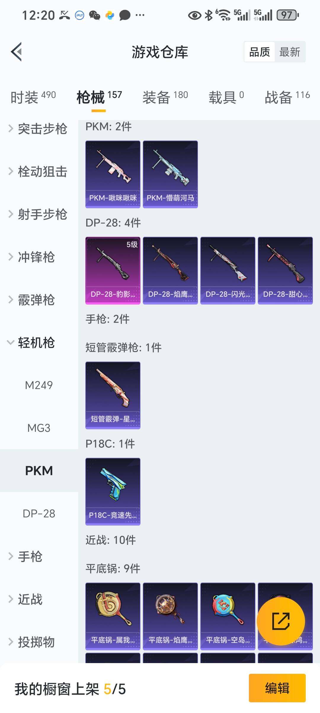 6130-1粉装-3特效呛-0载具-2粉色飞行器-43881热力值-6王牌印记-118套装-158呛皮 【热门品类】:套装-龟仙人,套装-暗影哥特 【粉色套装】:粉装-闲梦青缨 【粉色呛皮等级】:kar98k-巳巳如意五级,mk14-甜梦熊击五级,dp-28-豹影疾电五级 【粉色呛皮】:kar98k-巳巳如意,mk14-甜梦熊击,dp-28-豹影疾电 【粉色飞行器】:星夜魔法师