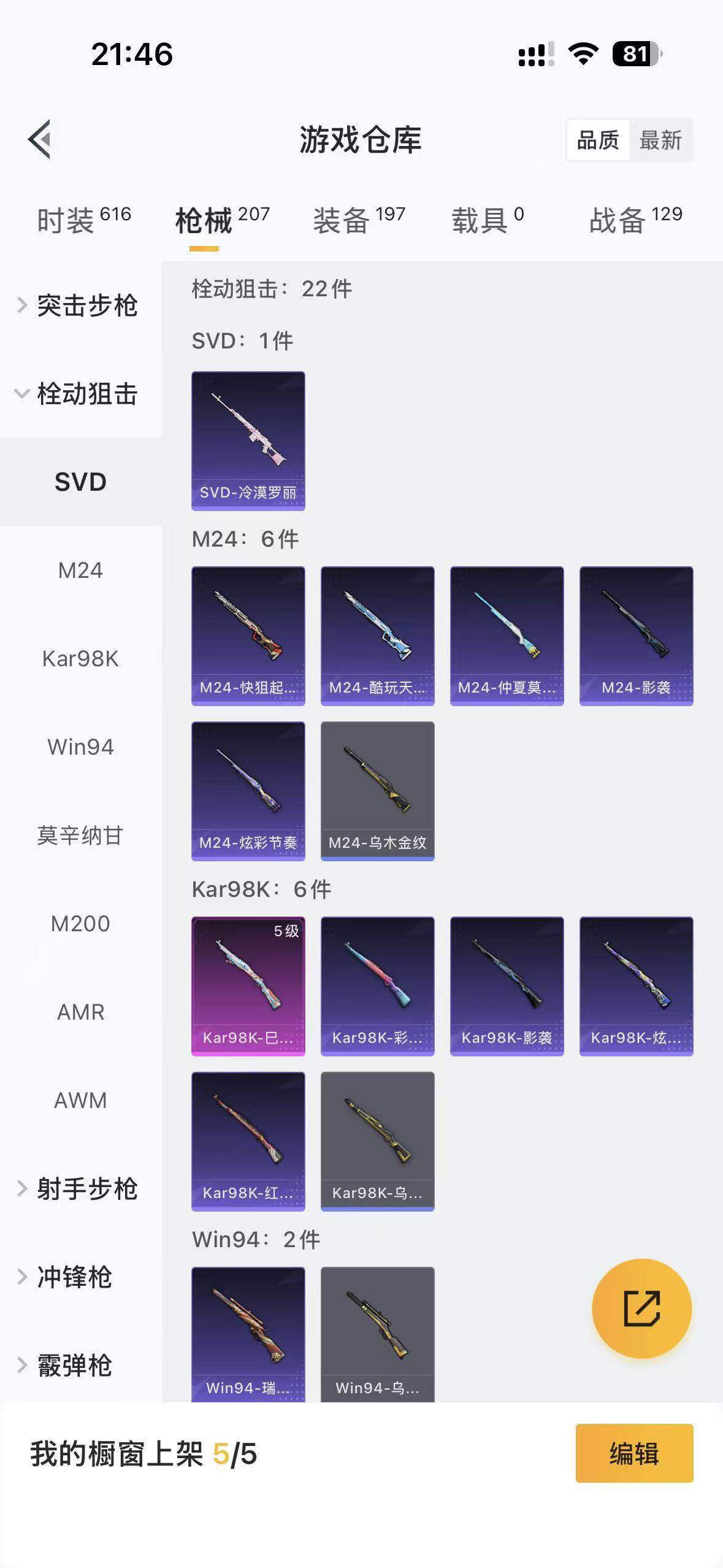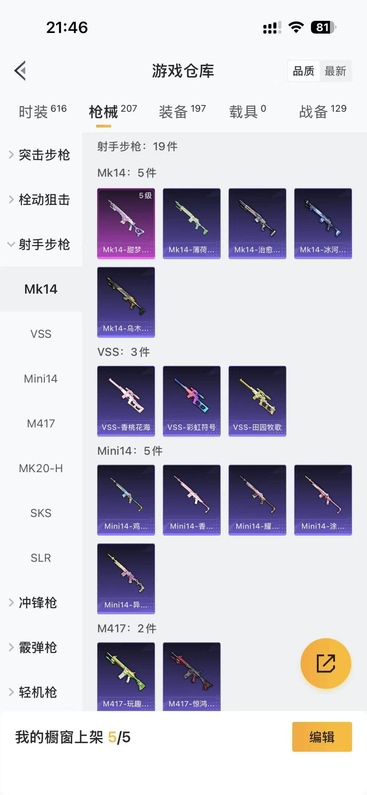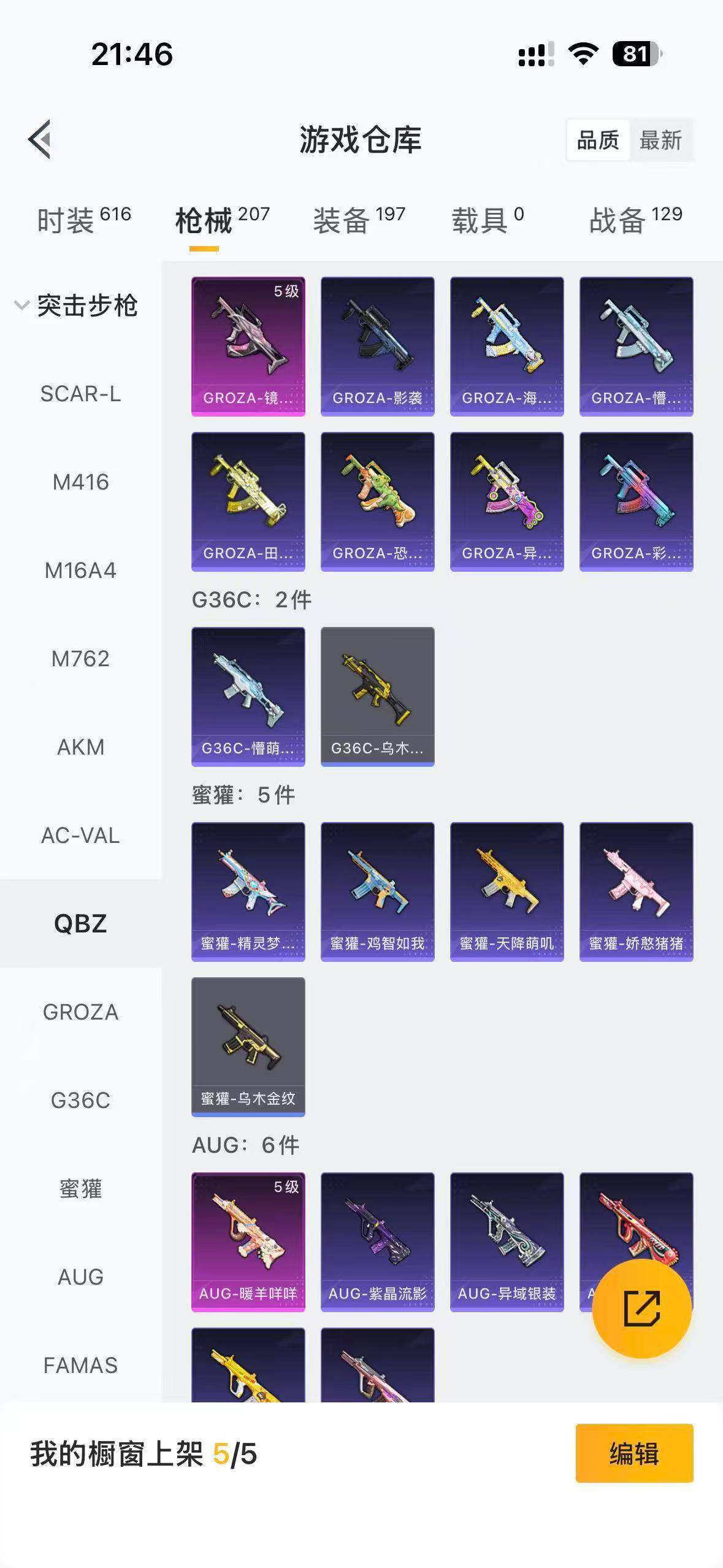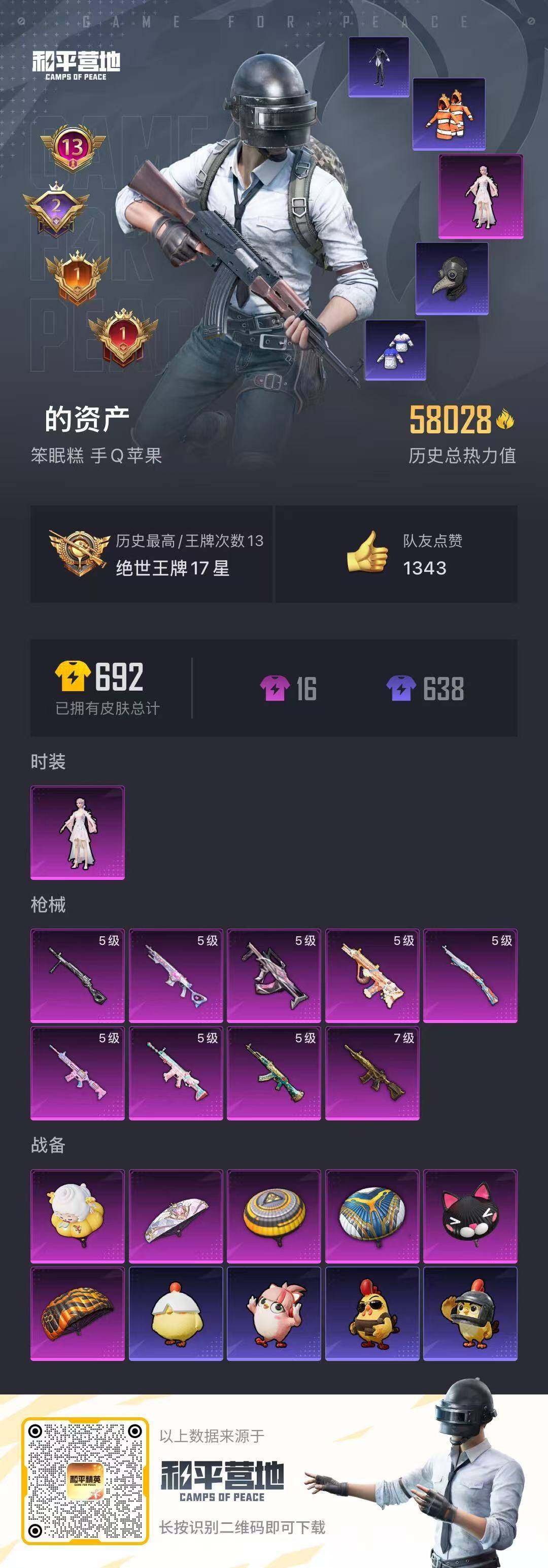 5966-1粉装-9特效呛-0载具-0粉色飞行器-58028热力值-13王牌印记-159套装-207呛皮 【热门品类】:套装-浪漫天命,套装-小丑鱼,角色-军刀雅典娜,套装-龟仙人 【粉色套装】:角色-烟云彩露 【粉色呛皮等级】:akm-绿萝繁花五级,scar-l-锦绣绵绵五级,m416-五爪金龙七级,m416-电玩时刻五级,groza-镜光银凌五级,aug-暖羊咩咩