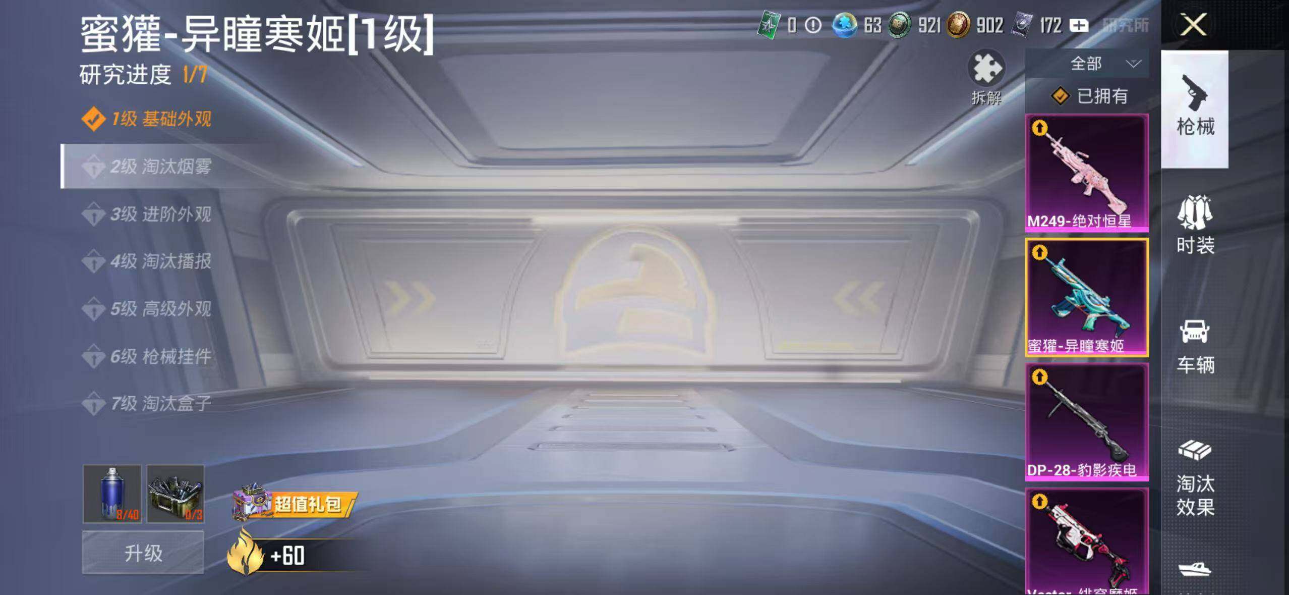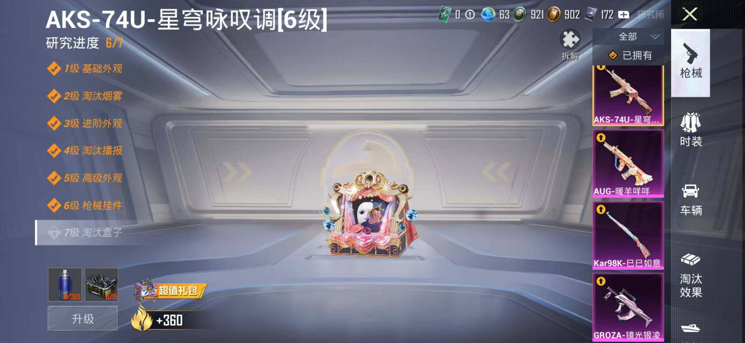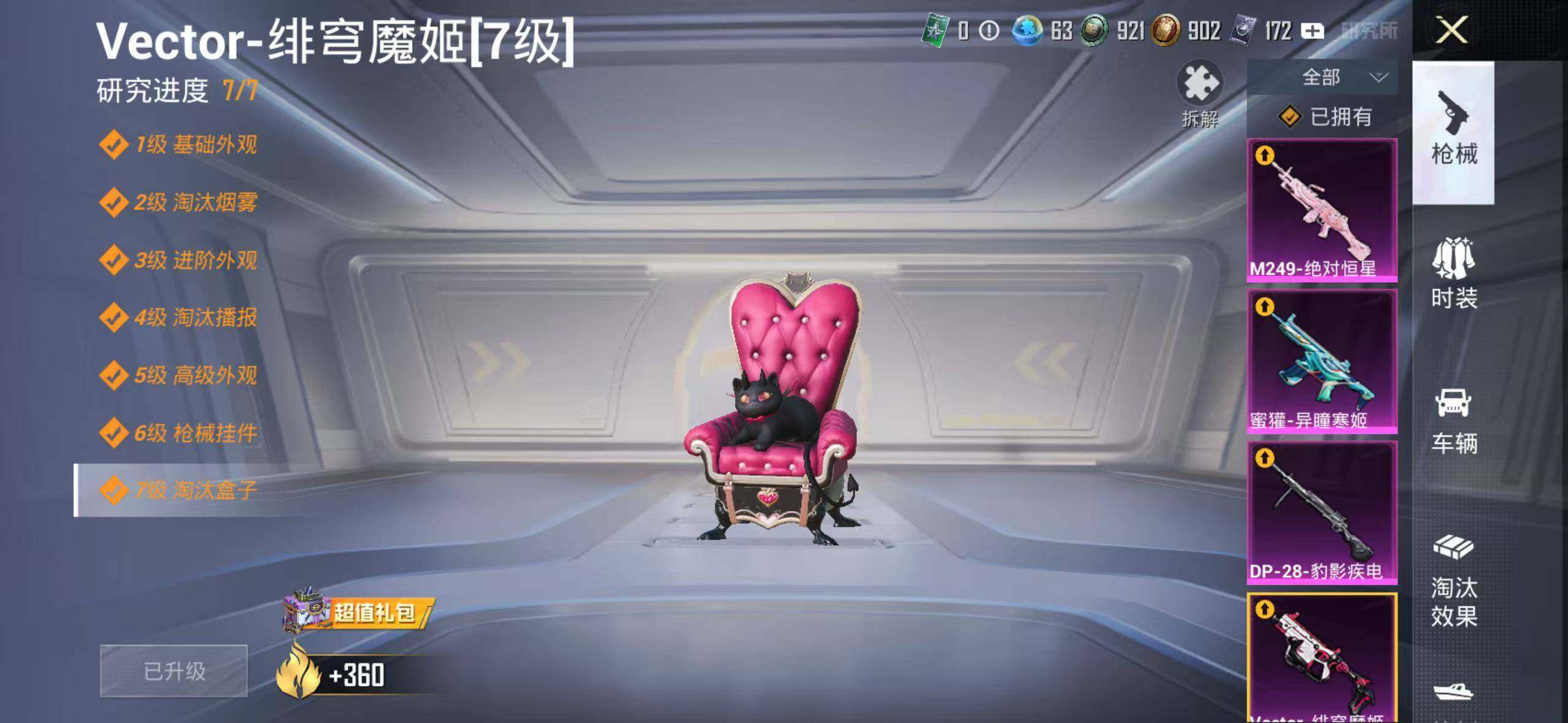 6296 7粉装-11特效呛-0载具-2粉色飞行器-69236热力值-8王牌印记-149套装-234呛皮 【热门品类】:套装-龟仙人 【粉色套装】:粉装-星之彼岸,粉装-射星猎手,粉装-莲影清波,套装-创世·救赎,角色-凤凰座 一辉,角色-绯穹魔姬,角色-异瞳寒姬 【粉色呛皮等级】:m16a4-垂柳戏鸭六级,m416-五爪金龙七级,蜜獾-异瞳寒姬一级,vect-绯穹魔姬七