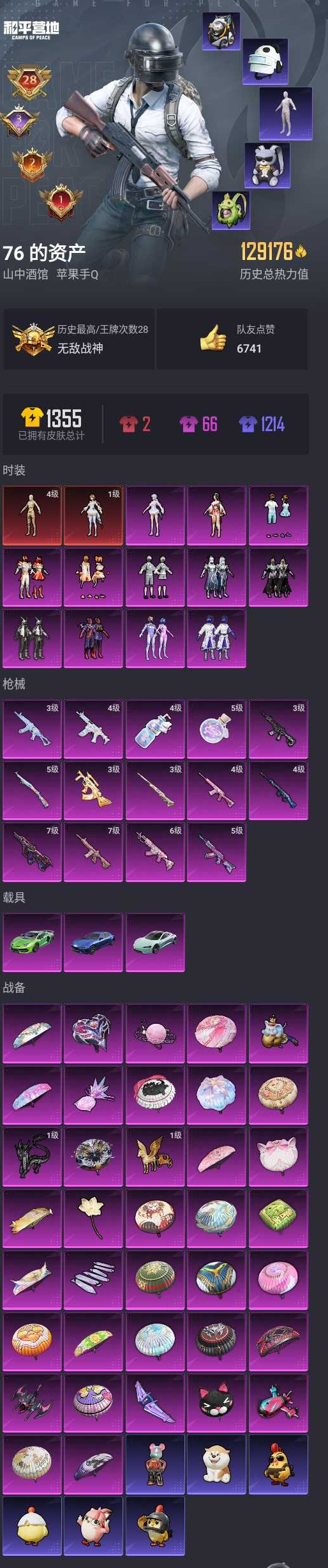 【和平精英】【lyhp20706】12粉装,14特效呛,3载具,历史最高段位:无敌战神 王牌印记28次 热力值:129176,253套装,369呛械,458装备,231战备;套装:沙丘之主-图卡盟,镜域双华-欧若拉,套装-数码大师,套装-梦幻火箭,套装-新星烈龙,套装-星之彼岸,套装-骨龙祭渊,套装-吟月归客,套装-橘柚倾心,套装-岚岚物语,套装-霞光圣骑,套装-仲夏莫吉托,角色-狂花道·不知火舞,角色-荧海星豚,套装-蓝色运动,套装-骑行爱好者,套装-竞技名士,套装-深蓝色名流,套装-猛禽,套装-长空猛禽,套装-竞技勇士朋克,套装-黎明保卫者,套装-雨林探路者,套装-六六大吉,套装-浪漫天命,套装-特战装甲,套装-战地菁英,套装-突袭者,套装-黄色格斗者,套装-灰色格斗者,套装-甜蜜告白,套装-完美偶像,套装-特战英豪,套装-神秘领域,套装-怒火燎原,套装-魅力单车,套装-绮丽涂鸦,套装-雪山征服者,套装-坚韧舞者,套装-夜莺强袭者,套装-野性战心,套装-金羽特工,套装-热血青春,套装-丛林猎人,套装-ss2特训,套装-派对绅士,套装-雪山精英,套装-酷潮明星,套装-传奇侦探,套装-极地朋克,套装-摩艾涂鸦,套装-幻世战舞者,套装-甜蜜菠萝,套装-馥郁哈密,套装-半糖蓝莓,套装-装甲骑士,套装-夏日倾情,套装-缤纷果语,套装-滨海厨神,套装-龙魂突击队,套装-灿烂千阳,套装-极速红龙,套装-格斗先锋,套装-冷血极客,套装-海上生明月,套装-沙暴袭击者,套装-ss3特训,套装-冥河战士,套装-粉红小猪,套装-破蛋小黄鸡,套装-疯狂小兔子,套装-深蓝冒险家,套装-迷域探索者,套装-机械英豪,套装-机械征服者,套装-ss5特训,套装-圣诞大吉,套装-冰原使者,套装-凛冬战士,套装-好奇恐龙,套装-浪漫波比,套装-金鼠迎春,套装-北国孤狼,套装-ss6特训,套装-拳皇97草薙京,套装-炽焰拳师,套装-格斗专家,套装-奇迹天团,套装-淡雅花蕊,套装-玲珑飞花,套装-跃动心情,套装-ss7特训,套装-核芯基因,套装-精神漫游,套装-银河圣歌,套装-闪耀星光,套装-鹤鸣,套装-霓虹街区,套装-暗夜契约,套装-纯白誓言,套装-激萌罗小黑,套装-ss10特训,套装-ss8特训,套装-众神之王,套装-智慧之神,套装-神秘黑猫,套装-白熊同盟,套装-萌黄之夏,套装-pel摇滚竞梦者,套装-夏日音浪,套装-ss9特训,套装-风华少年志,套装-白月香洋装,套装-薄荷蓝莓,套装-荷鲁斯之眼,套装-探宝勇士,套装-ag战队服,套装-牛气满满,套装-玫瑰恋情,套装-ss11特训,套装-青春冒险家,套装-潮流游乐家,套装-逆风勇士,套装-萌趣颜团子,套装-战术大师,套装-ss12特训,套装-牛气冲天,套装-ss18特训,套装-耀粉歌者,套装-迅捷之星,套装-治愈之星,套装-科技之星,套装-ss13特训,套装-热情海星,套装-纯真浪花,套装-冰爽海盐,套装-ss14特训,套装-吉莉礼服,套装-快乐星愿,套装-星梦畅游,套装-ss15特训,套装-ag追光队服,套装-ss16特训,套装-暴风机械师,套装-时空追击者,套装-ss17特训,套装-瑞龙福将,套装-团圆交子,套装-极乐追光,套装-福星高照,套装-海龙战士,套装-遗落祭司,套装-豚鼠丹丹,套装-雪兔飞飞,套装-虎虎生威吉莉,套装-缤纷焰火,套装-异彩先驱,套装-霓虹极客,套装-绿野极光,套装-空投萌叽,套装-ss19特训,套装-浓情蜜辣,套装-飞驰魅影,套装-音速流光,套装-炫蓝之夏,套装-ss20特训,套装-猎梦纪元,套装-甜心亚梦,套装-虚音幻奏,套装-ss21特训,套装-暖心熊熊,套装-萌趣咩咩,套装-娇憨猪猪,套装-酸甜橘柚,套装-玉兔迎春,套装-ss22特训,套装-田园牧歌,套装-轻风白浪,套装-光之冒险,套装-绯格组合,套装-ss23特训,套装-摩登艾咪,套装-白兰地假日,套装-神气柴柴,套装-懵萌河马,套装-灵蜜圈圈,套装-妙红点点,套装-幻彩翩翩,套装-王牌教练,套装-青玉碎影,套装-ss24特训,套装-日照花林,套装-龟仙人,套装-ss25特训,套装-惊鸿侠骨,套装-锦衣飞扬,套装-深海梦境,套装-ss26特训,套装-焰鹰斗篷,套装-幽夜迷踪,套装-幻羽潜行,套装-ss27特训,套装-老实芭蕉,套装-ss28特训,角色-竞速先锋,角色-冰公主,套装-街头风暴,套装-海盐绵绵冰,套装-蝶变,套装-小熊娃娃,套装-ss29特训,套装-雏菊兔兔,套装-萝兰蝴蝶,角色-绯色魅影,角色-紫俏灵猫,套装-异域银装,角色-摩登魅猫,套装-星途旅人,角色-怀庆长公主,套装-ss30特训,套装-青团波波,套装-糖糖葫芦,套装-纯白跃动,套装-ss31特训,套装-鱼渊荷华,套装-燕燕于飞,角色-瑰梦爱神,套装-紫幽梦,套装-粉恋花,套装-ss33特训,套装-云朵鹅,套装-ss32特训,套装-彩虹兔,套装-蓝冰羽,套装-顶瓜瓜,套装-雪绒豹,套装-狂鲨锋刃,套装-大橘大利,套装-星渊小夜曲,套装-炫彩糖果,套装-星影赞美诗,套装-蓝海鲸歌,套装-元气之梦,套装-ss34特训,套装-朱霞炽焰,套装-凌霄紫焰,套装-ss35特训,套装-午间小调,套装-风迹短诗,角色-超感刻度,角色-甜心蒙太奇,套装-ss36特训,套装-雪国风尚;呛皮:7级aug-星之彼岸,aug-魔法学院,aug-青春冒险家,aug-怪笑疯兔,aug-焰龙焚天,aug-天降萌叽,aug-异域银装,aug-绝对恒星,aug-冰晶雪宝,aug-乌木金纹,g36c-不夜海上花,g36c-时空追击者,g36c-暗夜玫瑰,g36c-冷魅冰骑,g36c-懵萌河马,g36c-镜域双华,g36c-星穹咏叹调,g36c-乌木金纹,5级akm-炫紫旋律,akm-生命誓言,akm-冰凉西瓜,akm-百万伏特,akm-星之信仰,akm-霓虹街区,akm-夜灯,akm-星之彼岸,akm-彩虹符号,akm-虎虎生威,akm-海渊国主,akm-恐龙拽拽,arx-凌霄紫焰,m16a4-生命誓言,m16a4-红色方程式,m16a4-冥河战士,m16a4-机械英豪,m16a4-甜心亚梦,m16a4-幻世战舞者,6级m762-甜蜜誓约,m762-绯红前夜,m762-拳皇97,m762-动感兔斯