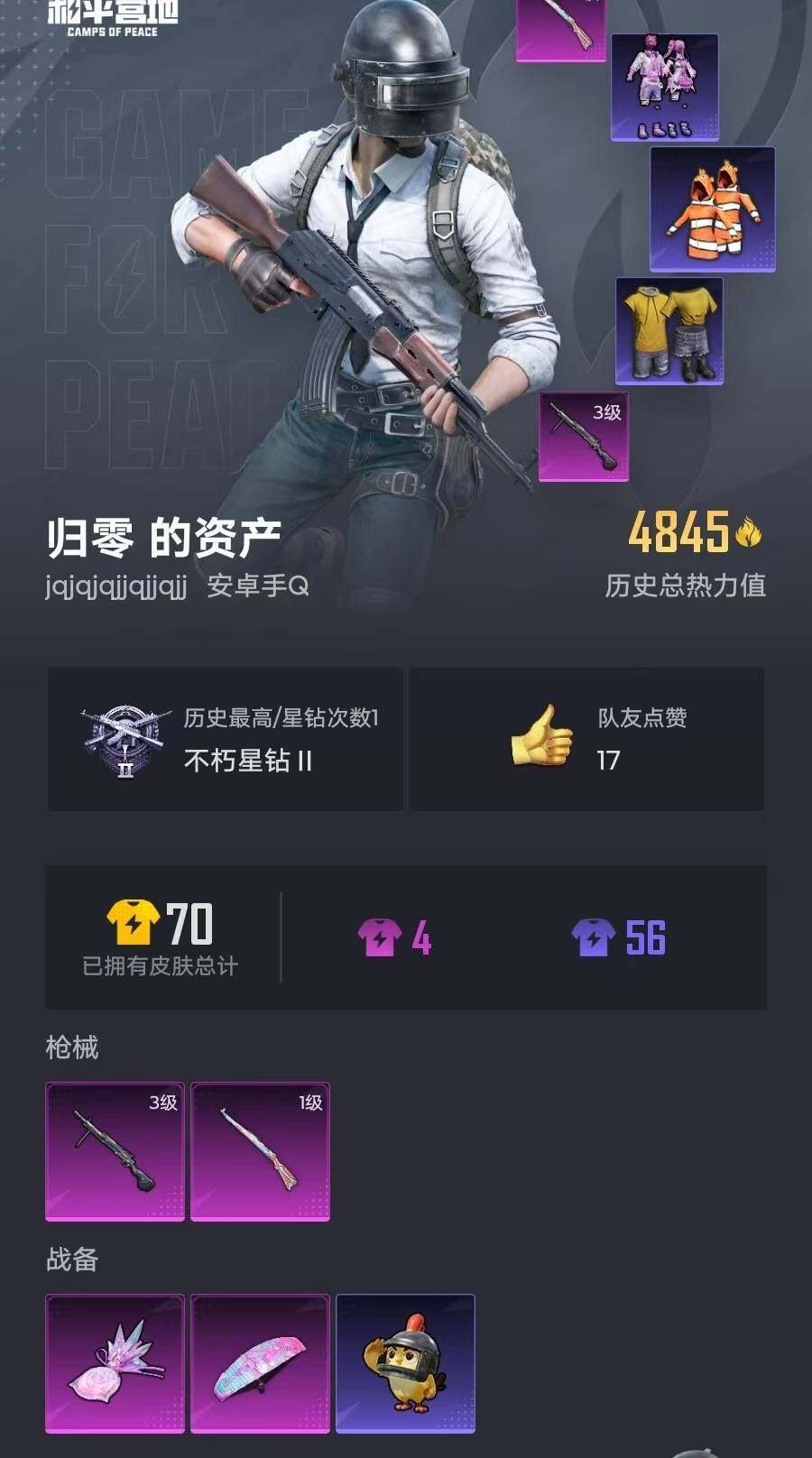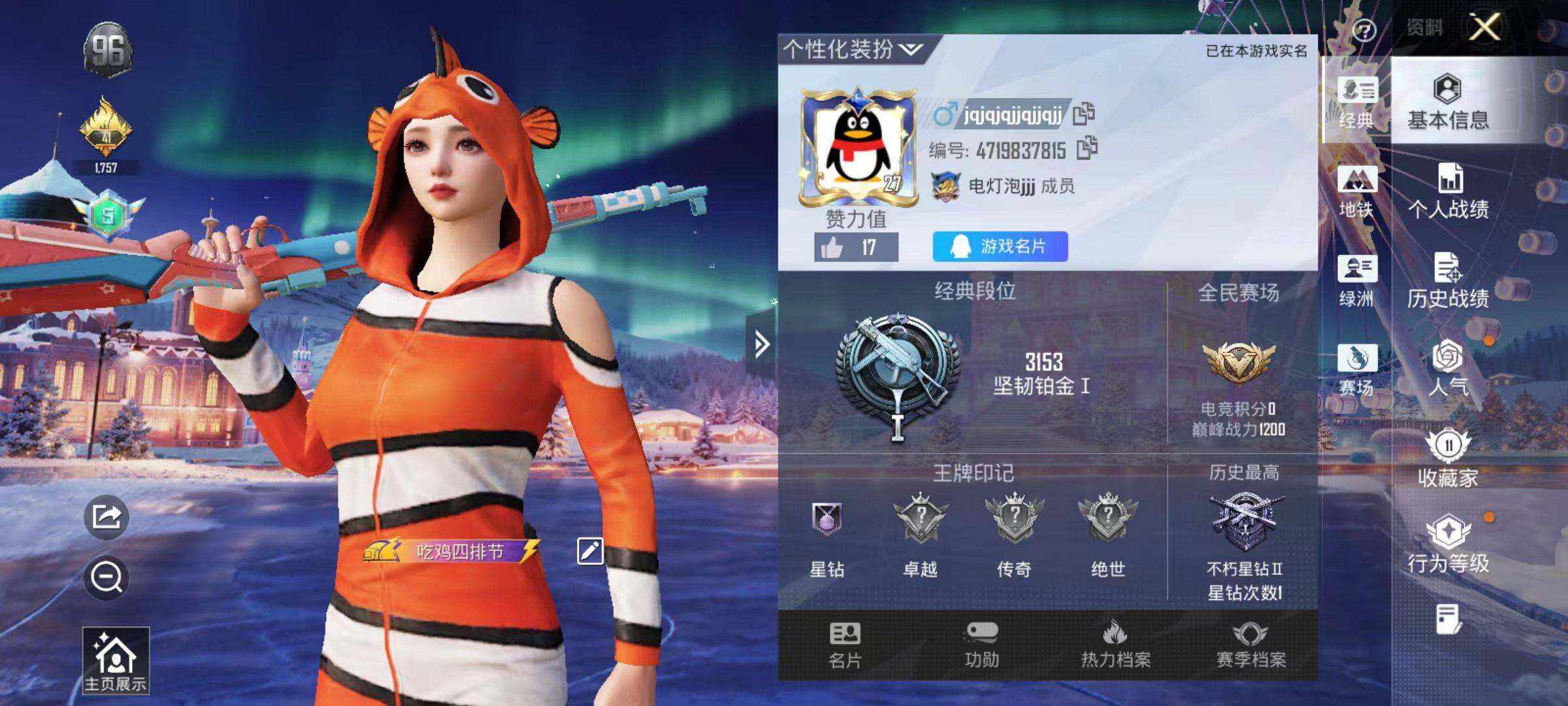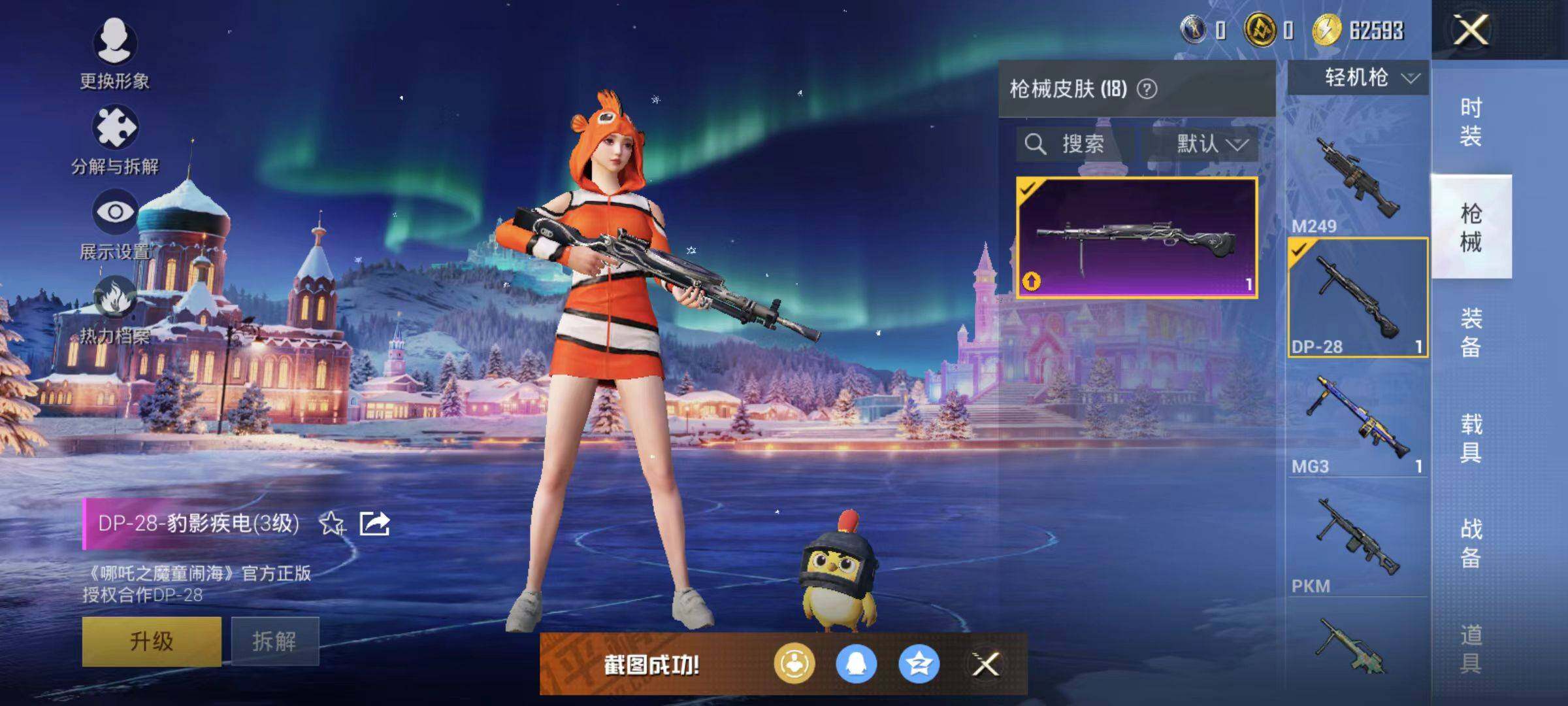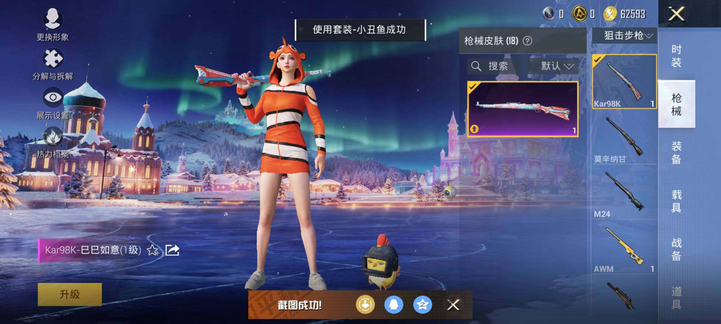 6437【小丑鱼2特效呛1粉色飞行器4845热力值2王牌印记16套装16呛皮】 【热门品类】:套装-小丑鱼 【粉色呛皮】:kar98k-巳巳如意,dp-28-豹影疾电 【粉色降落伞】:炫彩糖果降落伞 【稀有套装】:套装-炫彩糖果 【稀有呛皮】:mini14-耀粉歌者,mg3-幻世战舞者,s12k-夜灯,uzi-啾咪啾咪,aug-冰晶雪宝,r45-幻彩电音 【其他套装】:套装-幻世战舞者,套