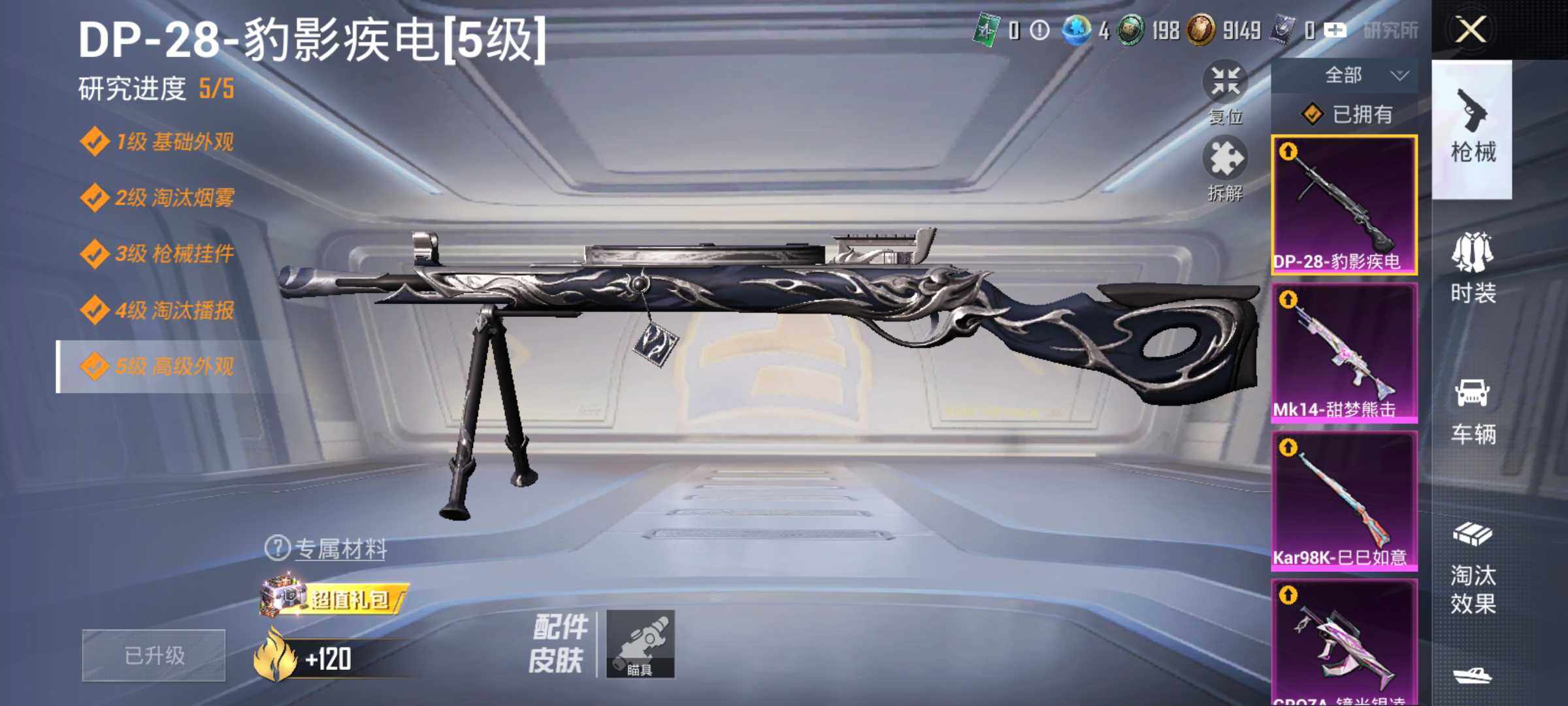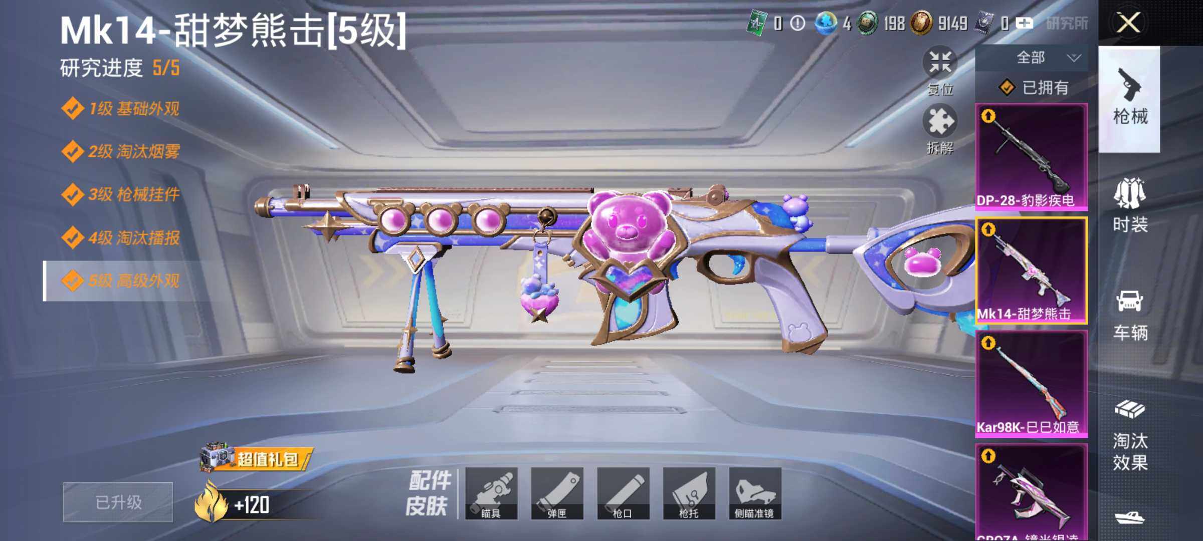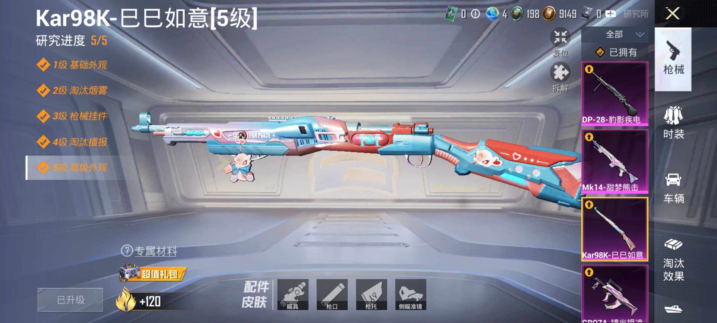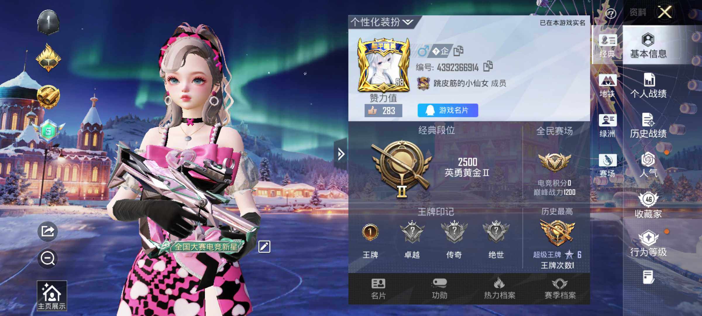 6133-4特效呛-0载具-1粉色飞行器-37996热力值-1王牌印记-94套装-142呛皮 【热门品类】:套装-龟仙人 【粉色呛皮等级】:groza-镜光银凌五级,kar98k-巳巳如意五级,mk14-甜梦熊击五级,dp-28-豹影疾电五级 【粉色呛皮】:groza-镜光银凌,kar98k-巳巳如意,mk14-甜梦熊击,dp-28-豹影疾电 【粉色飞行器】:马卡龙飞行器
