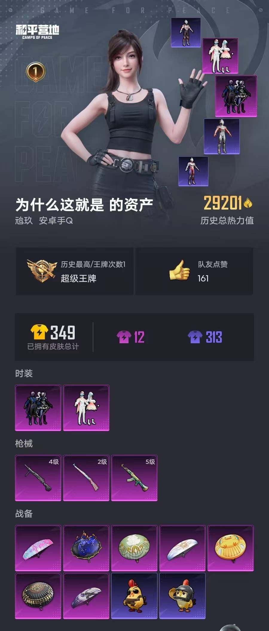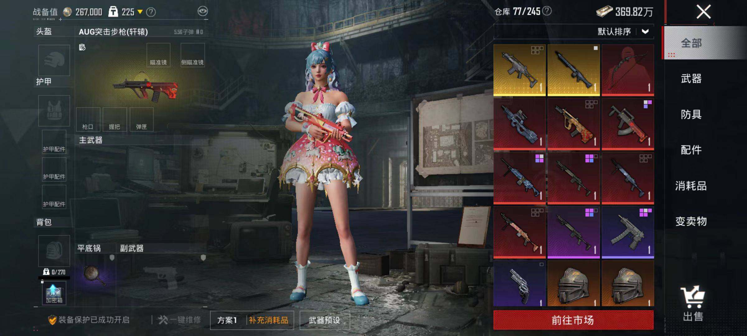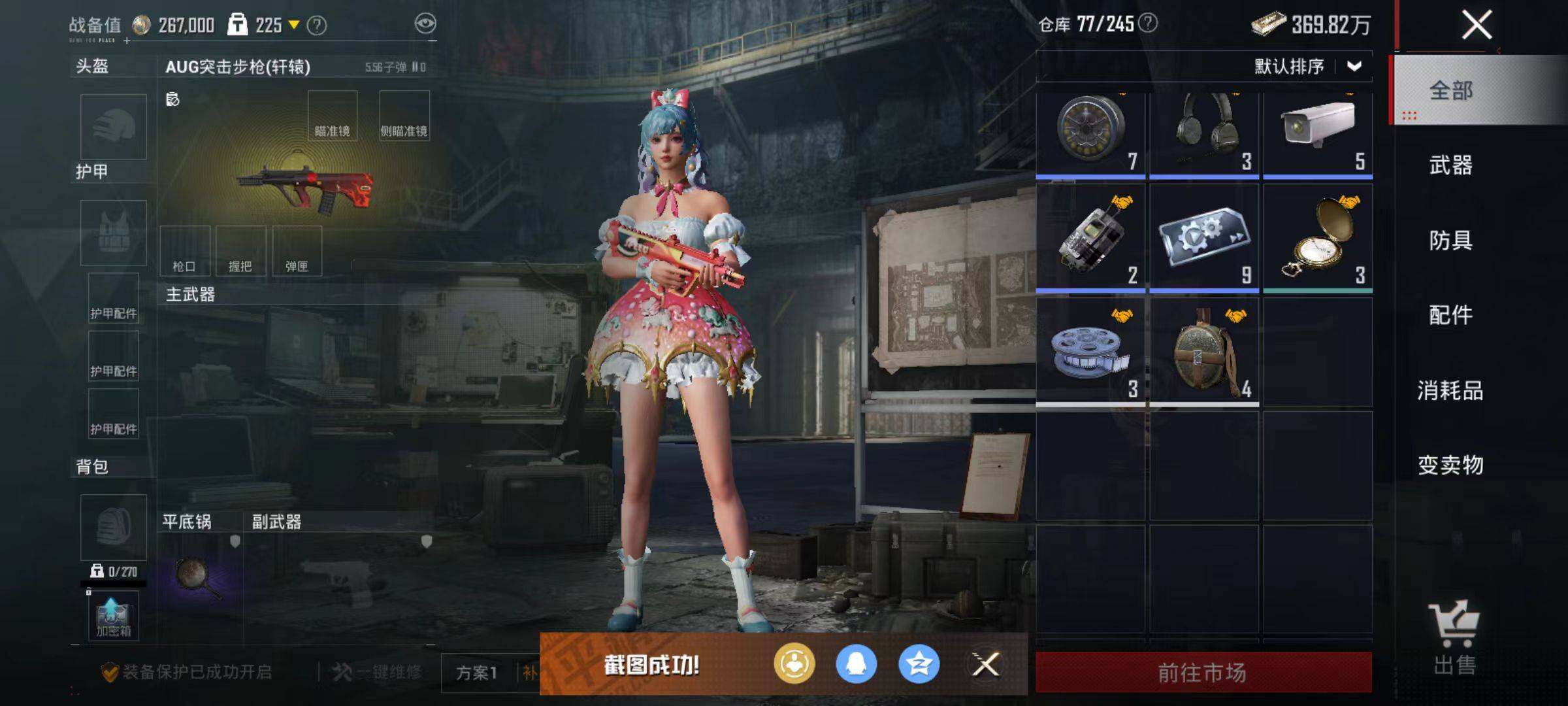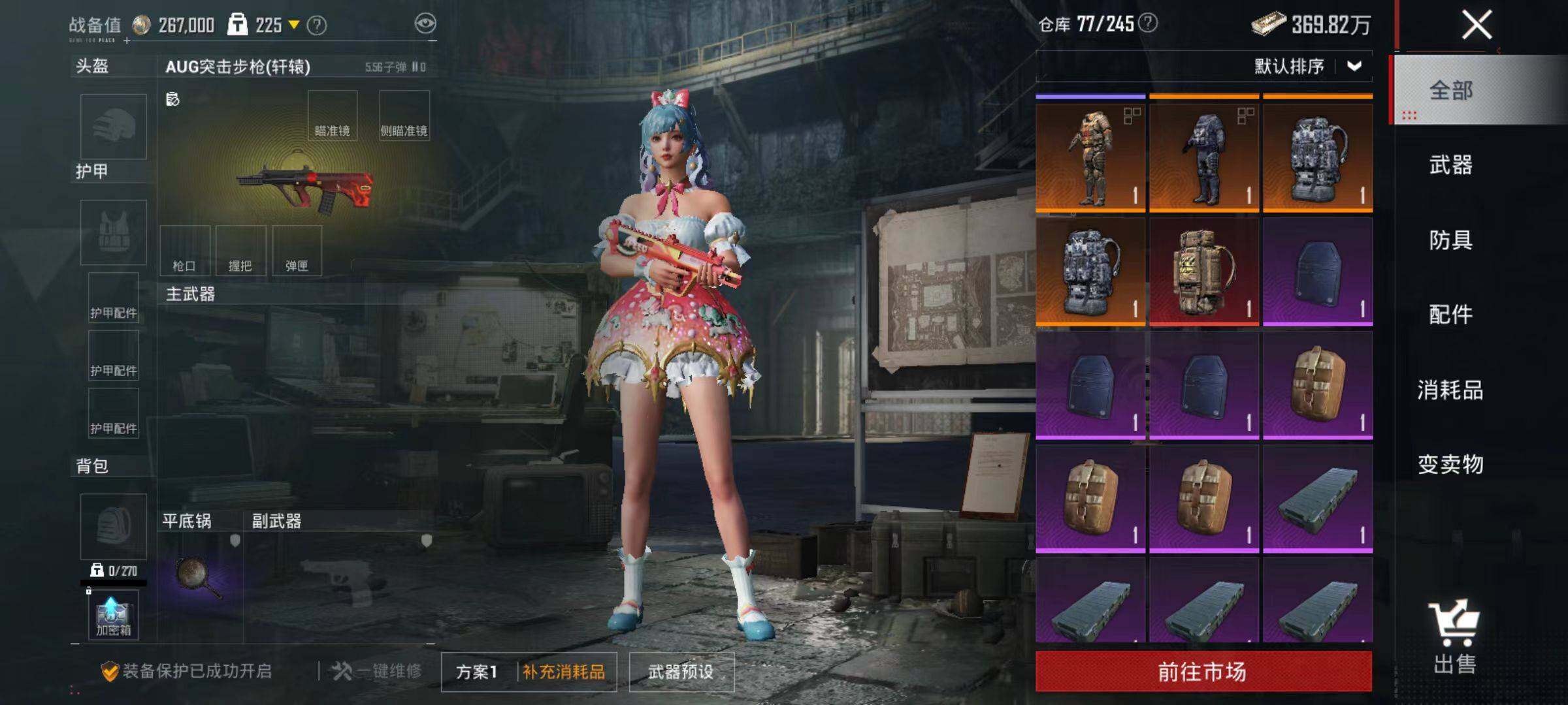 6240-2粉装-3特效呛-0载具-0粉色飞行器-29201热力值-1王牌印记-84套装-107呛皮 【热门品类】:套装-浪漫天命 【粉色套装】:粉装-暗夜玫瑰,粉装-旋转彩虹 【粉色呛皮等级】:akm-绿萝繁花五级,kar98k-巳巳如意二级,dp-28-豹影疾电四级 【粉色呛皮】:akm-绿萝繁花,kar98k-巳巳如意,dp-28-豹影疾电 【粉色降落伞】:极限特训降落伞