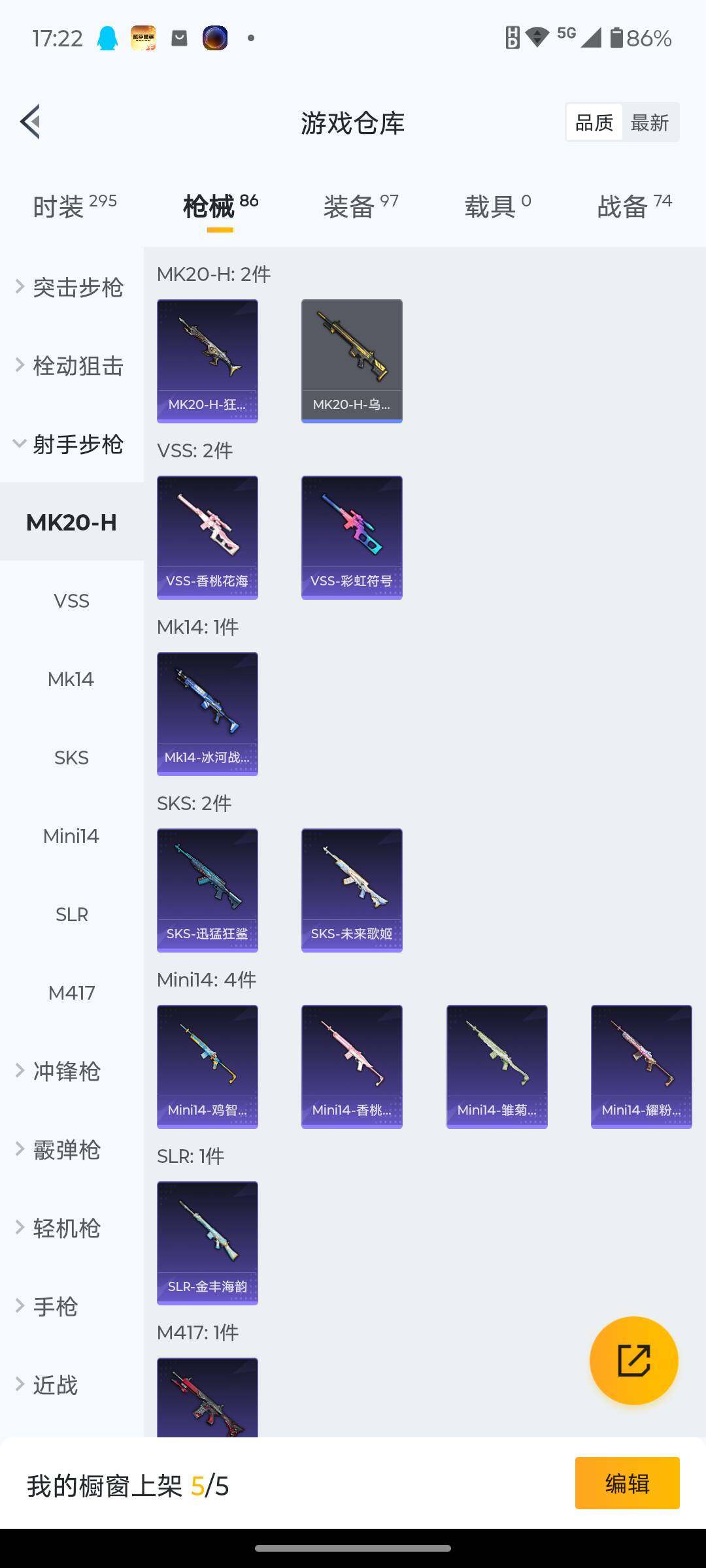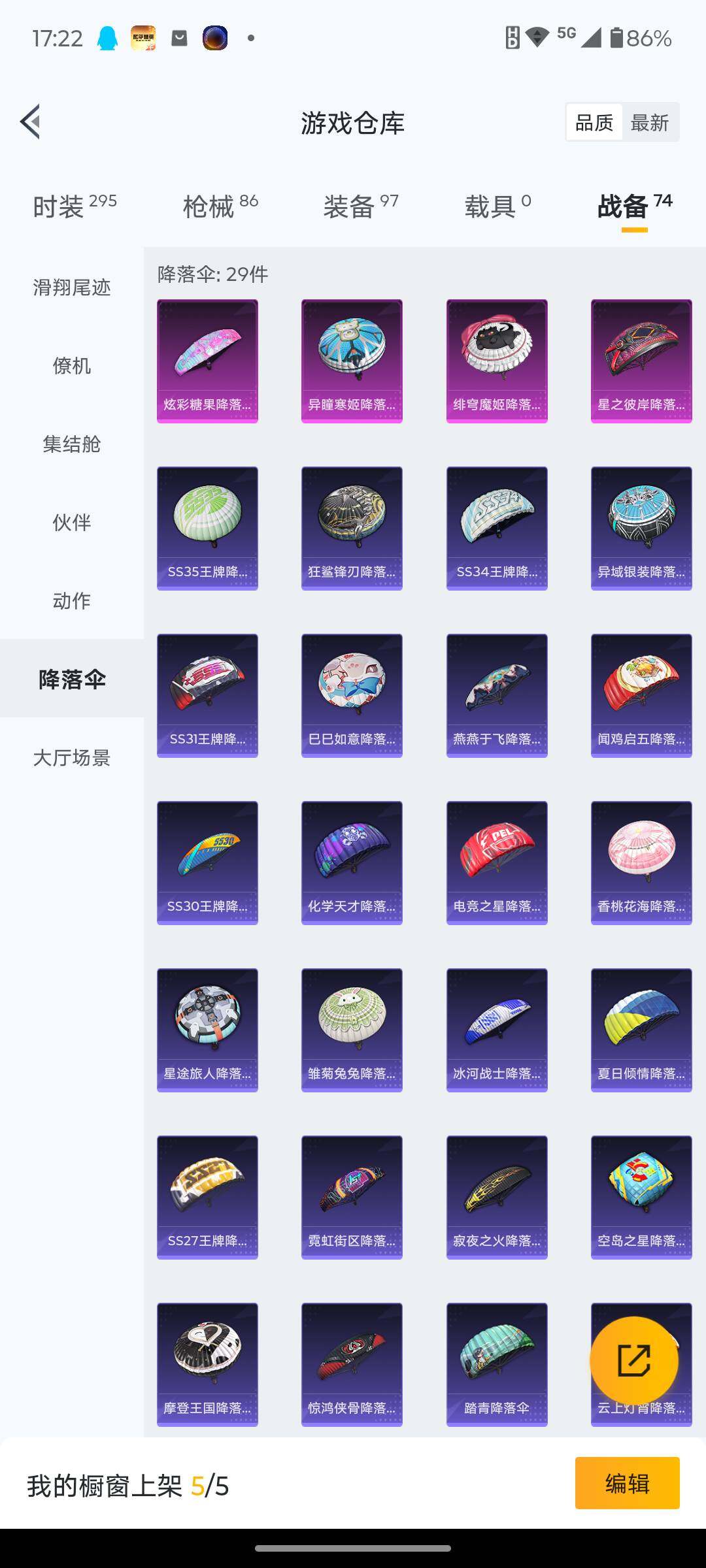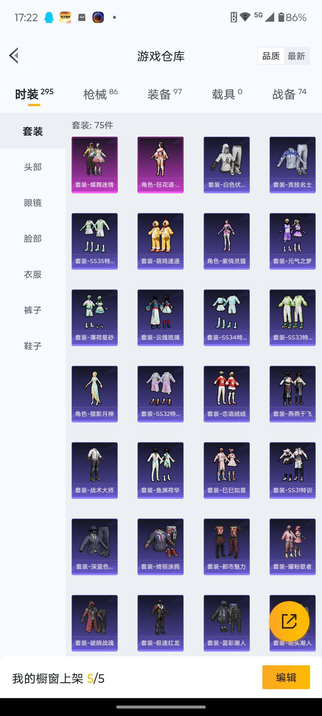 6125-2粉装-3特效呛-0载具-0粉色飞行器-25062热力值-8王牌印记-75套装-86呛皮 【热门品类】:套装-龟仙人 【粉色套装】:粉装-蝶舞迷情,角色-狂花道·不知火舞 【粉色呛皮等级】:kar98k-巳巳如意五级,dp-28-千金淑猫五级,dp-28-豹影疾电五级 【粉色呛皮】:kar98k-巳巳如意,dp-28-千金淑猫,dp-28-豹影疾电 【粉色降落伞】:星