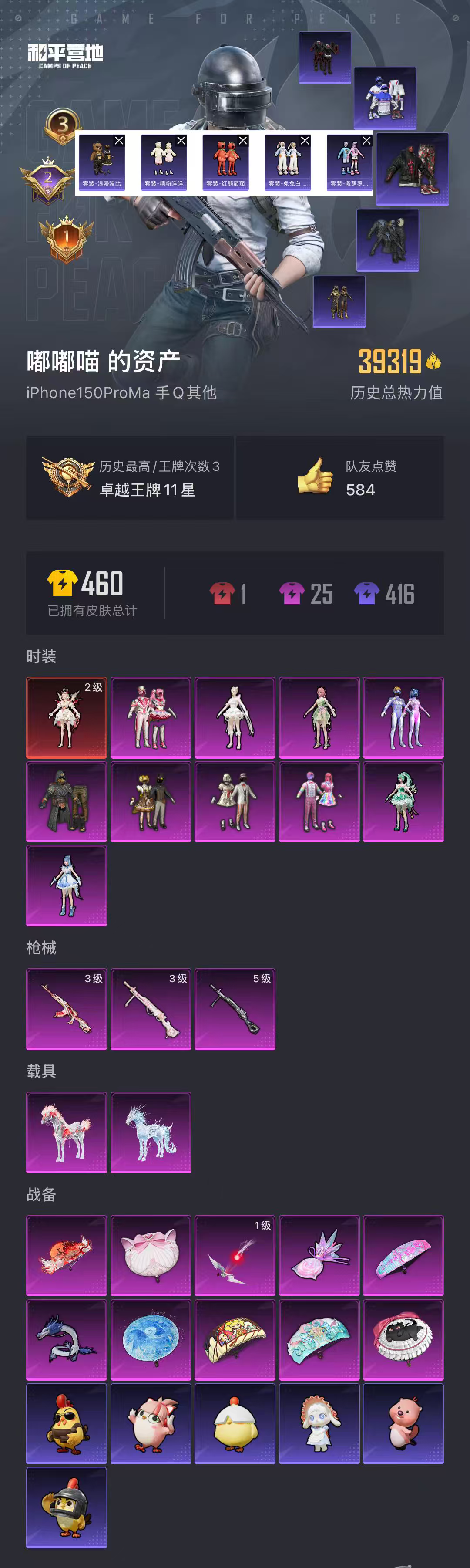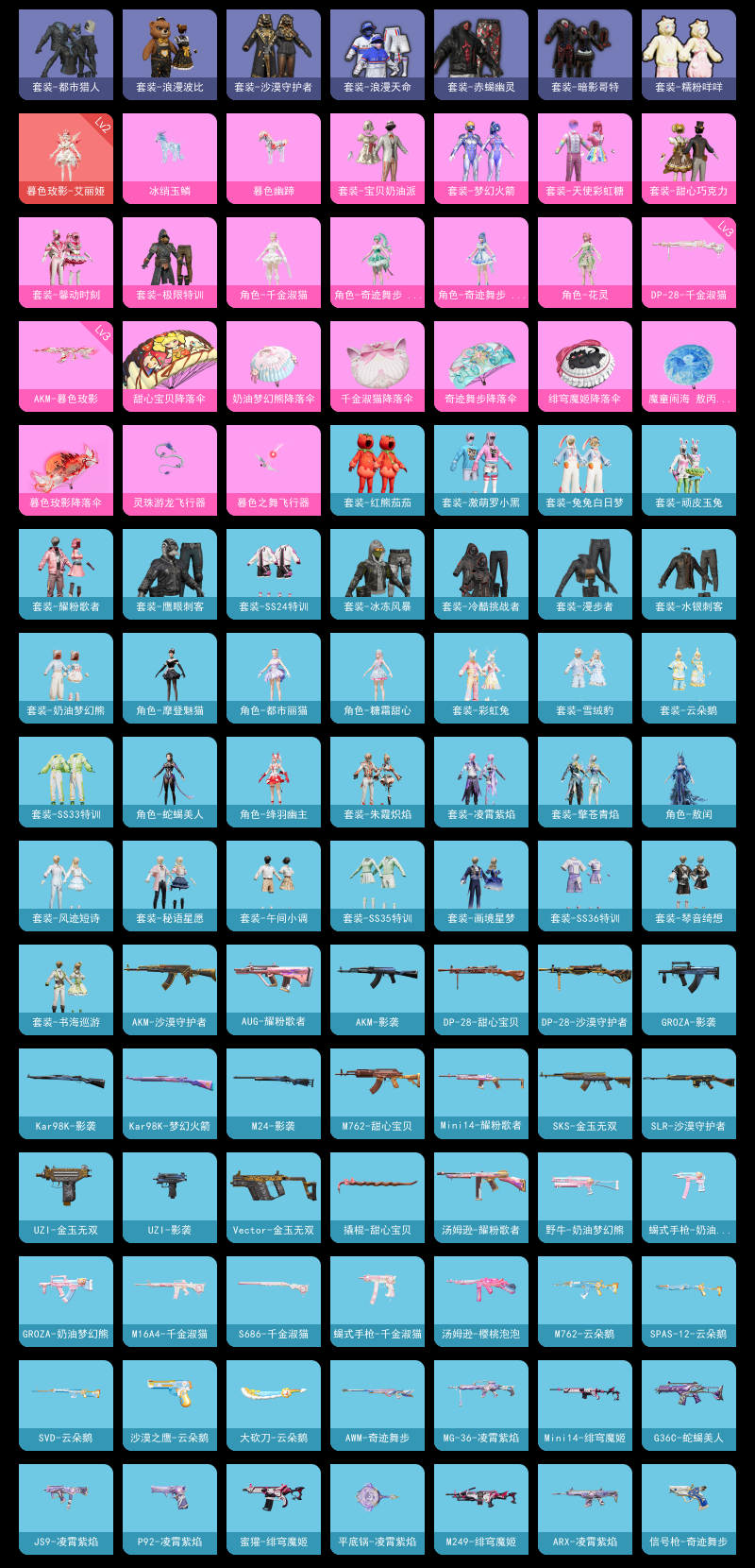 【和平精英】【lyhp21040】10粉装,3特效呛,2载具,历史最高段位:卓越王牌11星 王牌印记3次 热力值:39319,92套装,121呛械,156装备,77战备;套装:暮色玫影-艾丽娅,套装-极限特训,套装-甜心巧克力,套装-宝贝奶油派,套装-天使彩虹糖,套装-梦幻火箭,套装-馨动时刻,角色-千金淑猫,角色-花灵,角色-奇迹舞步 美琪,角色-奇迹舞步 贝贝,套装-特训学院,套装-青年教官,套装-白色伏地魔,套装-黑色伏地魔,套装-竞技名士,套装-长空猛禽,套装-漫步者,套装-赤蝎幽灵,套装-冷焰舞者,套装-都市猎人,套装-水银刺客,套装-浪漫天命,套装-战地督导,套装-鹰眼刺客,套装-冰冻风暴,套装-冷酷挑战者,套装-蓝彩潮人,套装-魅力单车,套装-雪山精英,套装-幻世战舞者,套装-暗影哥特,套装-缤纷果语,套装-元素星魂,套装-沙漠守护者,套装-破蛋小黄鸡,套装-浪漫波比,套装-激萌罗小黑,套装-顽皮玉兔,套装-白糯汤圆,套装-纯白舞曲,套装-耀粉歌者,套装-兔兔白日梦,套装-红熊茄茄,套装-绯格组合,套装-糯粉咩咩,套装-王牌教练,套装-青玉碎影,套装-ss24特训,套装-龟仙人,套装-涂山之恋,套装-漫游都市,套装-云魄琉璃,玩偶服-卖崽青蛙,套装-奶油梦幻熊,角色-无面战甲,套装-异域银装,角色-摩登魅猫,角色-都市丽猫,角色-糖霜甜心,角色-绛羽幽主,套装-蓝调潮影,套装-纯白跃动,套装-ss33特训,套装-云朵鹅,套装-彩虹兔,套装-青翼流星,套装-雪绒豹,套装-狂鲨锋刃,角色-蛇蝎美人,套装-炫彩糖果,套装-绯夜呢喃,套装-元气之梦,套装-ss34特训,套装-擎苍青焰,套装-朱霞炽焰,套装-游乐,套装-凌霄紫焰,角色-敖闰,套装-薄荷星砂,套装-ss35特训,套装-午间小调,套装-秘语星愿,套装-风迹短诗,套装-琴音绮想,套装-粉黛兰香,套装-画境星梦,套装-书海巡游,套装-ss36特训,套装-摩卡猫猫,套装-雪国风尚,套装-萌鸡速递;呛皮:3级akm-暮色玫影,akm-影袭,akm-沙漠守护者,akm-涂鸦街区,akm-霓彩脉冲,akm-绿洲时空,蜜獾-绯穹魔姬,蜜獾-风迹短诗,蜜獾-冰澜龙吟,groza-影袭,groza-奶油梦幻熊,groza-无面战甲,groza-暮色玫影,scar-l-夜灯,scar-l-炫彩节奏,scar-l-彩虹符号,scar-l-海盐豹豹,aug-耀粉歌者,aug-天降萌叽,aug-异域银装,aug-冰晶雪宝,ace32-画境星梦,ace32-冰晶雪宝,famas-霓彩脉冲,famas-乌木金纹,m416-魔童闹海 敖闰,m16a4-千金淑猫,g36c-蛇蝎美人,m762-甜心宝贝,m762-彩虹符号,m762-云朵鹅,ac-val-乌木金纹,mk47-风迹短诗,arx-凌霄紫焰,m24-影袭,m24-天降萌叽,kar98k-红色方程式,kar98k-影袭,kar98k-梦幻火箭,svd-云朵鹅,svd-霓彩脉冲,win94-乌木金纹,莫辛纳甘-风迹短诗,awm-奇迹舞步,awm-暮色玫影,mk20-h-狂鲨锋刃,mk20-h-蛇蝎美人,mini14-耀粉歌者,mini14-涂山之恋,mini14-绯穹魔姬,mini14-鸡智如我,sks-金玉无双,mk14-薄荷星砂,mk14-紫晶流影,mk12-风迹短诗,mk12-乌木金纹,slr-沙漠守护者,slr-霓彩脉冲,m1加兰德-画境星梦,vss-彩虹符号,野牛-奶油梦幻熊,野牛-魔童闹海 敖闰,uzi-红色方程式,uzi-影袭,uzi-金玉无双,uzi-炫彩节奏,uzi-天降萌叽,uzi-啾咪啾咪,uzi-炫彩糖果,js9-凌霄紫焰,汤姆逊-耀粉歌者,汤姆逊-天降萌叽,汤姆逊-樱桃泡泡,p90-乌木金纹,ump45-夜灯,ump45-生命誓言,ump45-涂山之恋,aks-74u-乌木金纹,mp5k-画境星梦,vect-生命誓言,vect-金玉无双,s686-彩虹符号,s686-千金淑猫,s12k-夜灯,s12k-霓彩脉冲,dbs-风迹短诗,spas-12-狂鲨锋刃,spas-12-云朵鹅,aa12-g-画境星梦,mg3-幻世战舞者,m249-彩虹符号,m249-无面战甲,m249-绯穹魔姬,m249-冰晶雪宝,mg-36-凌霄紫焰,mg-36-薄荷星砂,3级dp-28-千金淑猫,5级dp-28-豹影疾电,dp-28-甜心宝贝,dp-28-沙漠守护者,pkm-啾咪啾咪,蝎式手呛-奶油梦幻熊,蝎式手呛-千金淑猫,p92-凌霄紫焰,p1911-无面战甲,信号呛-奇迹舞步,f57-魔童闹海 敖闰,沙墨之鹦-云朵鹅,撬棍-甜心宝贝,撬棍-暮色玫影,撬棍-冰晶雪宝,平底锅-凌霄紫焰,平底锅-画境星梦,大砍刀-云朵鹅,大砍刀-冰澜龙吟,燃烧瓶-福马献瑞,破片手留单-拽到爆炸,破片手留单-爆破雪人,十子怒-异域银装,盐雾蛋-冰澜龙吟,铝热弹-炫彩糖果;载具:冰绡玉鳞,暮色幽蹄;降落伞:炫彩糖果飞行器,灵珠游龙飞行器,暮色之舞飞行器,异域银装飞行器,狂鲨锋刃飞行器,甜茶絮语飞行器,鸡智如我飞行器,登顶巅峰飞行器; 详情看图1红装10粉装3特效呛2载具【2级艾丽娅】千金梳毛 梦幻火箭 三巧克力 极限特训 赤蝎幽灵 都市猎人 沙漠守护者 暗影哥特 红熊茄茄 糯粉咩咩 天命 暮色ak 冰绡玉麟