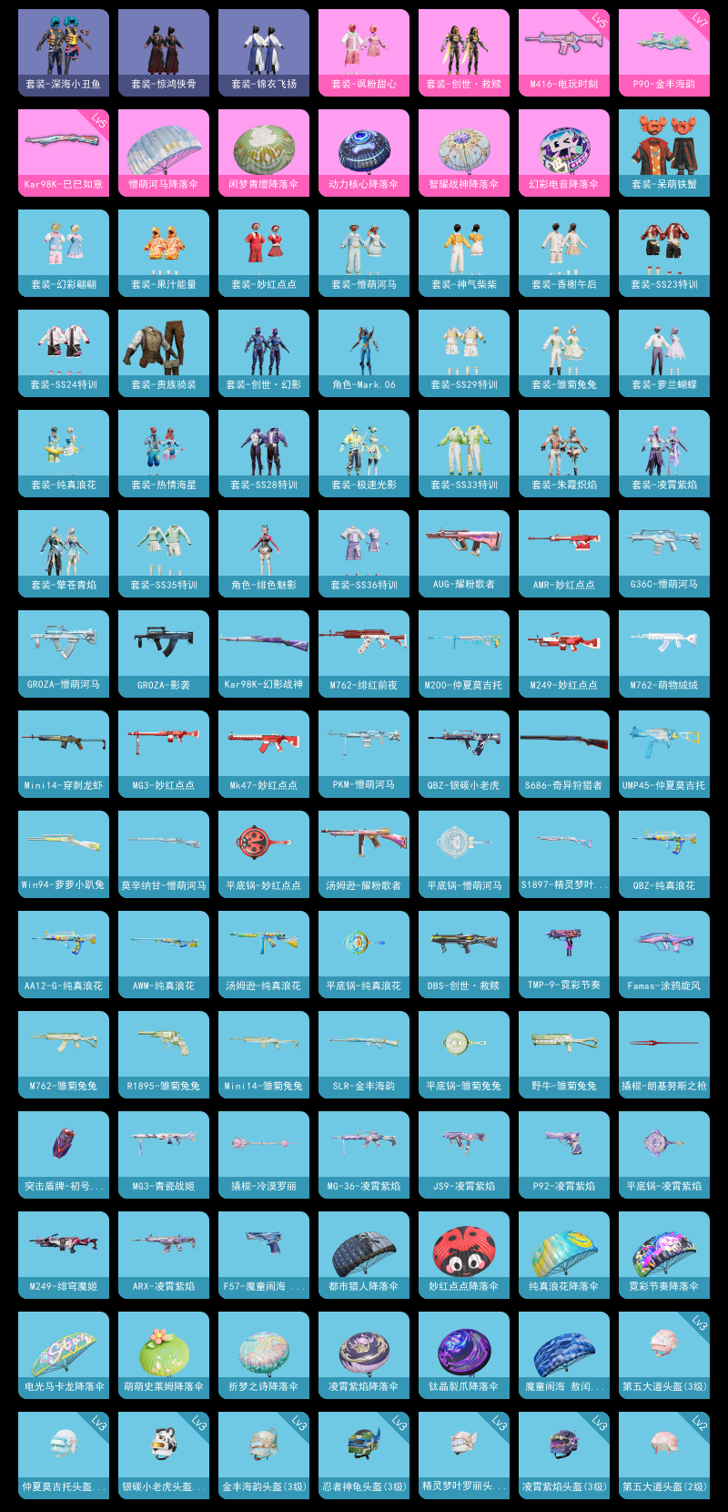 【和平精英】【lyhp21011】2粉装,4特效呛,0载具,历史最高段位:超级王牌5星 王牌印记2次 热力值:30480,70套装,109呛械,128装备,57战备;套装:套装-飒粉甜心,套装-创世·救赎,套装-红色运动,套装-蓝色运动,套装-白色伏地魔,套装-黑色伏地魔,套装-竞技名士,套装-猛禽,套装-长空猛禽,套装-海岛探路者,套装-冷焰舞者,套装-贵族骑装,套装-战地督导,套装-甜蜜告白,套装-完美偶像,套装-幻影武者,套装-热血骑手,套装-魅力单车,套装-森林游猎者,套装-荣耀,套装-幻世战舞者,套装-呆萌铁蟹,套装-深海小丑鱼,套装-龙魂突击队,套装-冰川特警,套装-麻辣教官,套装-破蛋小黄鸡,套装-鹤鸣,套装-战术大师,套装-热情海星,套装-纯真浪花,套装-虎虎生威吉莉,套装-绯格组合,套装-ss23特训,套装-香榭午后,套装-神气柴柴,套装-懵萌河马,套装-妙红点点,套装-幻彩翩翩,套装-ss24特训,套装-龟仙人,套装-惊鸿侠骨,套装-锦衣飞扬,套装-果汁能量,套装-龙的传人,套装-冰河战士,套装-老实芭蕉,套装-ss28特训,角色-mark.06,套装-海盐绵绵冰,套装-创世·幻影,套装-ss29特训,套装-雏菊兔兔,套装-萝兰蝴蝶,角色-绯色魅影,套装-异域银装,套装-ss31特训,角色-风玲,套装-ss33特训,套装-极速光影,套装-元气之梦,套装-ss34特训,套装-擎苍青焰,套装-朱霞炽焰,套装-凌霄紫焰,套装-ss35特训,套装-阳光菠萝,套装-ss36特训,套装-雪国风尚,套装-萌鸡速递;呛皮:scar-l-红色方程式,scar-l-夜灯,scar-l-炫彩节奏,scar-l-海盐豹豹,akm-破晓战魂,akm-涂鸦街区,akm-彩虹符号,akm-龙的传人,akm-霓彩脉冲,famas-涂鸦旋风,famas-乌木金纹,groza-影袭,groza-懵萌河马,groza-海盐豹豹,ace32-冰晶雪宝,5级m416-电玩时刻,m416-红色方程式,m416-糯团青竹,q-银碳小老虎,q-纯真浪花,aug-耀粉歌者,aug-天降萌叽,aug-异域银装,蜜獾-乌木金纹,m762-绯红前夜,m762-萌物绒绒,m762-雏菊兔兔,mk47-乌木金纹,mk47-妙红点点,ac-val-乌木金纹,ac-val-天降萌叽,g36c-懵萌河马,m16a4-冰河战士,arx-凌霄紫焰,5级kar98k-巳巳如意,kar98k-幻影战神,m200-仲夏莫吉托,m200-惊鸿侠骨,m200-乌木金纹,莫辛纳甘-乌木金纹,莫辛纳甘-懵萌河马,amr-妙红点点,win94-萝萝小趴兔,win94-乌木金纹,awm-纯真浪花,mini14-穿刺龙虾,mini14-雏菊兔兔,slr-金丰海韵,mk14-冰河战士,mk14-薄荷星砂,mk20-h-乌木金纹,m417-惊鸿侠骨,sks-炫彩节奏,mk12-乌木金纹,汤姆逊-耀粉歌者,汤姆逊-炫彩节奏,汤姆逊-天降萌叽,汤姆逊-纯真浪花,野牛-雏菊兔兔,7级p90-金丰海韵,p90-玩趣呆呆,p90-巳巳如意,p90-乌木金纹,uzi-红色方程式,uzi-冰河战士,vect-生命誓言,vect-彩虹符号,ump45-生命誓言,ump45-仲夏莫吉托,ump45-涂山之恋,ump45-绒宝小鹅,aks-74u-乌木金纹,js9-凌霄紫焰,mp5k-乌木金纹,spas-12-狂鲨锋刃,dbs-彩虹符号,dbs-创世·救赎,dbs-乌木金纹,s12k-玩趣呆呆,s12k-霓彩脉冲,s686-奇异狩猎者,s686-生命誓言,aa12-g-纯真浪花,s1897-精灵梦叶罗丽,5级dp-28-豹影疾电,m249-妙红点点,m249-绯穹魔姬,mg3-妙红点点,mg3-惊鸿侠骨,mg3-青瓷战姬,mg-36-凌霄紫焰,mg-36-薄荷星砂,pkm-懵萌河马,tmp-9-霓彩节奏,r1895-雏菊兔兔,p92-凌霄紫焰,f57-魔童闹海 敖闰,平底锅-妙红点点,平底锅-懵萌河马,平底锅-惊鸿侠骨,平底锅-纯真浪花,平底锅-雏菊兔兔,平底锅-凌霄紫焰,撬棍-朗基努斯之呛,撬棍-冷漠罗丽,破片手留单-拽到爆炸,十子怒-异域银装,爆炸猎弓-惊鸿侠骨,突击盾牌-初号机 觉醒ver.;降落伞:异域银装飞行器; 详情看图3w热力值精品小号 2粉装4特效呛 创世救赎 小丑鱼 蓝螳螂 满级金丰p90