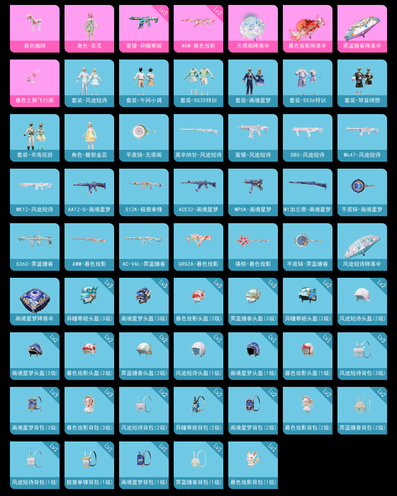 【和平精英】【lyhp21166】1粉装,2特效呛,1载具,历史最高段位:卓越王牌11星 王牌印记2次 热力值:10105,26套装,31呛械,44装备,19战备;套装:角色-花灵,套装-特训学院,套装-猎鹰,套装-青年教官,套装-红色运动,套装-黄色运动,套装-蓝色运动,套装-黑色伏地魔,套装-霸义无双,套装-幻影武者,套装-热血骑手,套装-魅力单车,套装-破蛋小黄鸡,套装-绯格组合,套装-街头风暴,角色-馥郁金蕊,套装-青翼流星,套装-ss35特训,套装-午间小调,套装-风迹短诗,套装-琴音绮想,套装-画境星梦,套装-书海巡游,套装-ss36特训,角色-霜刃之御,套装-雪国风尚;呛皮:mk47-风迹短诗,ace32-画境星梦,ace32-冰晶雪宝,3级蜜獾-异瞳寒姬,蜜獾-风迹短诗,g36c-霁蓝缠春,3级akm-暮色玫影,groza-暮色玫影,aug-冰晶雪宝,ac-val-霁蓝缠春,win94-乌木金纹,awm-暮色玫影,m24-天降萌叽,莫辛纳甘-风迹短诗,mk12-风迹短诗,mk12-乌木金纹,m1加兰德-画境星梦,mp5k-画境星梦,spas-12-罪夜之冕,s12k-极意拳锋,dbs-风迹短诗,aa12-g-画境星梦,m249-冰晶雪宝,mg3-幻世战舞者,mg-36-薄荷星砂,平底锅-霁蓝缠春,平底锅-无垠阁,平底锅-画境星梦,撬棍-暮色玫影,撬棍-冰晶雪宝,破片手留单-爆破雪人;载具:暮色幽蹄;降落伞:暮色之舞飞行器,登顶巅峰飞行器; 详情看图1粉装2特效呛1载具 花灵 3级akm暮色玫影 暮色幽蹄