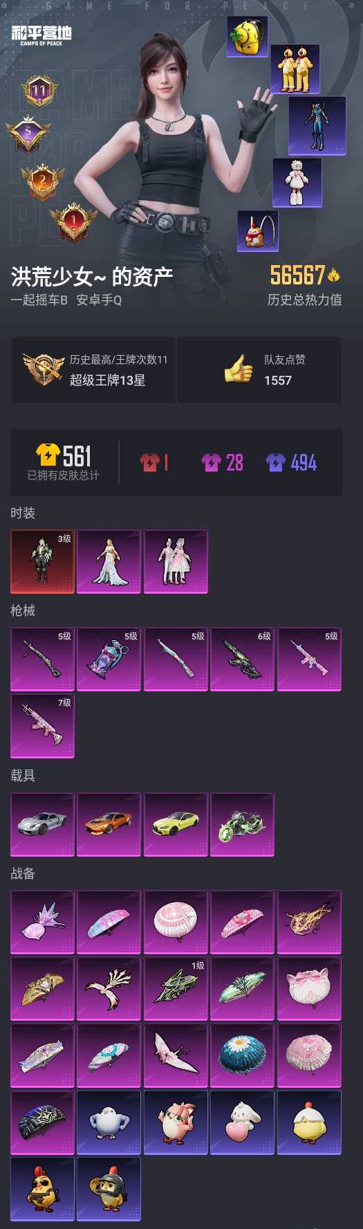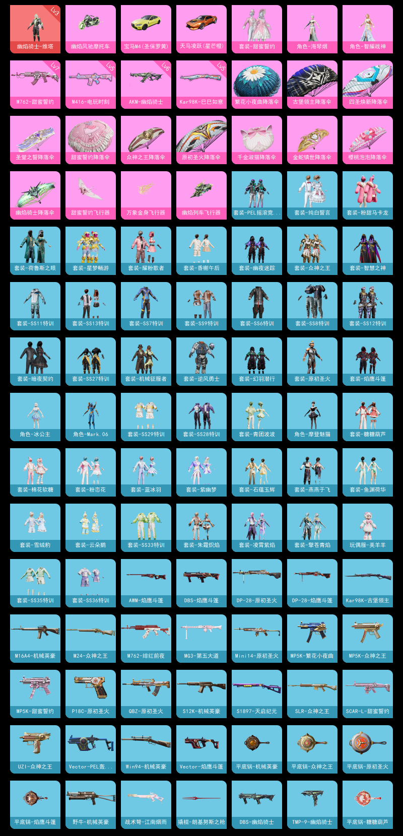 【和平精英】【lyhp21319】2粉装,6特效呛,4载具,历史最高段位:超级王牌13星 王牌印记11次 热力值:56567,92套装,143呛械,206装备,98战备;套装:幽焰骑士-维塔,套装-甜蜜誓约,角色-智耀战神,套装-猎鹰,套装-竞技名士,套装-长空猛禽,套装-黎明保卫者,套装-冷焰舞者,套装-特战装甲,套装-幻影武者,套装-神秘领域,套装-魅力单车,套装-破晓战魂,套装-甜蜜熊情侣,套装-缤纷果语,套装-龙魂突击队,套装-破蛋小黄鸡,套装-机械征服者,套装-北国孤狼,套装-ss6特训,套装-ss7特训,套装-霓虹街区,套装-暗夜契约,套装-纯白誓言,套装-ss8特训,套装-众神之王,套装-智慧之神,套装-白熊同盟,套装-pel摇滚竞梦者,套装-ss9特训,套装-荷鲁斯之眼,套装-粉甜马卡龙,套装-牛气满满,套装-ss11特训,套装-原初圣火,套装-逆风勇士,套装-战术大师,套装-ss12特训,套装-牛气冲天,套装-耀粉歌者,套装-ss13特训,套装-星梦畅游,套装-香榭午后,套装-青玉碎影,套装-龟仙人,套装-香桃花海,套装-冰河战士,套装-焰鹰斗篷,套装-幽夜迷踪,套装-幻羽潜行,套装-ss27特训,套装-恋语绒绒,套装-老实芭蕉,套装-ss28特训,角色-冰公主,角色-mark.06,套装-街头风暴,套装-海盐绵绵冰,套装-ss29特训,套装-异域银装,角色-摩登魅猫,套装-星途旅人,套装-ss30特训,套装-青团波波,套装-棉花软糖,套装-糖糖葫芦,套装-ss31特训,套装-鱼渊荷华,套装-石蕴玉辉,套装-燕燕于飞,套装-智谋强哥,角色-海琴烟,套装-紫幽梦,套装-粉恋花,套装-ss33特训,套装-云朵鹅,套装-巳巳如意,套装-ss32特训,套装-蓝冰羽,套装-顶瓜瓜,套装-雪绒豹,套装-炫彩糖果,玩偶服-美羊羊,套装-元气之梦,套装-ss34特训,套装-擎苍青焰,套装-朱霞炽焰,套装-凌霄紫焰,套装-薄荷星砂,套装-ss35特训,套装-ss36特训,套装-萌鸡速递;呛皮:scar-l-甜蜜誓约,scar-l-彩虹符号,scar-l-星途旅人,scar-l-海盐豹豹,7级m762-甜蜜誓约,m762-绯红前夜,m762-牛气冲天,m762-彩虹符号,m762-云朵鹅,m762-乌木金纹,蜜獾-天降萌叽,蜜獾-糖糖葫芦,蜜獾-乌木金纹,groza-海盐豹豹,groza-乌木金纹,6级akm-幽焰骑士,akm-荧星灵猫,akm-霓彩脉冲,akm-乌木金纹,famas-霓彩脉冲,famas-乌木金纹,aug-天降萌叽,aug-异域银装,aug-金蛇镇世,q-原初圣火,q-彩虹符号,q-乌木金纹,arx-凌霄紫焰,5级m416-电玩时刻,m416-红色方程式,m16a4-机械英豪,m16a4-冰河战士,awm-焰鹰斗篷,awm-乌木金纹,5级kar98k-巳巳如意,kar98k-古堡领主,kar98k-顶峰精英,kar98k-星穹咏叹调,m200-乌木金纹,m24-众神之王,m24-乌木金纹,win94-机械英豪,win94-乌木金纹,svd-云朵鹅,amr-喜羊羊与灰太狼,amr-乌木金纹,m417-玩趣呆呆,mk14-冰河战士,mk14-紫幽梦,mk12-乌木金纹,mini14-原初圣火,mini14-香桃花海,mk20-h-星途旅人,mk20-h-糖糖葫芦,mk20-h-狂鲨锋刃,mk20-h-乌木金纹,vss-彩虹符号,vss-香桃花海,vss-乌木金纹,slr-众神之王,slr-霓彩脉冲,sks-心之恋语,aks-74u-粉粉喵呜,aks-74u-鸡智如我,aks-74u-乌木金纹,ump45-生命誓言,ump45-糖糖葫芦,uzi-众神之王,uzi-天降萌叽,uzi-冰河战士,uzi-炫彩糖果,p90-玩趣呆呆,p90-巳巳如意,vect-生命誓言,vect-pel轰鸣竞梦者,vect-焰鹰斗篷,vect-燕燕于飞,汤姆逊-幽焰骑士,汤姆逊-乌木金纹,mp5k-甜蜜誓约,mp5k-众神之王,mp5k-繁花小夜曲,mp5k-乌木金纹,js9-凌霄紫焰,野牛-机械英豪,野牛-燕燕于飞,spas-12-燕燕于飞,spas-12-狂鲨锋刃,spas-12-云朵鹅,spas-12-乌木金纹,s12k-机械英豪,s12k-玩趣呆呆,s12k-霓彩脉冲,s12k-乌木金纹,s686-生命誓言,s686-彩虹符号,s686-巳巳如意,dbs-焰鹰斗篷,dbs-幽焰骑士,dbs-乌木金纹,s1897-天启纪元,s1897-紫幽梦,s1897-糯团青竹,pkm-啾咪啾咪,pkm-紫幽梦,5级dp-28-豹影疾电,dp-28-原初圣火,dp-28-焰鹰斗篷,mg-36-凌霄紫焰,mg-36-薄荷星砂,m249-糯团青竹,m249-冰晶雪宝,mg3-第五大道,tmp-9-幽焰骑士,p92-紫幽梦,p92-凌霄紫焰,p18c-原初圣火,p18c-糖糖葫芦,蝎式手呛-燕燕于飞,电击呛-喜羊羊与灰太狼,沙墨之鹦-云朵鹅,大砍刀-鬼刀,大砍刀-云朵鹅,平底锅-众神之王,平底锅-机械英豪,平底锅-原初圣火,平底锅-空岛之星,平底锅-焰鹰斗篷,平底锅-糖糖葫芦,平底锅-紫幽梦,平底锅-属我最6,平底锅-凌霄紫焰,撬棍-朗基努斯之呛,破片手留单-星途旅人,破片手留单-拽到爆炸,破片手留单-巳巳如意,十子怒-燕燕于飞,十子怒-异域银装,5级盐雾蛋-电雾迷城,盐雾蛋-冰氧夏日,铝热弹-炫彩糖果,战术弩-江南烟雨,爆炸猎弓-喜羊羊与灰太狼;载具:宝马m4圣保罗黄,天马凌跃星芒橙,保时捷918 sper液态银,幽焰风驰摩托车;降落伞:甜蜜誓约飞行器,凤舞九天飞行器,万象金身飞行器,炫彩糖果飞行器,幽焰列车飞行器,空岛之星尾迹,异域银装飞行器,顶峰精英尾迹,破刃行动尾迹,鸡智如我飞行器; 详情看图1红2粉6特效呛4载 3级维塔 甜蜜誓言 满级m762甜蜜誓言 6级akm幽焰骑士 四车型 宝马m4 911保时捷 炽焰先锋 幽焰摩托