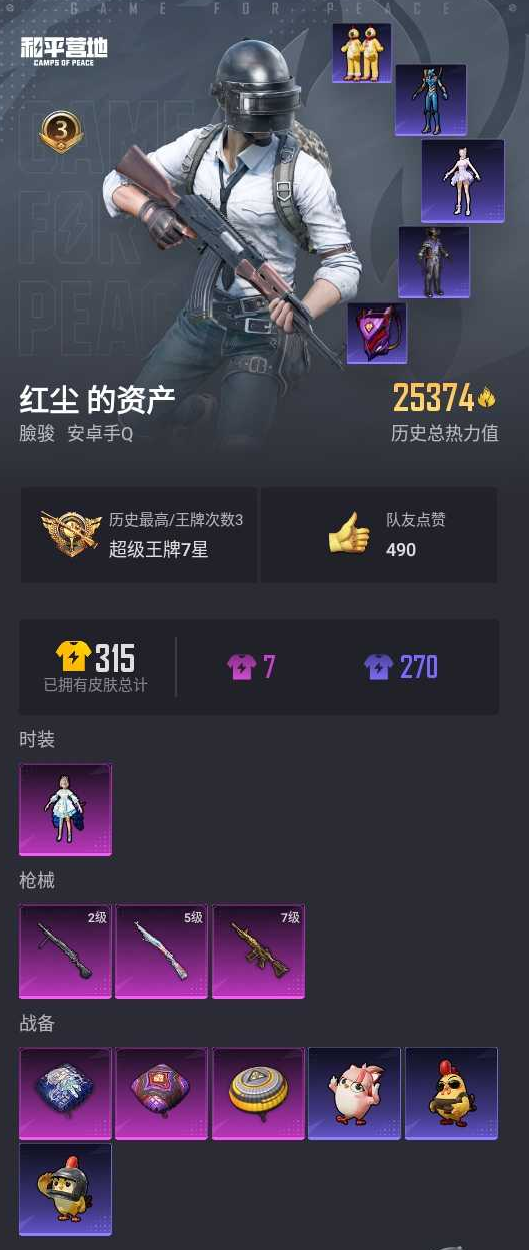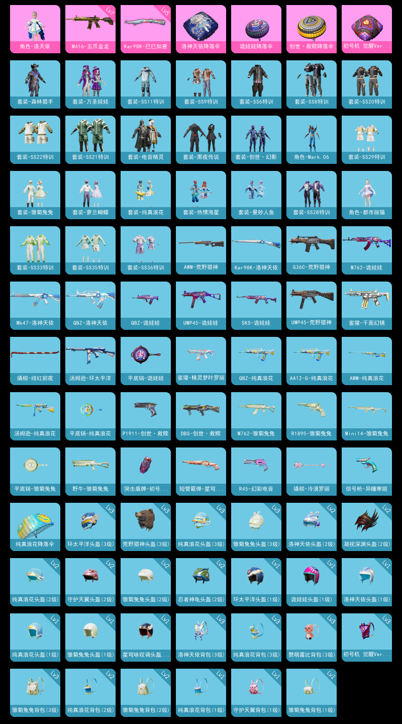 【和平精英】【lyhp21310】1粉装,3特效呛,0载具,历史最高段位:超级王牌7星 王牌印记3次 热力值:25375,69套装,84呛械,97装备,45战备;套装:角色-洛天依,套装-红色运动,套装-白色伏地魔,套装-竞技名士,套装-酒红色名流,套装-猛禽,套装-长空猛禽,套装-竞技勇士朋克,套装-海岛探路者,套装-战地菁英,套装-青春校园,套装-灰色格斗者,套装-甜蜜告白,套装-燃烧卡路里,套装-滨海假日,套装-海滨突袭者,套装-魅力单车,套装-绮丽涂鸦,套装-雪山征服者,套装-坚韧舞者,套装-竞技达人朋克,套装-雪山精英,套装-龙魂突击队,套装-ss4特训,套装-梦魇先生,套装-万圣娃娃,套装-黑夜传说,套装-疯狂小兔子,套装-森林猎手,套装-ss5特训,套装-圣诞大吉,套装-熔岩使者,套装-凛冬战士,套装-爱崽白熊,套装-北国孤狼,套装-ss6特训,套装-ss8特训,套装-ss9特训,套装-白糯汤圆,套装-ss11特训,套装-战术大师,套装-曼妙人鱼,套装-热情海星,套装-纯真浪花,套装-电音精灵,套装-ss20特训,套装-ss21特训,套装-ss22特训,套装-冰河战士,套装-ss28特训,角色-mark.06,套装-街头风暴,套装-海盐绵绵冰,套装-蝶变,套装-创世·幻影,套装-ss29特训,套装-雏菊兔兔,套装-萝兰蝴蝶,角色-都市丽猫,套装-星途旅人,套装-ss30特训,套装-ss31特训,套装-智谋强哥,套装-ss33特训,套装-顶瓜瓜,套装-ss34特训,套装-ss35特训,套装-ss36特训,套装-萌鸡速递;呛皮:m762-诡娃娃,m762-天降萌叽,m762-雏菊兔兔,m762-乌木金纹,famas-霓彩脉冲,famas-乌木金纹,aug-乌木金纹,mk47-洛神天依,mk47-乌木金纹,q-诡娃娃,q-洛神天依,q-纯真浪花,7级m416-五爪金龙,m416-乌木金纹,蜜獾-千面幻镜,蜜獾-精灵梦叶罗丽,m16a4-冰河战士,m16a4-乌木金纹,scar-l-海盐豹豹,scar-l-乌木金纹,akm-乌木金纹,groza-海盐豹豹,groza-乌木金纹,g36c-荒野猎神,win94-乌木金纹,m200-乌木金纹,m24-冰封烈焰,awm-荒野猎神,awm-天降萌叽,awm-纯真浪花,5级kar98k-巳巳如意,kar98k-洛神天依,mini14-香桃花海,mini14-雏菊兔兔,mini14-乌木金纹,mk14-乌木金纹,mk14-冰河战士,mk14-薄荷星砂,sks-诡娃娃,sks-夜灯,sks-炫彩节奏,sks-乌木金纹,m417-玩趣呆呆,mk20-h-星途旅人,mk20-h-乌木金纹,汤姆逊-炫彩节奏,汤姆逊-环太平洋,汤姆逊-天降萌叽,汤姆逊-纯真浪花,ump45-夜灯,ump45-生命誓言,ump45-诡娃娃,ump45-荒野猎神,vect-生命誓言,vect-乌木金纹,p90-巳巳如意,uzi-冰河战士,野牛-雏菊兔兔,aks-74u-乌木金纹,s686-冰封烈焰,s686-乌木金纹,s12k-夜灯,dbs-创世·救赎,dbs-月影灵韵,dbs-乌木金纹,s1897-炫彩节奏,spas-12-乌木金纹,aa12-g-纯真浪花,2级dp-28-豹影疾电,mg3-幻世战舞者,r1895-雏菊兔兔,r45-幻彩电音,p1911-冰封烈焰,p1911-创世·救赎,短管霰弹-星穹咏叹调,信号呛-异瞳寒姬,平底锅-诡娃娃,平底锅-冰封烈焰,平底锅-纯真浪花,平底锅-雏菊兔兔,撬棍-绯红前夜,撬棍-冷漠罗丽,破片手留单-拽到爆炸,突击盾牌-初号机 觉醒ver.;降落伞:紫色滑翔尾迹,顶峰精英尾迹,鸡智如我飞行器; 详情看图1粉3特效呛 洛天依 满级m4金龙