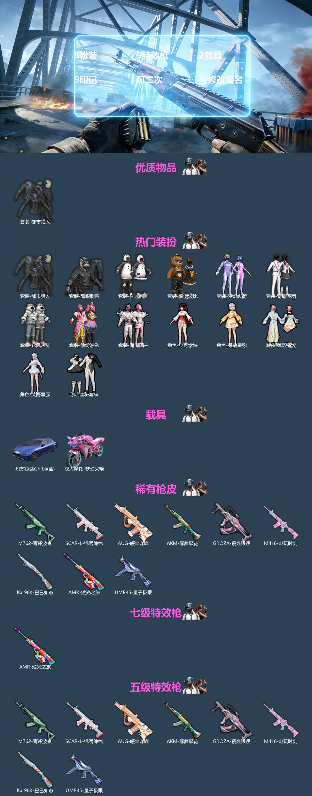 8粉装 9特效呛 2载具 9印记 可二次 可修改实名 【热门装扮】荧海星豚梦幻火箭新101 缤纷油彩猪妹猪脸妹海渊国主冰川幽秘呆萌星弥小可学妹莲影清波奇迹天团胖达圆圆仓鼠灰灰鹰眼刺客浪漫波比都市猎人 【载具】玛莎拉蒂ghibli蓝双人摩托-梦幻火箭 【稀有呛